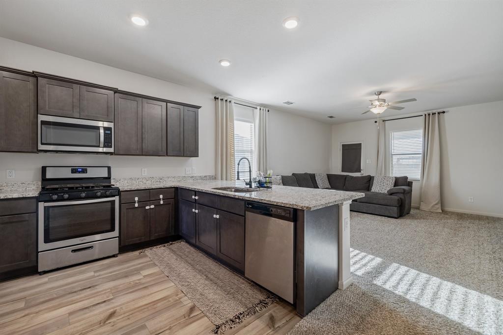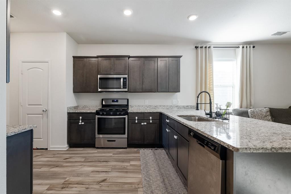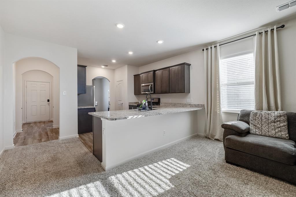 Step inside to an open floor plan designed for modern living, perfect for both everyday life and entertaining. The spacious living area flows seamlessly into the kitchen, which features granite countertops, ample cabinetry, and a functional layout for effortless meal prep.