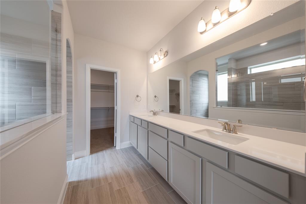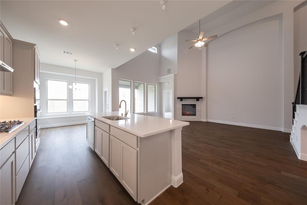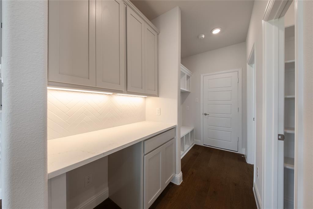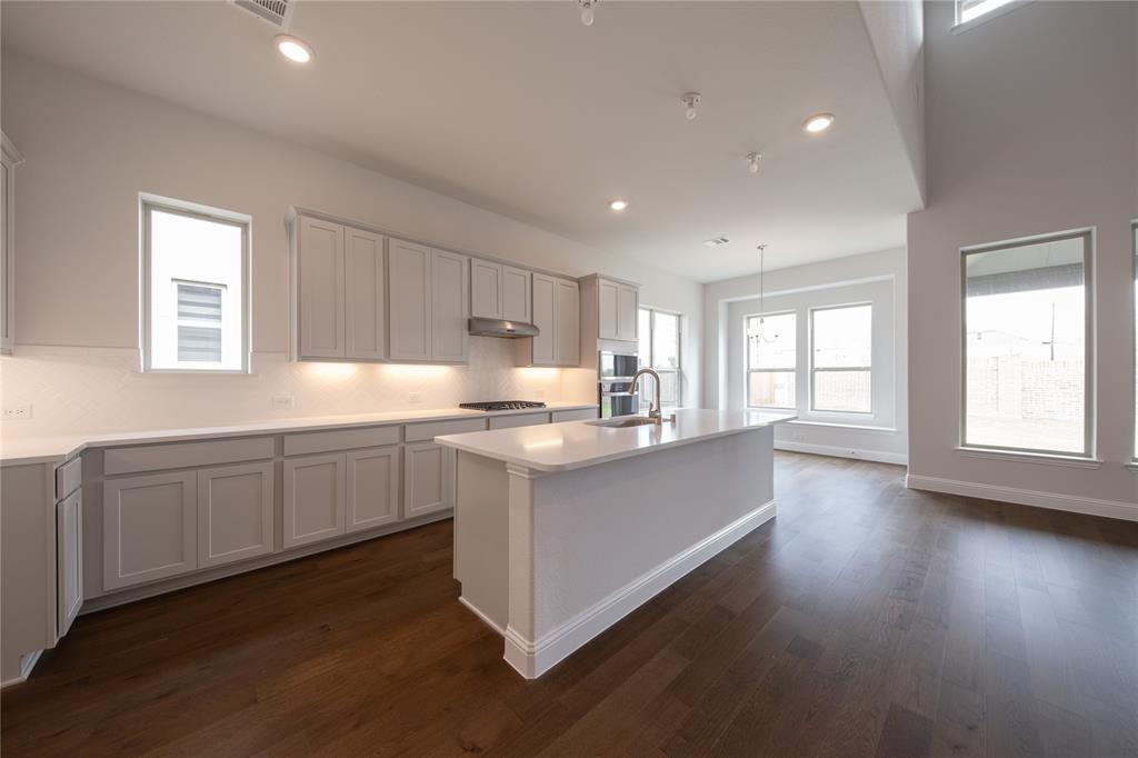 Designed with the latest trends in mind, this home showcases quartz countertops, rich hardwood flooring, and striking 42-inch gray cabinetry.