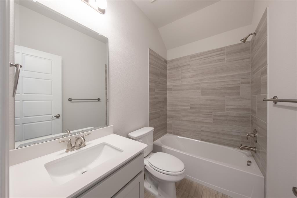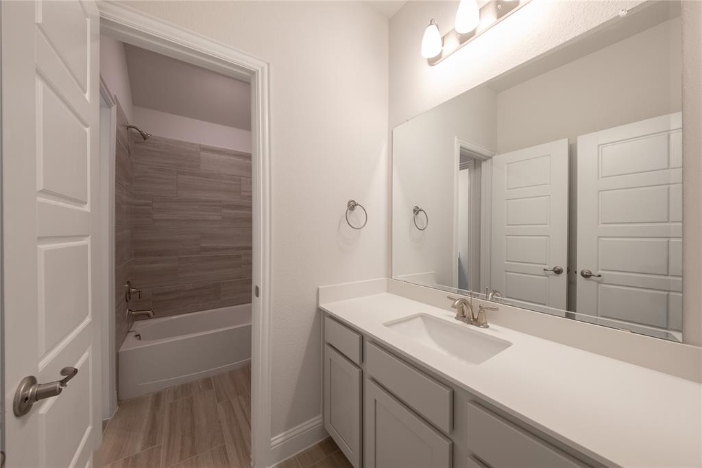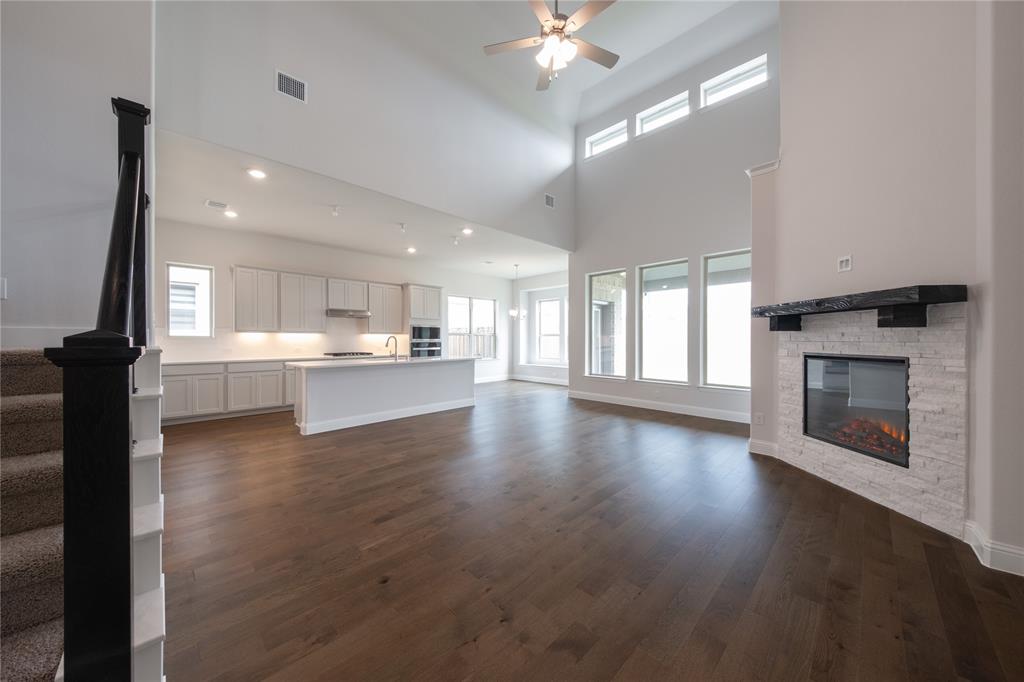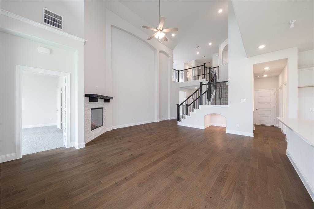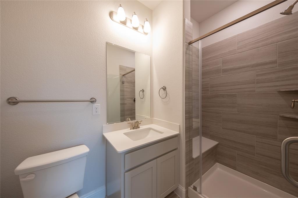 Designed with the latest trends in mind, this home showcases quartz countertops, rich hardwood flooring, and striking 42-inch gray cabinetry.