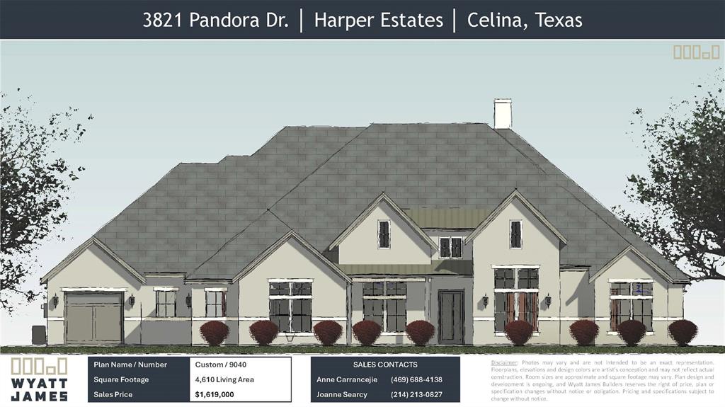 Beautiful Wyatt James Builder NEW CONSTRUCTION on acre lot in gated community! Estimated completion end of September 2025! Thoughtfully designed open concept plan. with spacious living area with Western Window System slider door providing expansive view to covered backyard and outdoor living area with fireplace. Chef inspired kitchen includes beautiful quartz countertops, large social island, custom built site finished cabinets, GE Monogram Appliance Collection including Gas cooktop. Plus separate Prep Kitchen, making entertaining effortless! All four bedrooms are en-suite, offering privacy for family and guests!. The large primary suite offers freestanding soaker tub, large full tile drop slab walk in shower, dual vanities, and a generous walk in closet. Also included in this plan are game room, media room and private office off the entry! Lovely high end luxury finishes throughout including beautiful nail down site finished white oak hardwood flooring in the living areas, primary bedroom, halls and study plus quartz in all baths! Quality construction includes Anderson Windows, 8 foot solid core doors throughout, hardware, plumbing and lighting in modern black matte finish,Class 4 Impact Tilcor Metal Shingles with a 50 year warranty, Huber Zip System sheathing. Data drops in all bedrooms, living room, study, flex room, and patio areas, Full Foam Encapsulation insulation, full sod and irrigation and landscaping. Easy access to the Dallas North Tollway, historic downtown Celina, shopping and restaurants. Children will attend sought after Celina ISD schools!