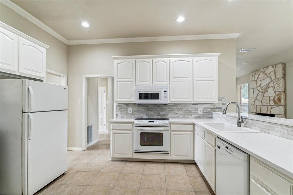Welcome to this charming 3 bed 2 bath property designed to offer comfort & style. The heart of this home is the bright and airy kitchen, ample counter space & pristine white cabinets and countertops. The semi-open floor plan flows effortlessly through kitchen, dining, and living spaces. The primary bedroom is complete with an en-suite bathroom featuring a separate tub and shower and dual vanities. The two additional bedrooms and shared bathroom are equally inviting, offering comfortable living spaces for family members or guests. Stepping outside, you'll discover a well-maintained private backyard. Whether you prefer to relax on the patio or entertain friends and family, this backyard offers endless possibilities. This property is located in a desirable neighborhood, close to schools, shopping centers, and recreational facilities. It combines the convenience of urban living with the charm of a peaceful community. Don't miss the opportunity to make this property your own.