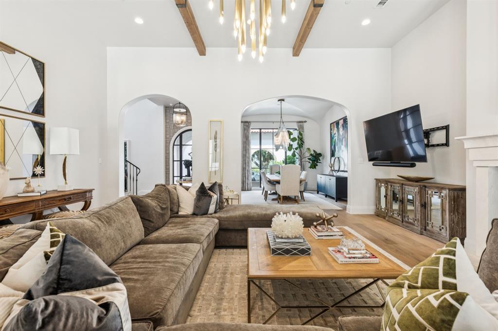 Welcome Home to this Stunning Santa Barbara inspired home in gated and guarded Vaquero. Exceptional architectural design highlights a clean transitional style, a soft color palate, exquisite character details, exposed beams and sophisticated, highest-end finishes throughout. Enter the impressive Foyer to find a welcoming Dining Room and spacious Family Room with roaring fireplace, high ceiling and walls of windows for abundant natural light. The generous Chef's Kitchen boasts professional stainless appliances, large island, spacious Breakfast room overlooking the pool view and a quaint Keeping area with fireplace to unwind at the end of the day. The Downstairs Media room is ready for everyone to enjoy the game! Retreat to the relaxing Primary suite with soaring beamed ceiling, perfect backyard view, spa-like Master bath with two vanities and soaking tub, plus 2 separate large closets. Guest Suite down with en-suite bath and walk-in closet is currently being use as a Study. Upstairs find 3 spacious Bedroom suites with private baths and walk-in closets, plus a generous Game room and quiet Bonus room. The backyard is a dream with an expansive outdoor area with outdoor kitchen, dining & living spaces - just perfect for entertaining. Lush landscaping delivers privacy and ambiance. The custom Claffey pool is inviting for Summer fun with spa, water features and tanning ledge. Turfed backyard with fire pit delivers easy living. 3 car garage PLUS additional golf cart garage. 4th fireplace in front courtyard. *SELLER HAS A SOCIAL MEMBERSHIP TO VAQUERO GOLF CLUB THAT CAN BE IMMEDIATELY EARMARKED FOR BUYERS ONCE THEY ARE APPROVED.*