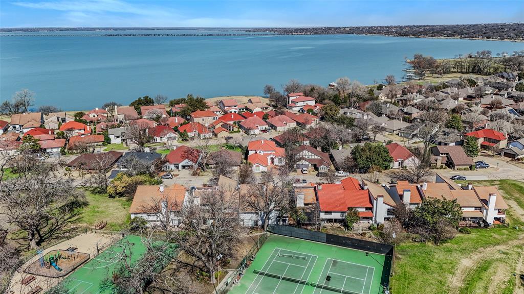 Exclusive living in the prestigious gated community of Lakeside Village on Lake Ray Hubbard. This exquisite mediterranean style custom built home is a haven of comfort and entertaining. Offering over 2790sqft of living area with 4 bedrooms one currently being used as an office and 4 baths with soaring high ceilings and a spacious layout that invites natural light to sweep through every corner. The heart of this home is its grand kitchen, a culinary dream that leads to the spacious balcony for amazing sunsets offering lake views from both the first and second-floor balconies. Primary bedroom located on the first floor has a custom walk in closet with unique features including pull downs. Second floor has a secondary living space with two en-suite bedrooms with walk in closets and ample storage. The over size garage tops it off with extra room for storage, tools or a golf cart to explore the neighborhood and play a few rounds golf. The gated subdivision offers a 9 hole golf course, pool, cabana, playgrounds, tennis and basketball courts as well as boat and RV storage