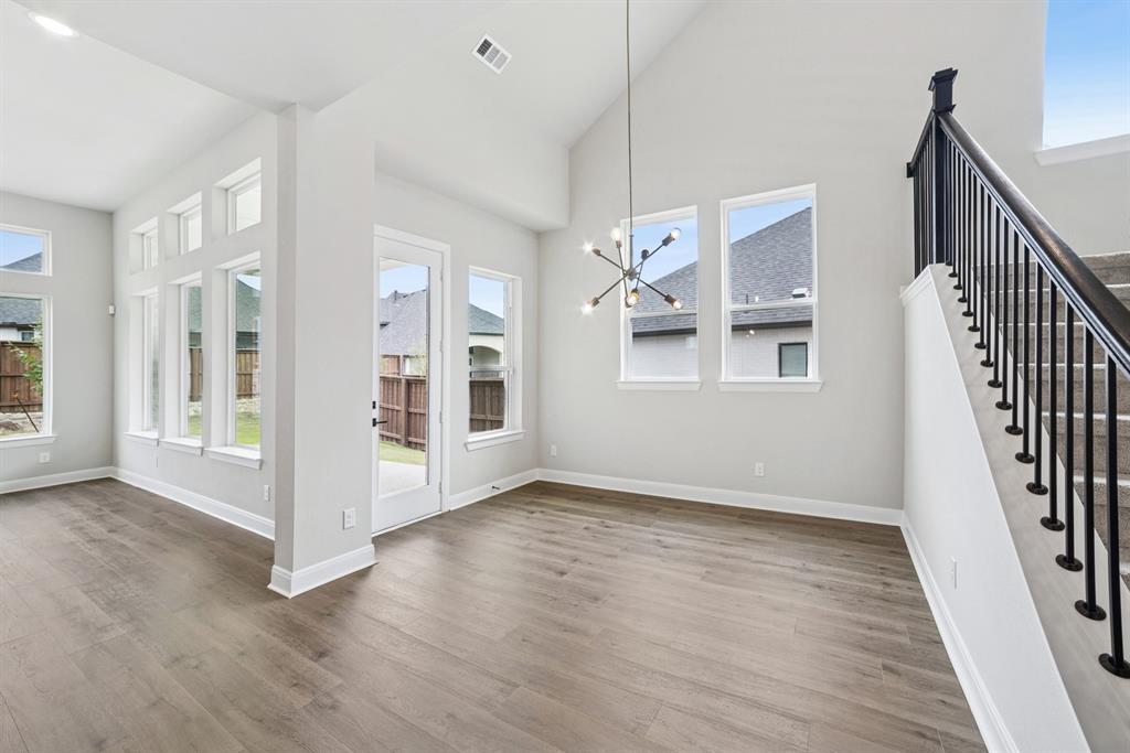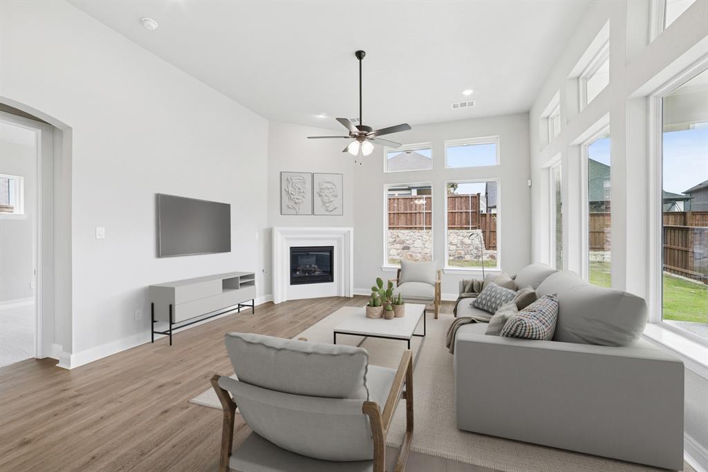 Experience a fusion of sophistication and refinement in this new home in Walsh. Genuine comforts await to elevate your daily living in this new home for sale in Fort Worth, Texas. Gather your loved ones around the gourmet kitchen’s expansive island, perfect for indulging in delightful treats and commemorating special milestones. Your Owner’s Retreat boasts a luxurious en-suite Owner's Bath and an impressive walk-in closet. Each spare bedroom provides an opportunity for personal style expression. Bathed in natural light, the open floor plan beckons with endless interior design possibilities. Embrace relaxation and camaraderie on the covered patio, ideal for enjoying refreshments and pleasant company. Customize your living space with the versatile downstairs study and upstairs retreat, perfect for crafting your dream special-purpose rooms. Additional features include a media room, a luxurious Garden tub and separate shower in the Owner's Bath, an enclosed study and a cozy fireplace in the family room. Send a message to David Weekley's Walsh Team to learn more about how every detail is crafted to enrich your lifestyle journey in this new home in Fort Worth, Texas.