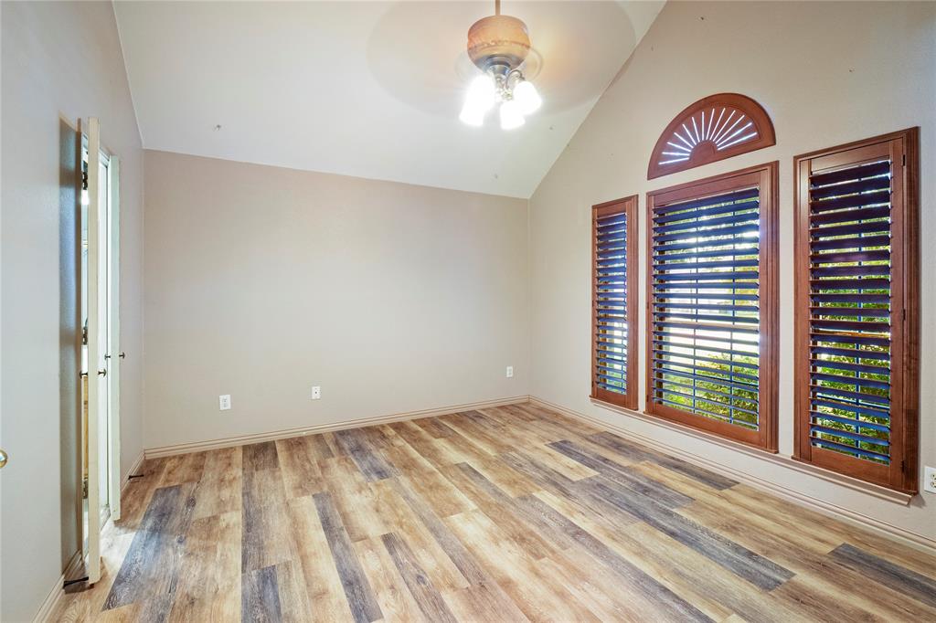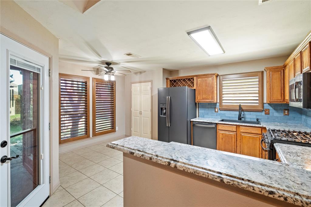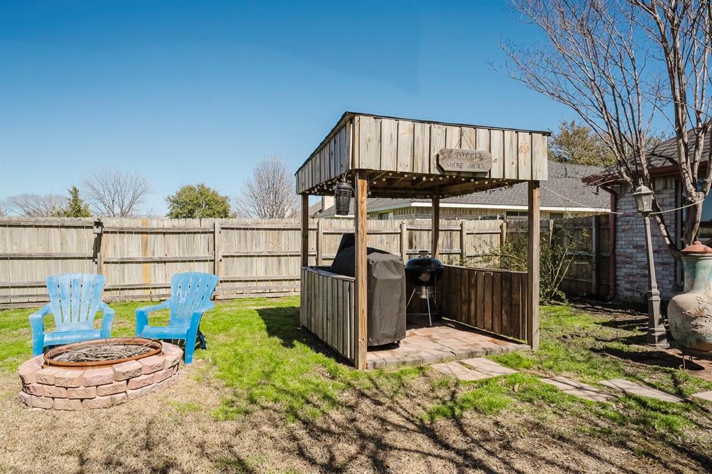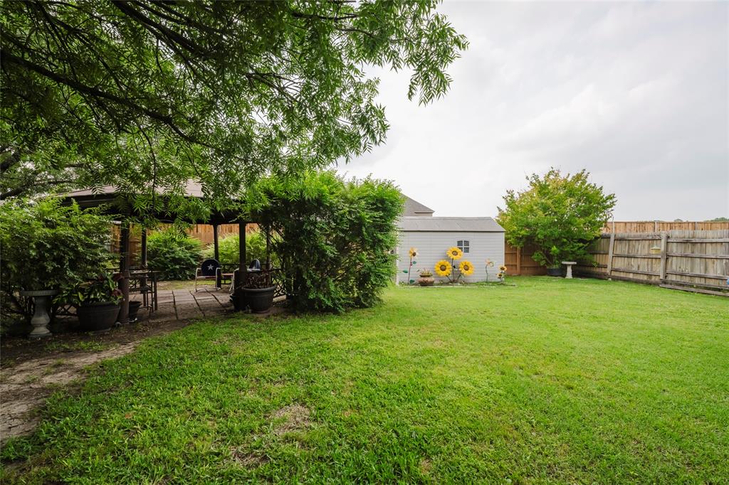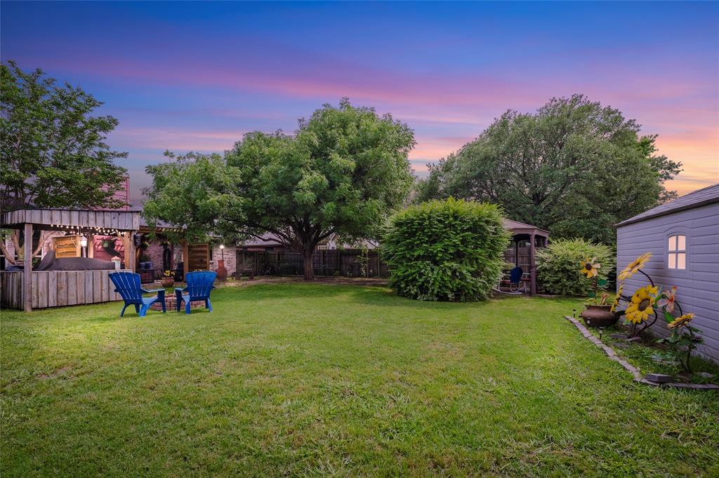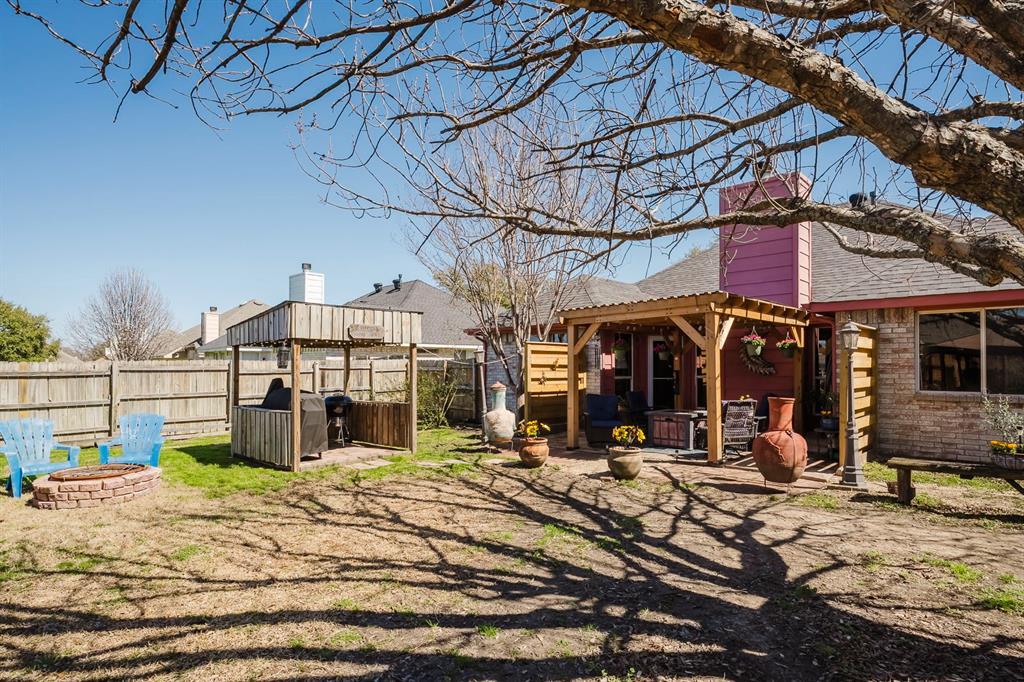 Cluck! Cluck! Your future chicks say this home has the backyard they have been dreaming about! Tucked away on a serene oversized lot with no neighbor overlooking, home blends comfort, style, and freedom with no HOA. The remodeled kitchen is a true highlight with thick granite counters, stylish backsplash, a deep granite composite sink, and a full suite of sleek black stainless appliances that convey with the home. The vaulted ceiling living area flows easily into dining and kitchen spaces, while luxury plank flooring runs throughout for a clean, modern look with no carpet. Every window features custom wood shutters valued at more than $500 each, new ceiling fans have been installed in all rooms, and a smart Nest thermostat helps keep energy use efficient year round. Step outside to nearly a quarter acre of backyard living. Enjoy the 10 foot gazebo for shaded dining, the covered pergola just off the kitchen for sunset views, a custom grill smoke shed ready for BBQ season, and a fire pit patio perfect for late night gatherings. The oversized yard offers room to add a pool, batting cage, or your chicks NEW coop! Enjoy the open green space for pets and play. Now vacant and move in ready, home is even easier for you to imagine your life unfolding within its walls and outdoor spaces. Located in Forney ISD, one of the few North Texas districts with its own indoor swim facility, and close to shopping and dining, new Methodist hospital and Costco, this home delivers both lifestyle and convenience.