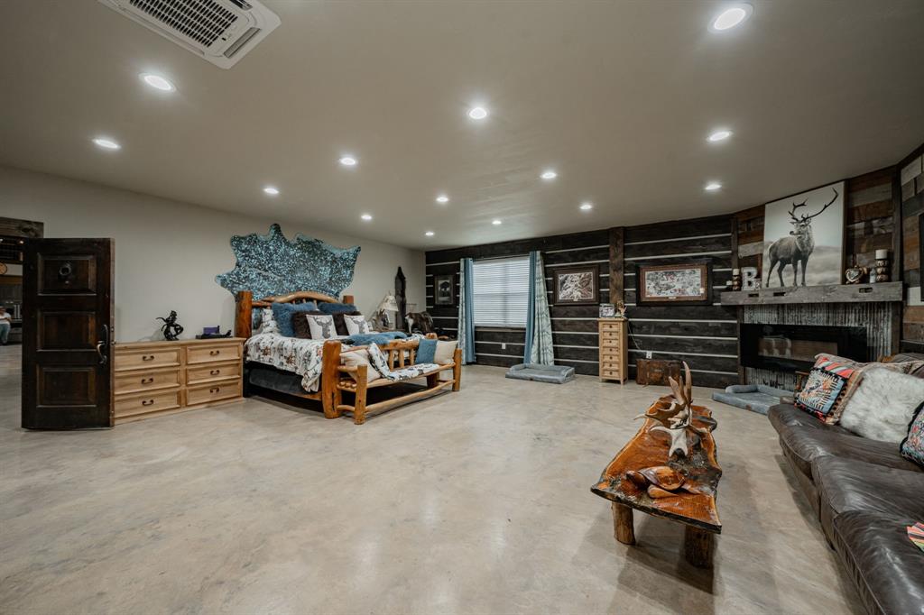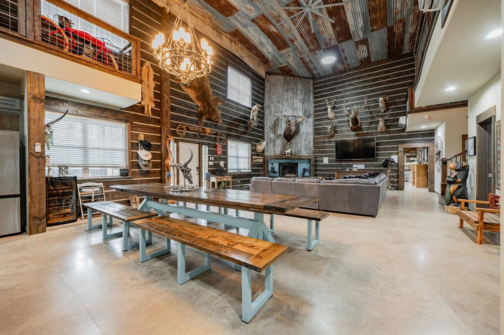 Looking for a private slice of paradise? Experience unparalleled luxury and versatility at this gated, one of a kind 35 acre ranch backing to a serene 6 acre lake where you can escape the city to unwind or entertain on a grand scale. Here you will step into a world where rustic charm meets modern sophistication, and there is something for everyone. Whether you like to hunt, fish, shoot skeet or target practice, ride horses or ATV’s, you can enjoy the great outdoors in style. The crown jewel of this estate is the expansive approx 6,300 sq ft main residence, a masterpiece of craftsmanship and design. Featuring 3 spacious bedrooms, easily convertible to 5, the primary suite is 1250 sqft, the home is adorned with unique touches such as rustic tin ceilings, industrial Harley Davidson lighting, and 100+ year-old reclaimed wood, blending timeless elegance with rugged allure. Gather together in the 1500 sf main living area, a huge dining and double island epicurean kitchen for holidays and reunions. The stage is already set for culinary creations with top-of-the-line Viking appliances. Adjacent to the main house, approx 1,400 sqft guest house perfect for visitors or extended family. These two homes share an oversized outdoor commercial cooking and dining area. This estate also boasts an impressive 10,500 sqft of shop space under a class 4 commercial roof, perfect for car enthusiasts, artisans, or entrepreneurs. With 7 stalls, RV and boat storage, 2 wells, and state-of-the-art 74 solar panels, the property is as functional as it is beautiful. This property isn't just a home; it's an opportunity designed to inspire and impress with rare combination of natural beauty and architectural excellence. With its vast acreage, several hunting blinds, numerous amenities, it’s ideal for a family retreat, a working ranch, or an income-generating venue. Here, the possibilities are as endless as the stunning sunsets.