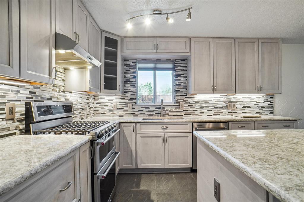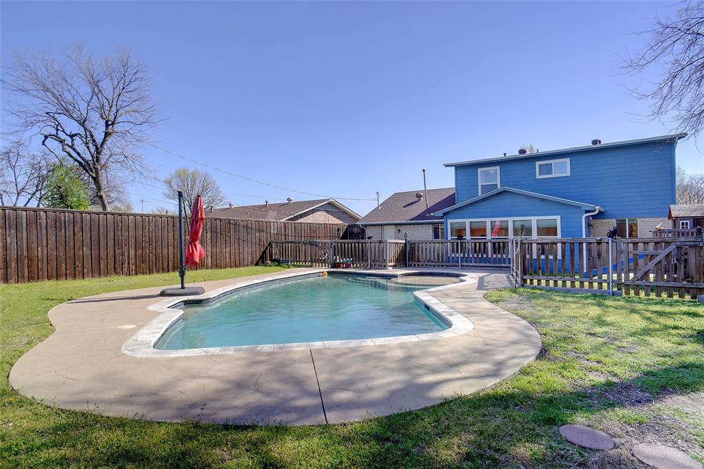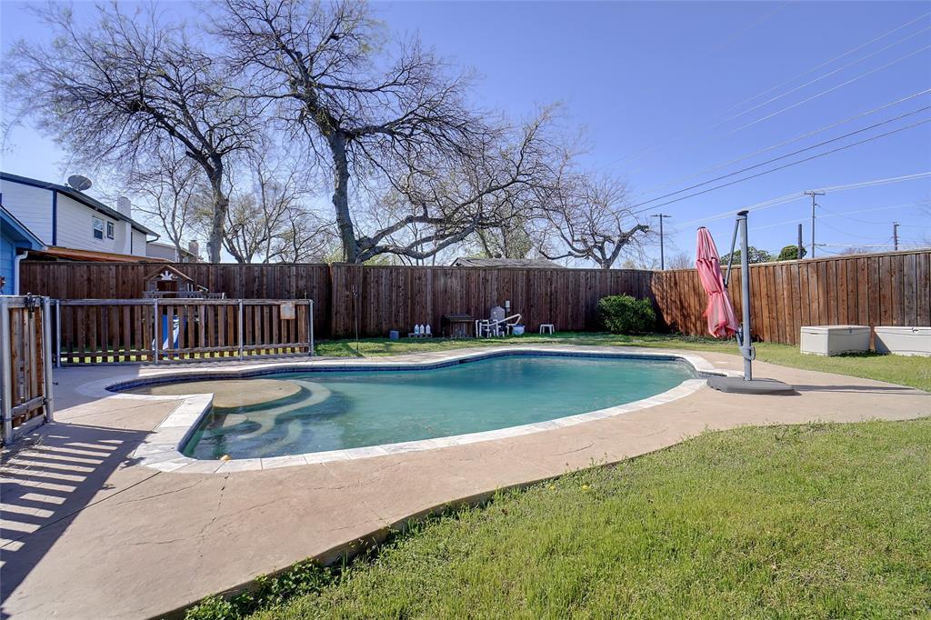 REMODELED, ALMOST EVERYTHING NEW OR REPLACED IN 2019-2020! RECENTLY HAD POOL FILTER, PUMP & BACKWASH REPLACED WITH ALL NEW EQUIPMENT FOR THE POOL, WORK DONE BY LESLIE'S POOL, SEE RECEIPT*NEW ROOF TO BE INSTALLED PRIOR TO CLOSING BY HUFFAKER ROOFING* LOCATED IN SKILLMAN FOREST PARK ADDITION, GARLAND*RICHARDSON ISD*SPARKLING IN GROUND GUNITE, CHLORINE POOL WITH SPLASH PAD, LOUNGING AREA, WATER FOUNTAIN FEATURE & UMBRELLA HOLDER- POOL UPDATED*FABULOUS GOURMET STYLE KITCHEN WITH 9 FOOT QUARTZ ISLAND, PLUGS ON BOTH SIDES*TONS OF STORAGE*CUSTOM CABINETRY*4 BURNER GAS SLIDE IN RANGE, STAINLESS APPLIANCES*PULL OUT SPICE DRAWERS, GLASS BACKSPLASH*LIGHT & BRIGHT SUNROOM IS AN ADDITION AND ADJACENT TO THE DREAM KITCHEN-NOT VENTED WITH HVAC, BUT STAYS AT COMFORTABLE TEMPERATURE WHEN DOOR FROM SUNROOM TO KITCHEN IS OPEN, COULD BE FLEX ROOM*LOT IS 127 X 60*LIVING-FAMILY ROOM HAS WINDOW SEAT, CEILING FAN & CARPET FLOORING*LARGE UTILITY ROOM*HALF BATH DOWN*ALL BEDROOMS UP*PRIMARY BEDROOM HAS BARN SLIDING DOOR AND OPENS TO UPSTAIRS BATH*2 CAR GARAGE, FRONT FACING WITH ATTIC ACCESS*