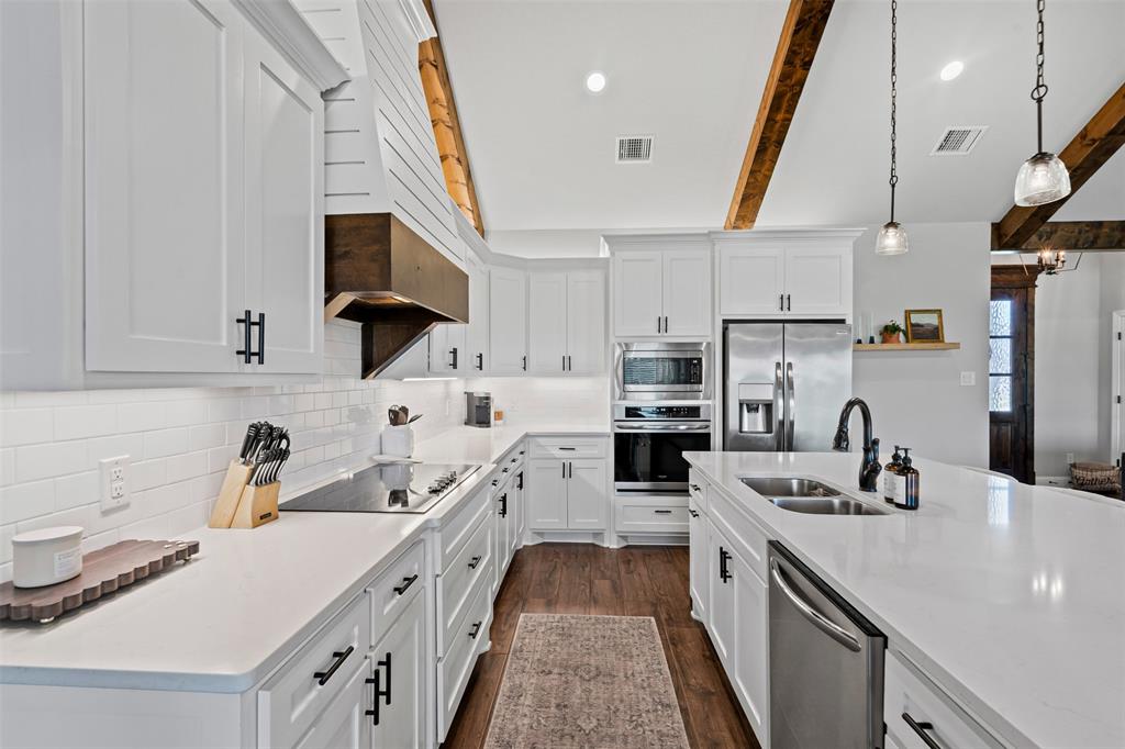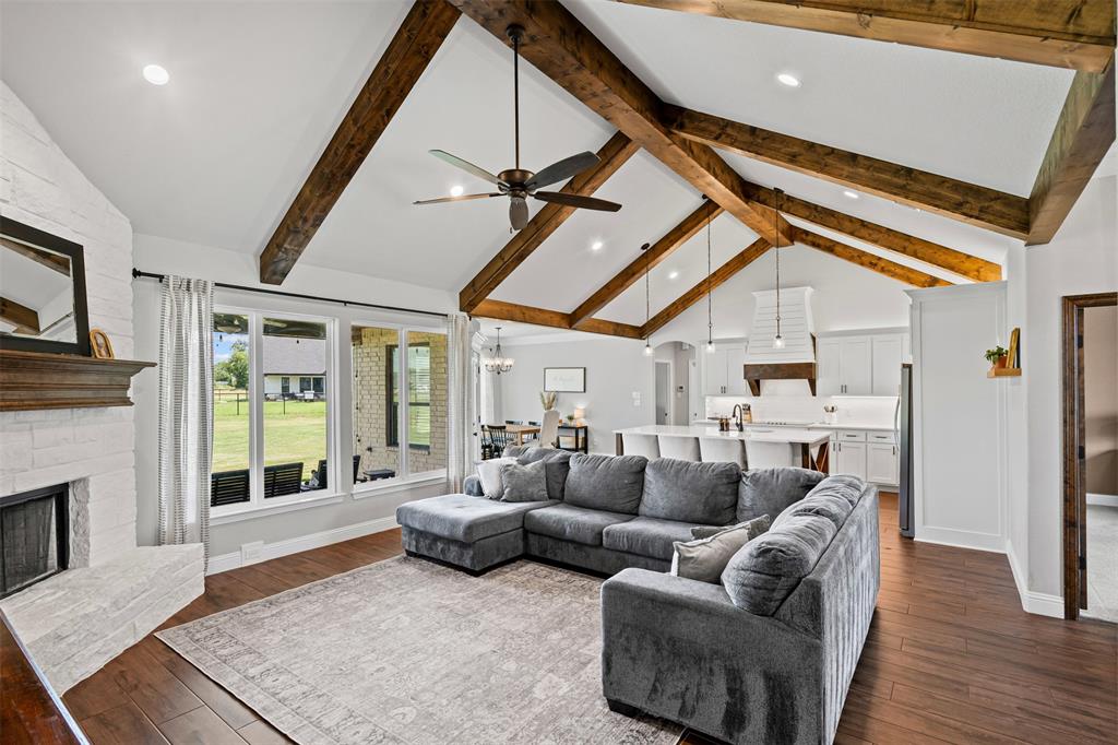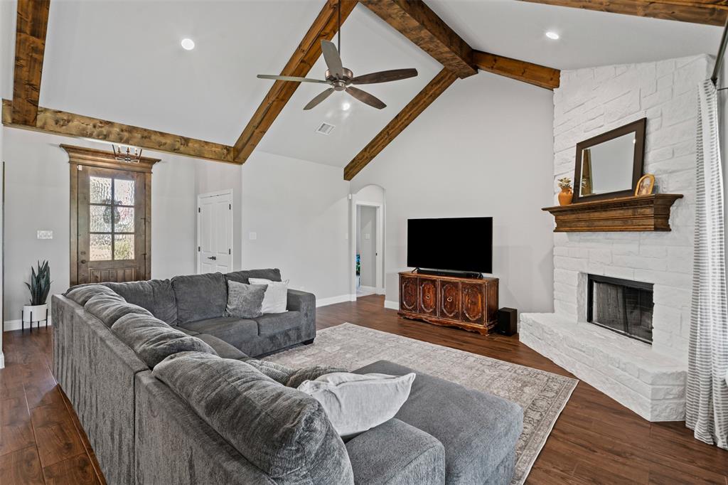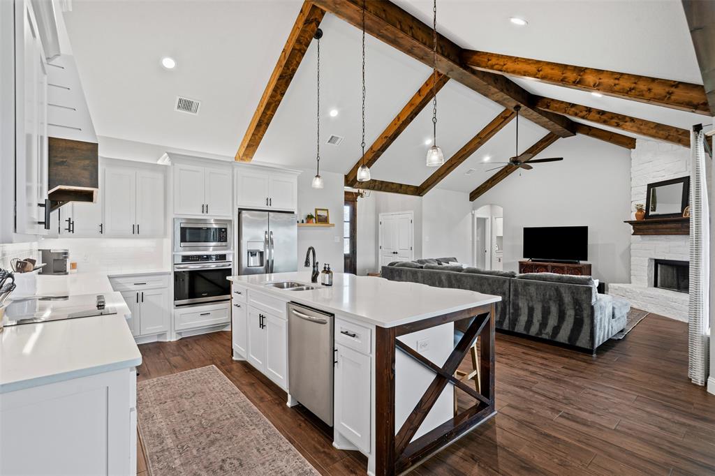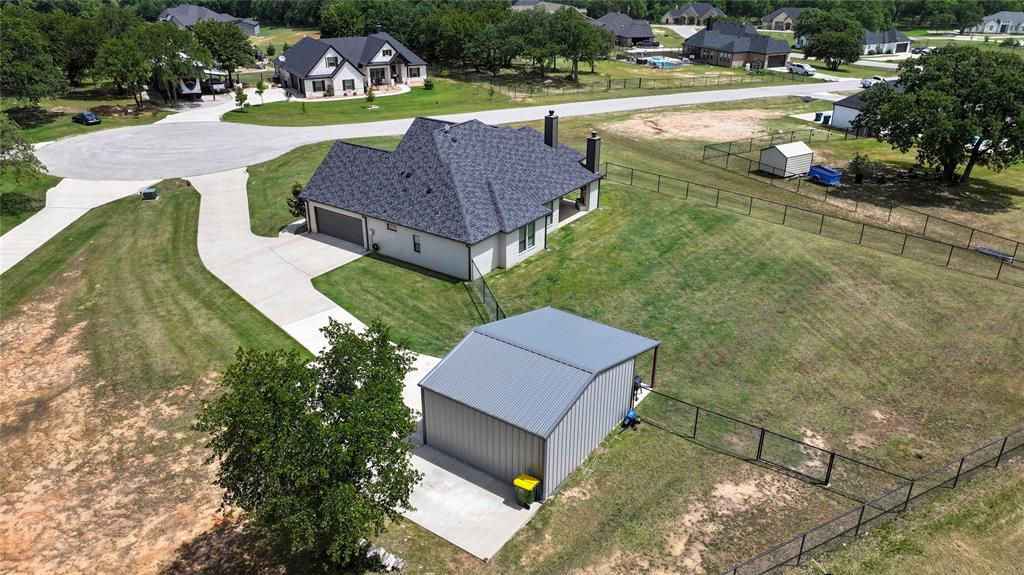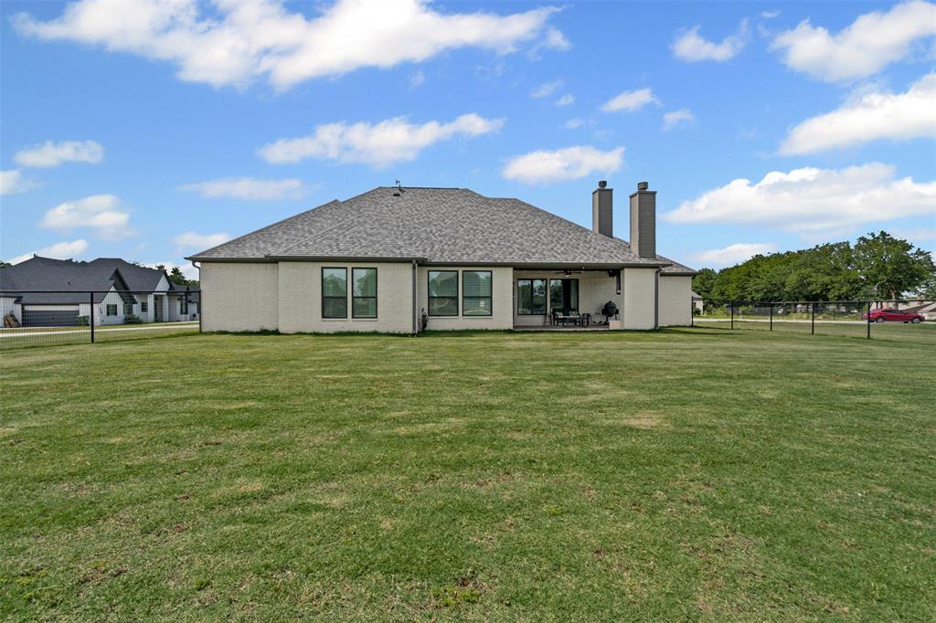 LBK Home in sought after Creek Forest Estates just outside of city limits and just 30 minutes from downtown Fort Worth! Desirable LBK HOME with open concept with beautiful ornate beams in the kitchen and living room with a ranch style design. Trim work in this home is beautiful and floor to ceiling windows in living area that give the most grand feel as you enter. Also comes with 4 bedrooms, oversized 2 car garage, 2 bathrooms. Primary suite incudes a large walk in closet, separate shower and dual vanities and beautiful free standing large tub! Enjoy the large completely fenced backyard including 15X30 workshop and fireplace on the porch to warm those nights!. Very energy efficient home that has been given so much love!