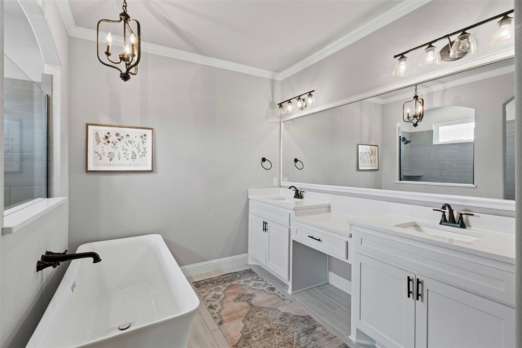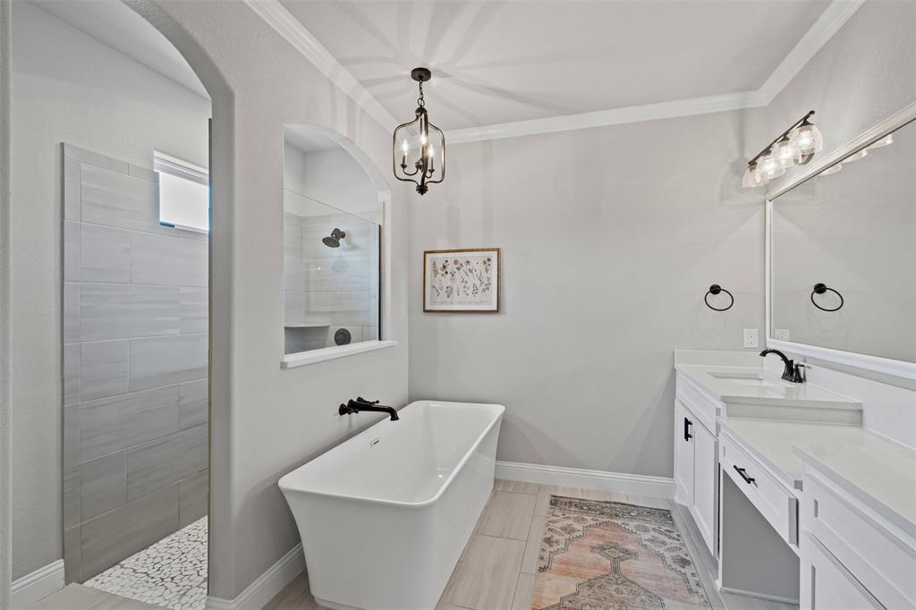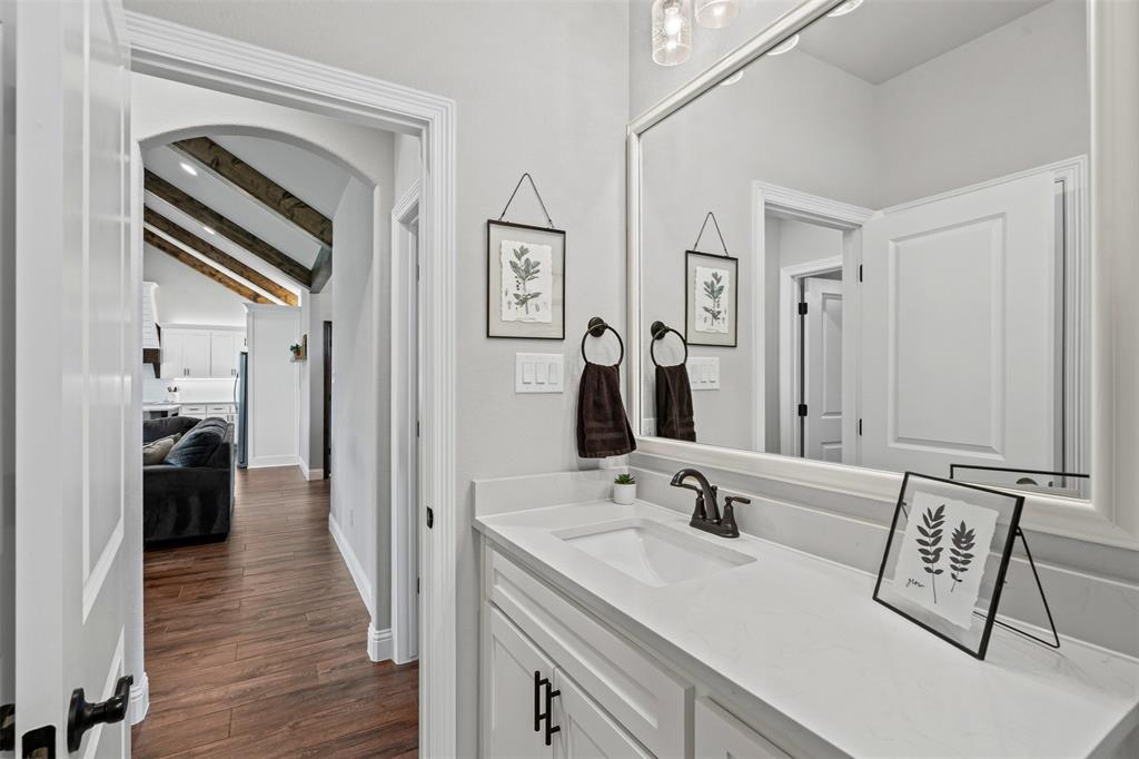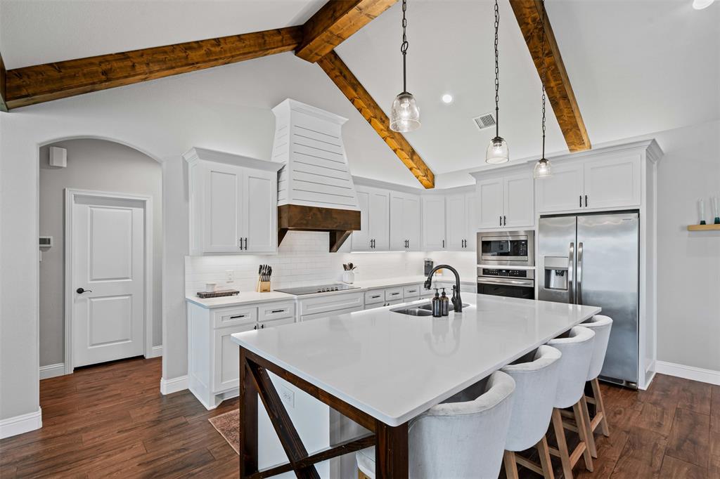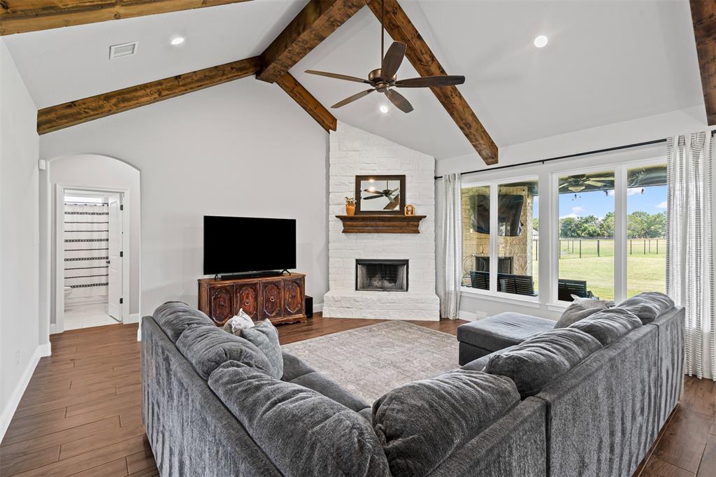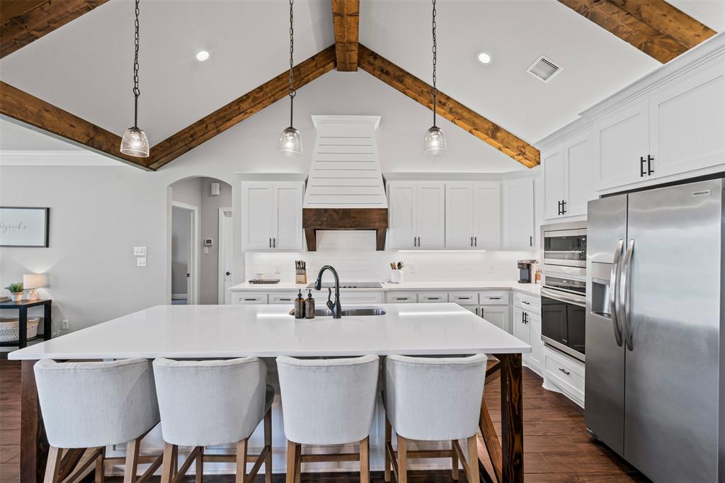 LBK Home in sought after Creek Forest Estates just outside of city limits and just 30 minutes from downtown Fort Worth! Desirable LBK HOME with open concept with beautiful ornate beams in the kitchen and living room with a ranch style design. Trim work in this home is beautiful and floor to ceiling windows in living area that give the most grand feel as you enter. Also comes with 4 bedrooms, oversized 2 car garage, 2 bathrooms. Primary suite incudes a large walk in closet, separate shower and dual vanities and beautiful free standing large tub! Enjoy the large completely fenced backyard including 15X30 workshop and fireplace on the porch to warm those nights!. Very energy efficient home that has been given so much love!