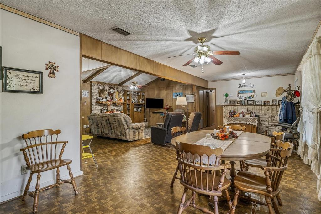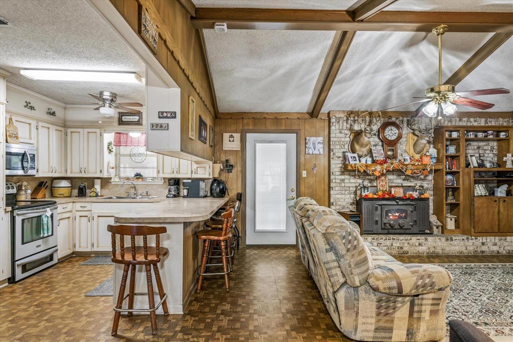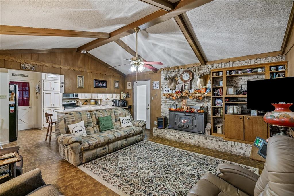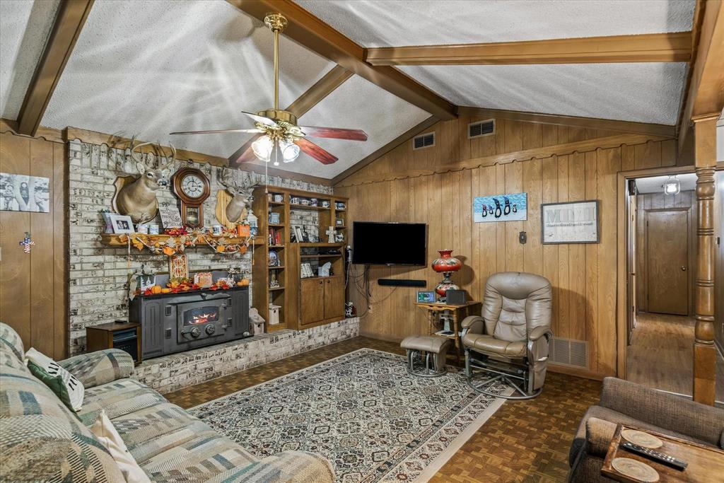 This charming 2,124 square foot brick home in Edgewood, TX offers 3 bedrooms, 2 baths, and a versatile open floor plan with two spacious living areas. Enjoy cozy evenings by the wood-burning fireplace in the main living room, which flows seamlessly into the dining and kitchen areas, perfect for entertaining. The home features a durable metal roof, adding long-lasting value and appeal. With ample natural light and space for comfortable living, this property offers both functionality and charm, ideal for anyone seeking a peaceful, rural lifestyle. There is an additional room perfect for a sewing, workout, music or a great study with built ins. The storage in this house will astonish you for the age. Move right in or make it your own.
