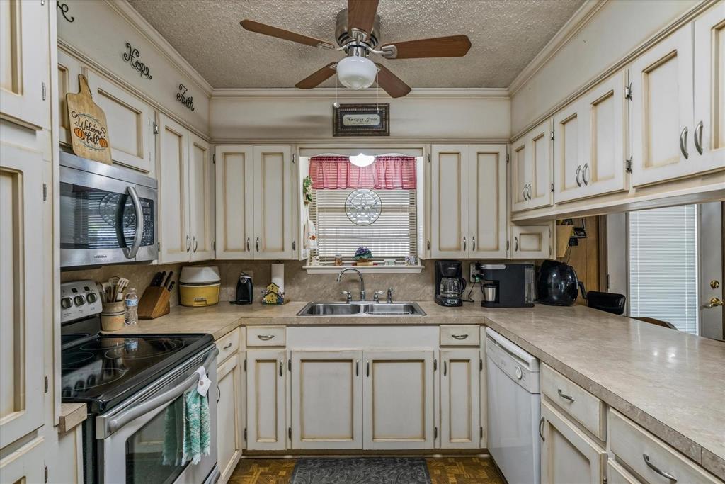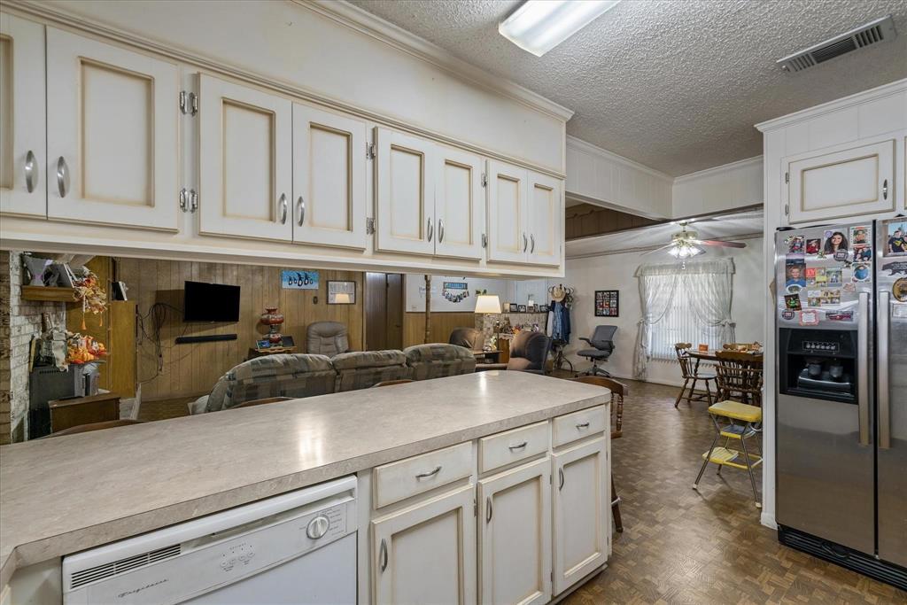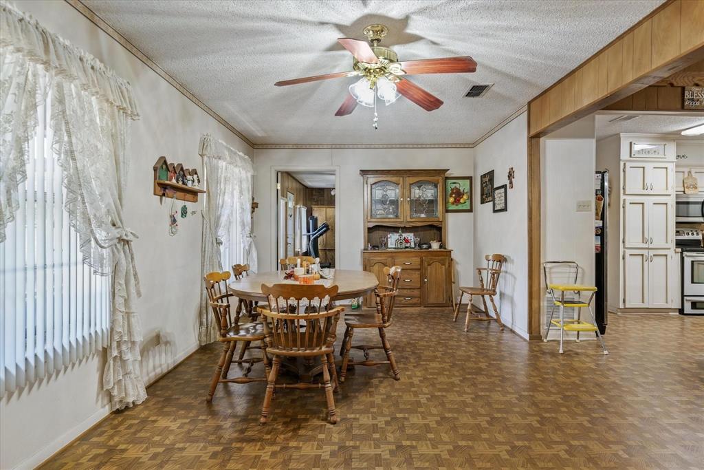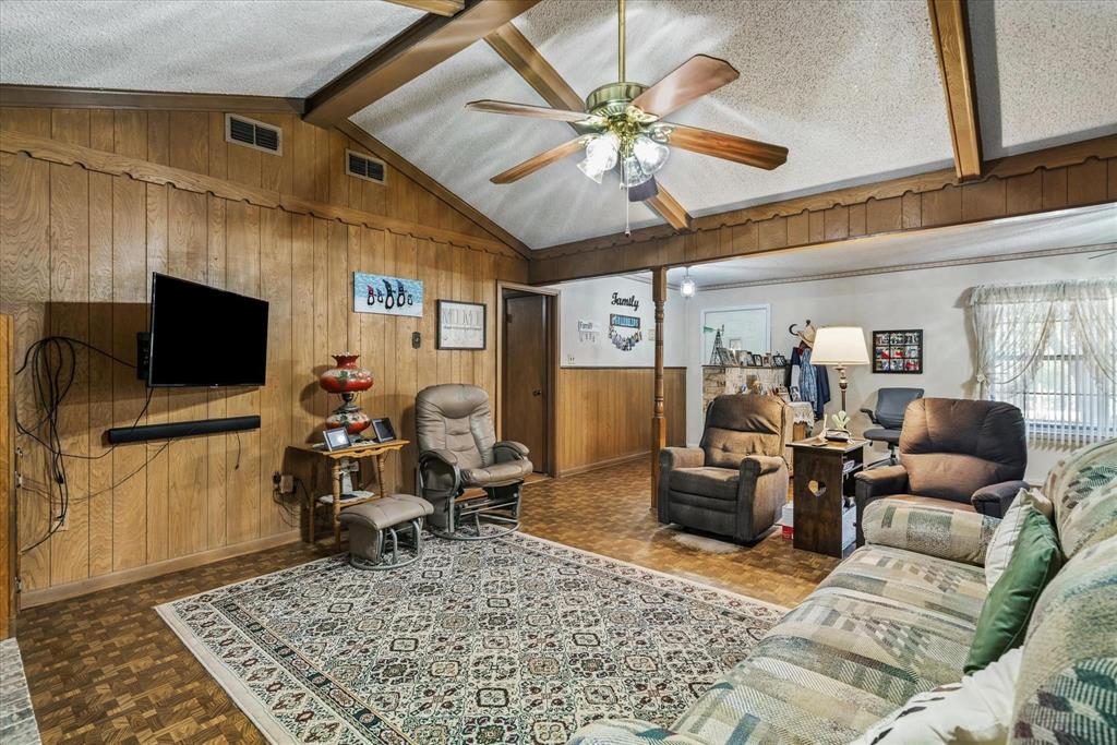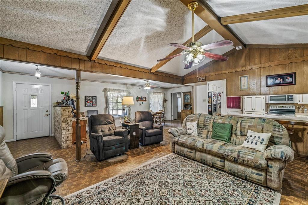 This charming 2,124 square foot brick home in Edgewood, TX offers 3 bedrooms, 2 baths, and a versatile open floor plan with two spacious living areas. Enjoy cozy evenings by the wood-burning fireplace in the main living room, which flows seamlessly into the dining and kitchen areas, perfect for entertaining. The home features a durable metal roof, adding long-lasting value and appeal. With ample natural light and space for comfortable living, this property offers both functionality and charm, ideal for anyone seeking a peaceful, rural lifestyle. There is an additional room perfect for a sewing, workout, music or a great study with built ins. The storage in this house will astonish you for the age. Move right in or make it your own.