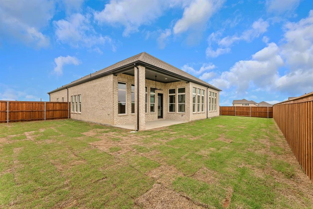 *DISCOUNTED SALE PRICE VALID UNTIL 9-30-2025! PROMO 4.99% Interest Rate included with Sale Price - MUST CONTRACT BY 9.30.2025. This inspiring Johnson Floor Plan by GFO Home is a modern One-Story featuring 4 Bedrooms, 3 Baths, Study, and spacious 3-Car Garage. This home has beautiful entry foyer light fixtures and a stunning contemporary front door, a private Study, stunning living room with high ceilings and an Open concept floor plan boasting a Chef’s Kitchen with large center island, gas cooktop, stainless steel appliances, large walk-in pantry and attached breakfast room with beautiful windows for tons of light and a nice covered patio. The luxurious Primary Suite sits at the back of the home for nice backyard views and features a beautiful spacious bathroom with double vanities, designer free-standing tub, and a separate large walk-in shower featuring upgraded shower wall glass windows and a built-in shower bench seat, a linen closet, and a spacious large Primary Walk-In Closet. This home also includes 3 stylish secondary bedrooms, one guest bedroom features a full bath while the other two guest bedroom share a Jack & Jill Bathroom with their own separate sink areas and share a tub and commode area. Enjoy a centralized nice Utility Room with space to add an additional fridge.
