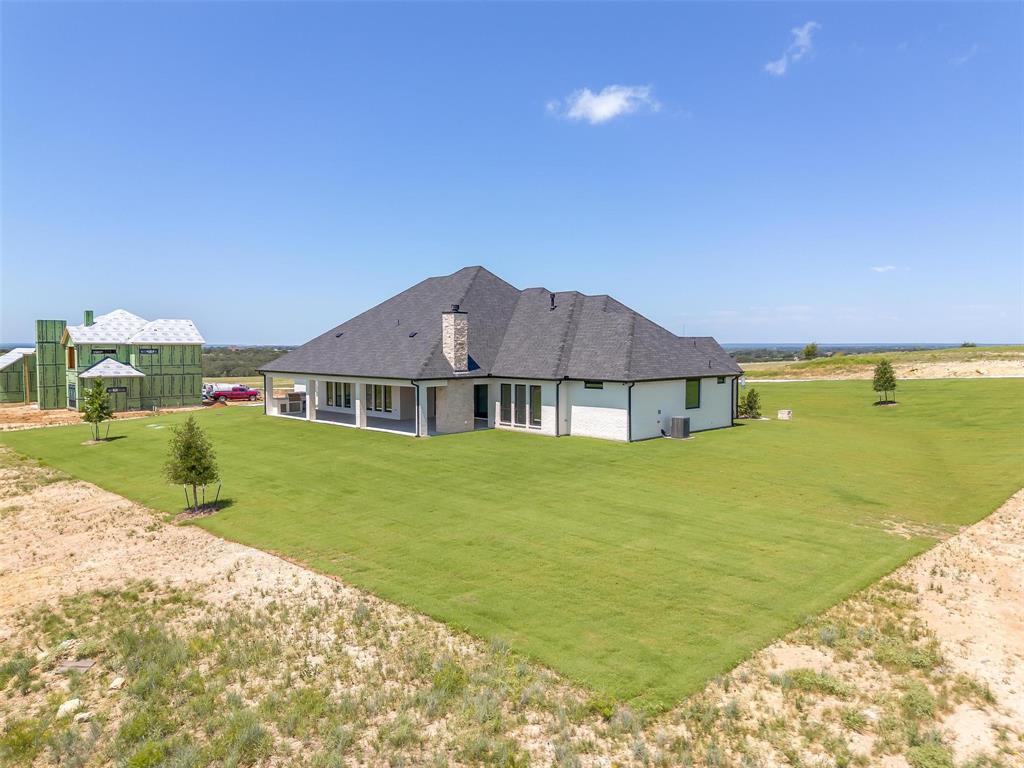 Experience the pinnacle of luxury living in this stunning new construction home, nestled within Brock ISDs newest, prestigious gated community, Santorini. Crafted for the elite buyer, this 4-bedroom, 3 and a half bath masterpiece exudes sophistication with every detail, from the vaulted ceilings with built-ins to the sealed combustion fireplace anchoring the expansive living room. The gourmet kitchen is a chef’s dream, featuring commercial-grade appliances, quartz countertops, and upgraded decorative lighting that elevates every meal. A wine rack and cooler in the pantry add a touch of indulgence, while the oversized island seamlessly connects to the living spaces—perfect for entertaining. Retreat to the main bedroom, a sanctuary boasting an oversized closet with built-in storage and a luxurious en-suite with a built-in vanity. The home also offers a game room for leisure, a dedicated study for productivity, and an oversized laundry room for ultimate convenience. A 4-car garage with epoxy flooring provides ample space and a polished finish. Step outside to the oversized patio, where a wood-burning fireplace and built-in grill create an outdoor oasis for year-round enjoyment. No detail has been overlooked in this exquisite residence, where high-end finishes and thoughtful design converge. Cedar trees line the back of the property for additional privacy! Secure your place in Santorini’s luxury landscape—schedule a private tour today!