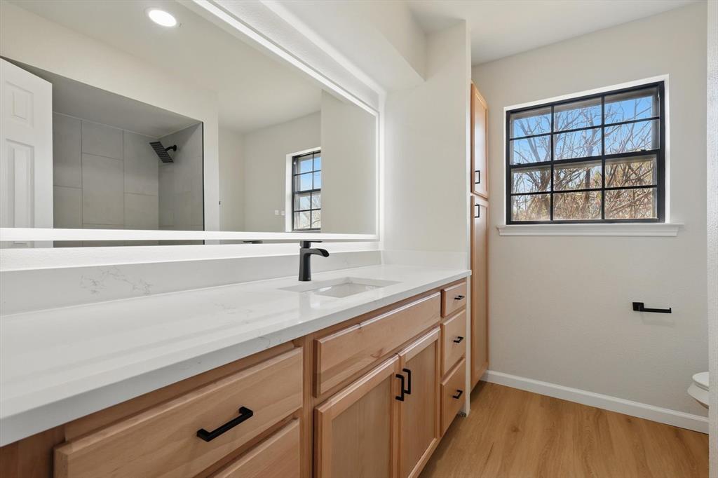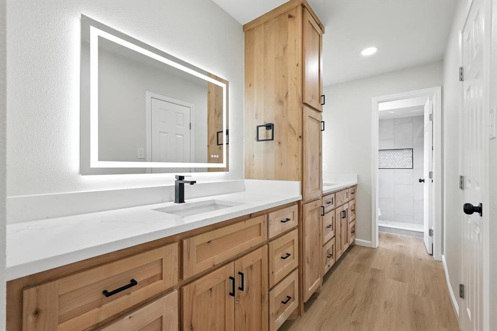 This is a seller paid rate-buydown that reduces the buyer’s interest rate and monthly payment. Terms apply, see disclosures for more information. See QR code in listing documents. THIS NORTH LEWISVILLE TWO-STORY SITS ON A QUIET STREET AND HAS A TOTAL MAKEOVER WITH AN UPDATED CONTEMPORARY FEEL!! Enter to a totally updated home with replaced light LVP flooring and carpet, fresh paint, and lighting. The kitchen has a total makeover with replaced cabinets, flooring, counters and appliances, and opens to a large nook area. There is a barn door opening to the oversized laundry which also boasts great extra storage. The ample family room has a pretty updated fireplace. The Primary suite is down with an updated bath area with replaced cabinets and counters and an updated shower. There are two bedrooms and a pretty updated bath up. The backyard is a nice size and has a large open patio and much of the fence has been replaced. The home is zoned to sought-after schools and has easy access. HURRY!!