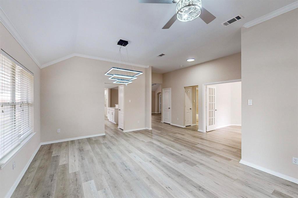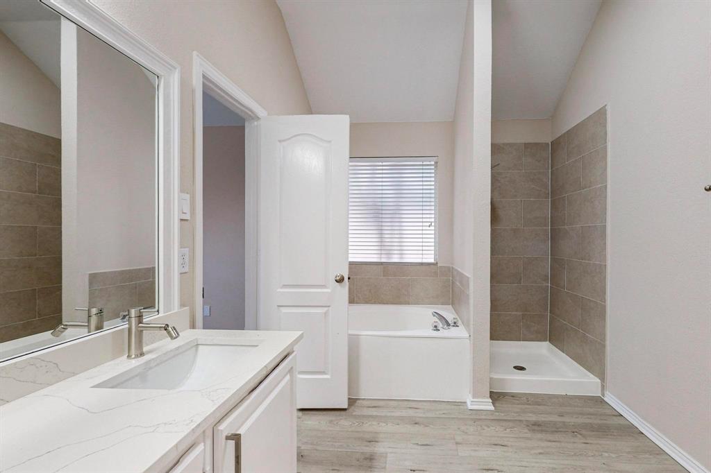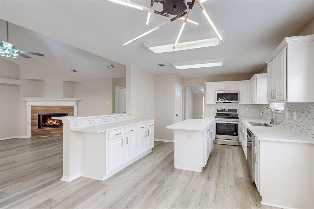 Step into this elegantly updated home with a semi open concept design creating a warm and inviting atmosphere. The home features sleek quartz countertops, stainless steel appliances, modern fixtures, and luxury vinyl plank flooring throughout the main living areas. The spacious primary suite is a true retreat, boasting a large bathroom with a soaking tub, separate walk-in shower, dual sink vanity, and a generous closet. Outside, a 2025 roof and the backyard offers the perfect space for relaxation or entertaining, making it easy to enjoy the outdoors. Nestled in a desirable neighborhood, this home blends style, comfort, and convenience - perfect for making lasting memories.