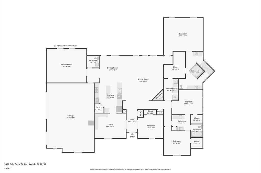 This is the one you've been waiting for...EXCEPTIONAL, ONE OWNER, CUSTOM-BUILT home, located in the desirable Turtle Creek Ranch Addition. Finally a property that offers the perfect blend of spacious living and ample work space. Built in 2005, this home features 4 bedrooms - plus an office - 2 full bathrooms, a half bath, a bonus or flex room, over 2,800 square feet of living space and is set on a generous, 1+ acre lot. Enjoy entertaining in this bright and open floor plan that includes a spacious living room, well-equipped kitchen and a comfortable primary suite with an en-suite bathroom featuring dual vanities, a separate shower and a soaking tub. Cozy up by the indoor fireplace - or relax outside on the oversized, covered patio by the outdoor fireplace. Additional features include a three-car garage, meticulous landscaping, and the serenity of a premiere neighborhood - offering a tranquil atmosphere while still being close to Fort Worth's amenities. In addition to being absolutely pristine, this property also boasts a 25 ’x 50’ shop with 3 bays, 4 garage doors, water, electricity and a 10’ overhang- making it ideal for hobbyists, small business owners or anyone in need of extensive storage and space to work. Whether you're looking to store vehicles, work on projects, or create a customized space for your needs, this one-of-a-kind workshop is a standout feature that adds tremendous value. Park all the toys and trailers with ample driveway space and an electric gate. The home is on city water but the irrigation system is on a well. Whether you're relaxing in the home, working in the shop, or enjoying the outdoors, 3001 Bald Eagle Court offers the perfect balance of convenience, comfort, and functionality.