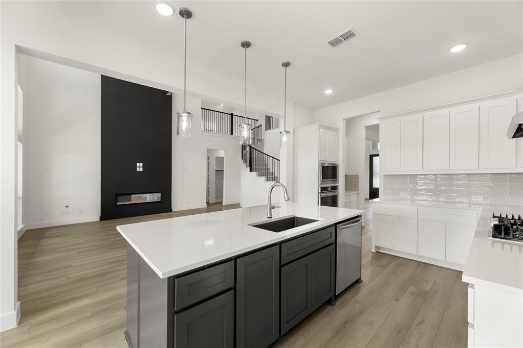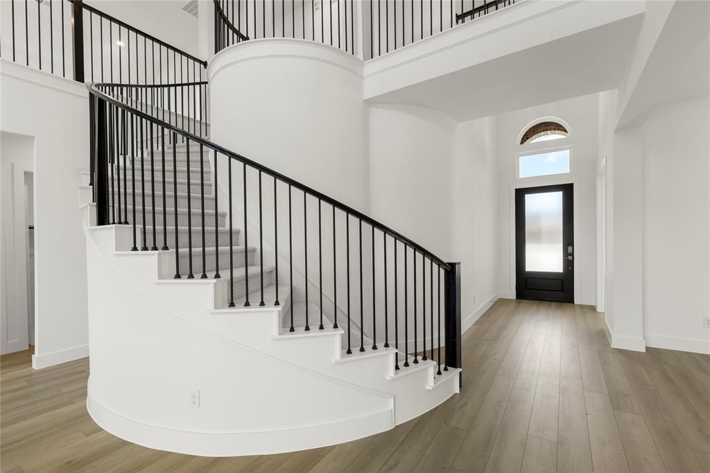 MLS# 20879069 - Built by First Texas Homes - Ready Now! ~ Unlock Up To $20K in Closing Cost Assistance for Qualified Buyers on Select Inventory Homes!Limited time offer—ask a Sales Consultant for details!Step into luxury with this beautifully designed home, perfectly nestled in a quiet cul-de-sac. From the moment you arrive, you'll notice the upgraded brick and mortar, an elegant front door, and a grand raised family room ceiling for an open and airy feel. The fireplace extends to the ceiling, adding warmth and sophistication.Inside, enjoy the seamless flow of luxury vinyl plank flooring throughout the main living areas, including the entry, extended entry, study, flex room, family room, kitchen, nook, pantry, hallway, and primary suite. The curved staircase makes a statement with its wood starter step, while a floor plug in the family room adds convenience.The gourmet kitchen is a chef’s dream, featuring shaker-style cabinetry with extra storage up to the ceiling, gleaming quartz countertops, and a trio of stylish pendant lights. An extended dining room adds even more space for hosting memorable gatherings.The primary suite exudes elegance with framed mirrors and spa-like finishes, while the media room sets the mood with custom sconces. Step outside to a beautifully upgraded patio, perfect for outdoor entertaining. Every detail of this home has been carefully curated for style and function—schedule a tour today and experience it for yourself!