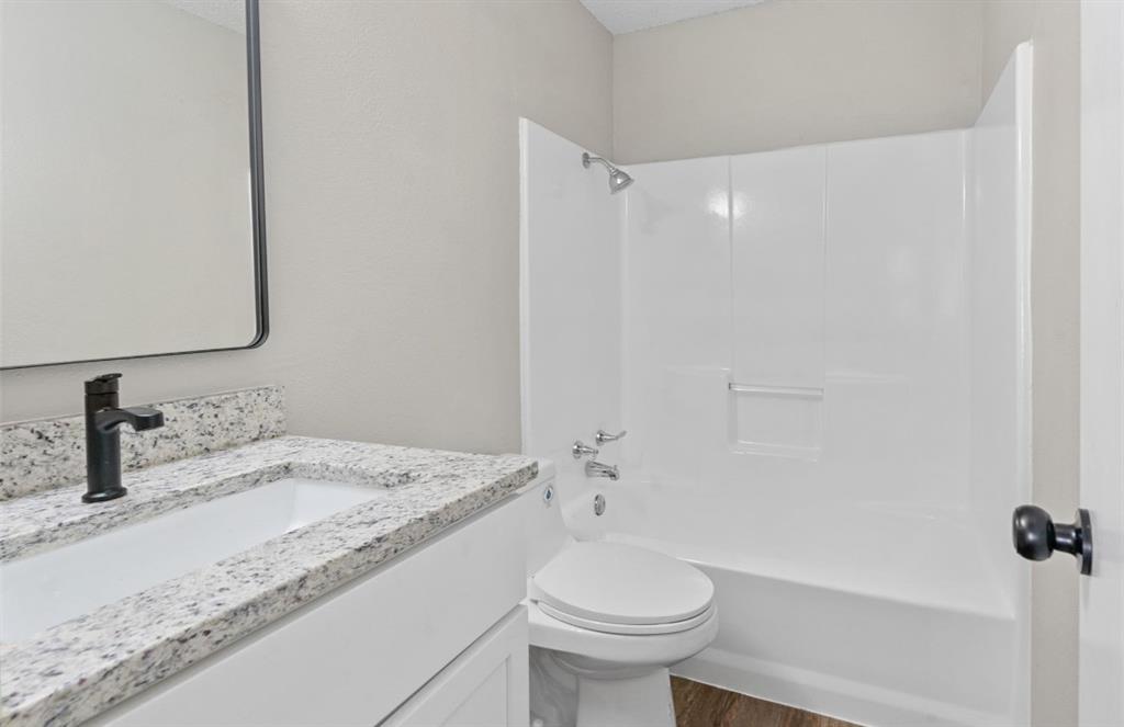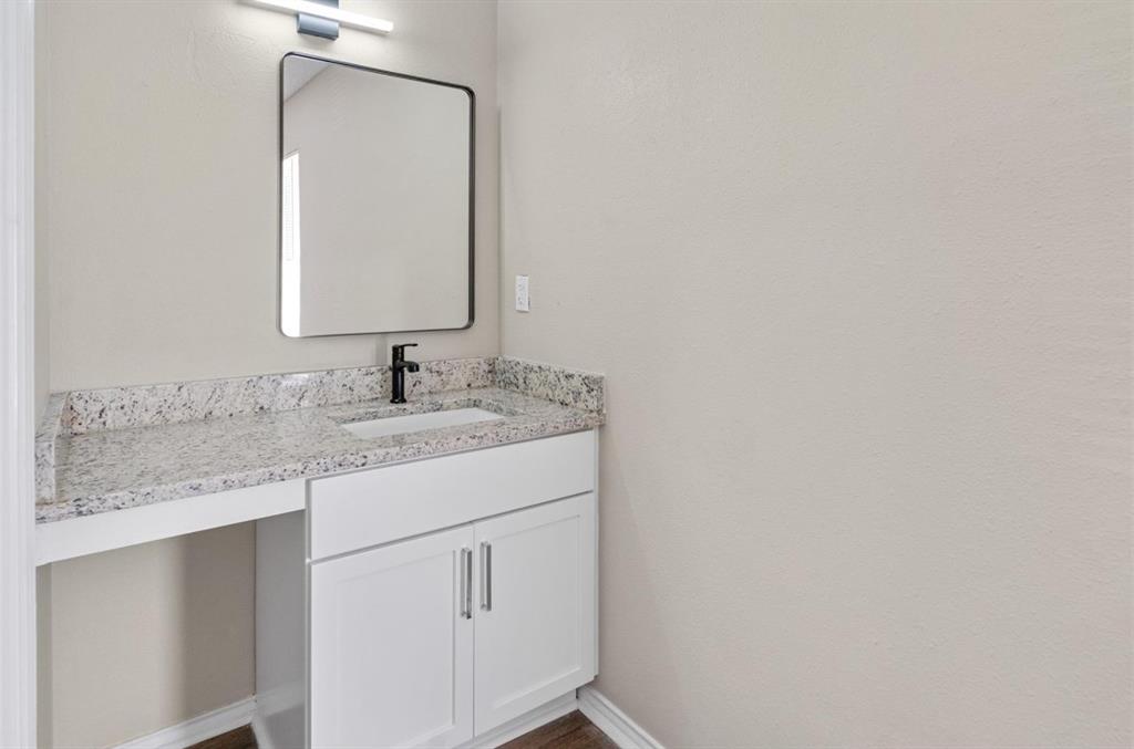 The bathrooms have been upgraded with new vanities, granite countertops, and stylish fixtures.