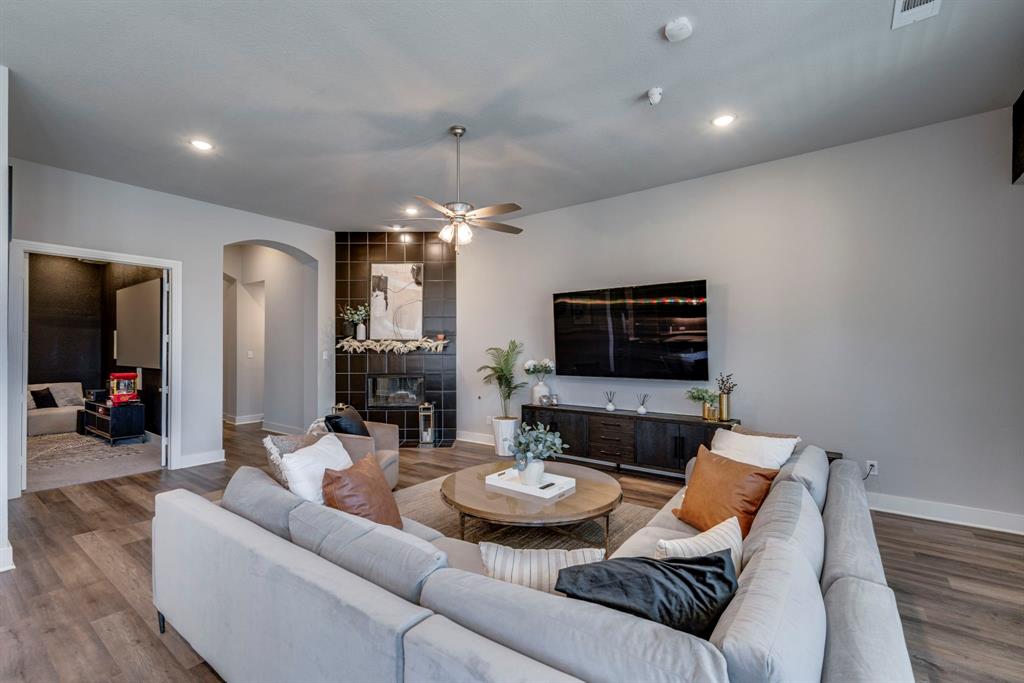 OPEN HOUSE SUNDAY 8-24, 2PM-4PM*$50K OF UPGRADES ALREADY DONE FOR YOU + A HUGE PRICE REDUCTION*SEE TRANSACTION DOCS FOR UPGRADES*Stunning Highland Home showcases the highly sought-after Canterbury Floorplan,designed to accommodate modern living with elegance&ease*Boasting 4 spacious bedrooms&3 full baths,this residence provides ample space for families of all sizes.Inclusion of a private mother-in-law suite ensures comfort&privacy for guests or extended family members*As you step inside,you'll be captivated by the home's impeccable craftsmanship & designer details*The grand entryway welcomes you with soaring 12 ft. ceilings,Luxury Vinyl Plank flooring&a sophisticated color palette that exudes warmth&charm*An inviting media room,perfect for movie nights,while the study offers a quiet retreat for work or relaxation*Media room features surround sound&theater equipment which will be available for sale at $5000.At the heart of the home,the gourmet kitchen is a chef’s paradise*It features a massive quartz island with seating,pristine 42in cabinetS&custom lighting above&below the cabinets to create an enchanting ambiance*High-end stainless steel appliances,vented exhaust fan, tankless water heater,quartz countertops&designer backsplash elevate both functionality&aesthetics*Primary suite is a sanctuary,featuring lg.bay window&spa-like ensuite bath with luxurious free-standing soaking tub,separate glass-enclosed shower,dual vanities&expansive custom walk-in closet designed for optimal storage&organization*Step outside to the fully Cedar fenced backyard,where a covered patio provides the perfect space for outdoor dining&relaxation*Sprinklers in the full yard to help keep the lawn perfect*Plus,with the community pool&amenity center right across the street,you’ll enjoy breathtaking views&convenient access to resort-style amenities*This home offers easy access to schools,shopping,&major highways offering a modern elegance that is completely move-in ready&well maintaned*