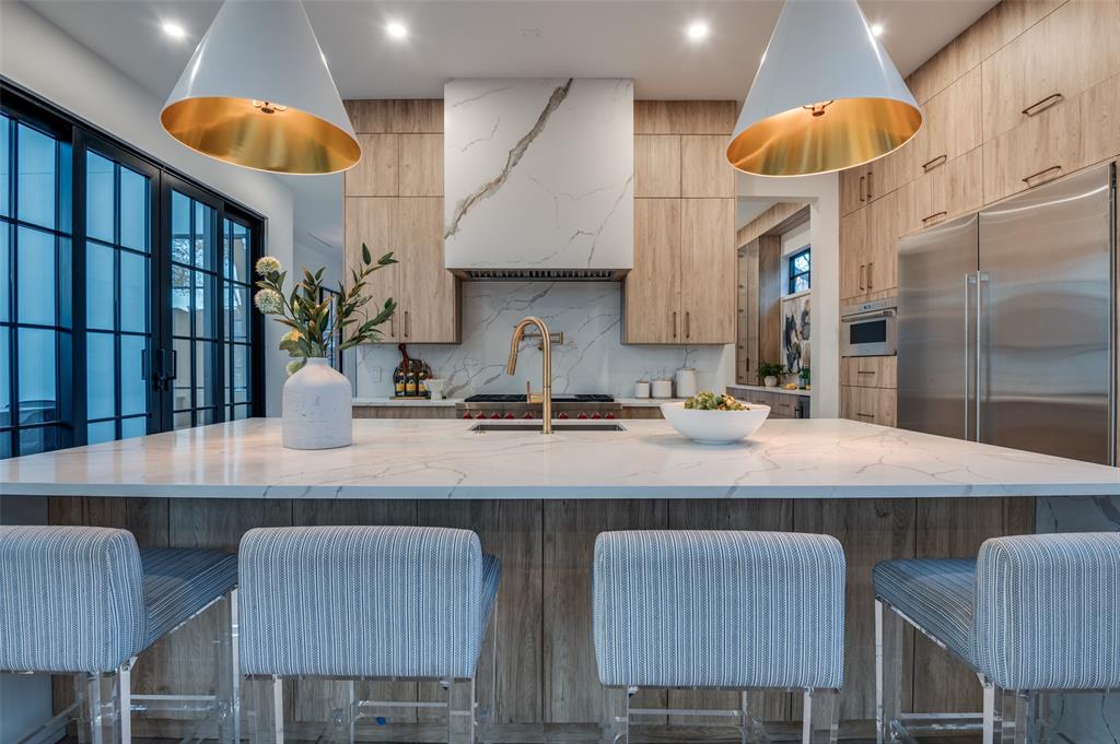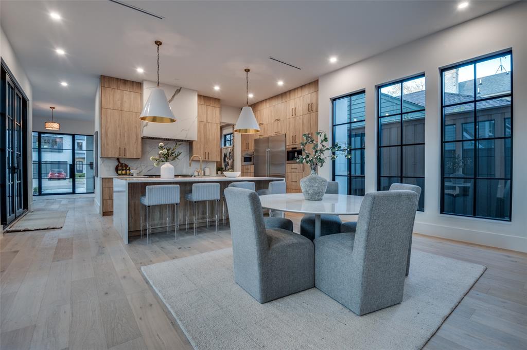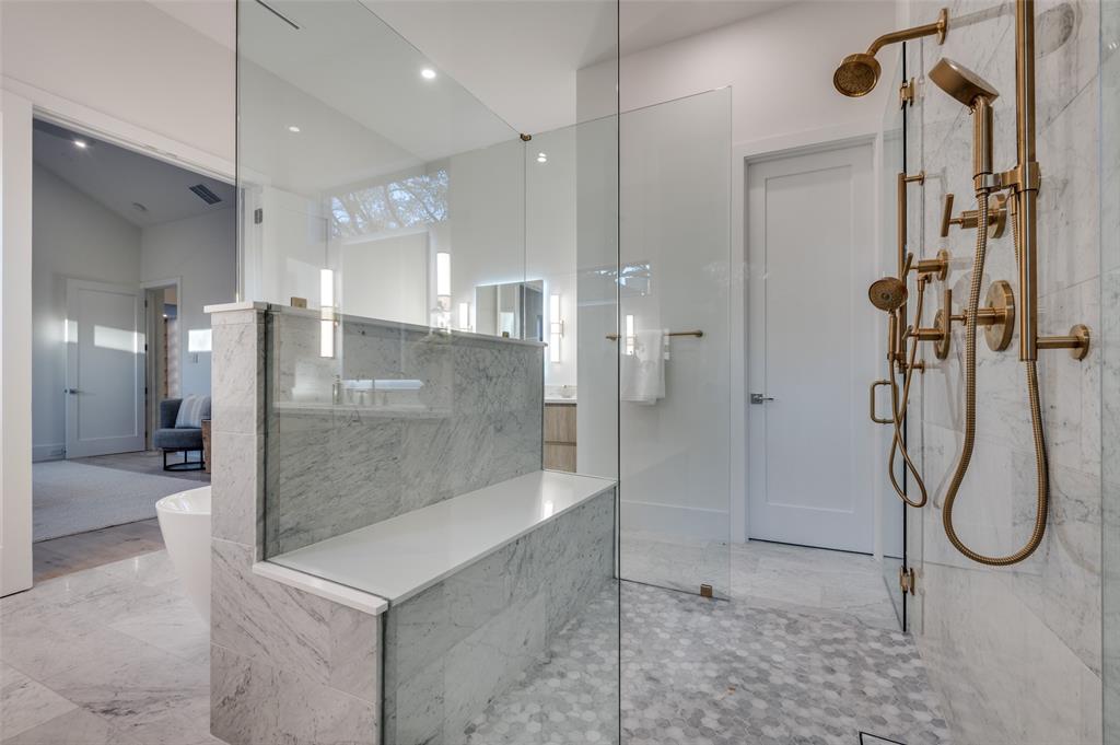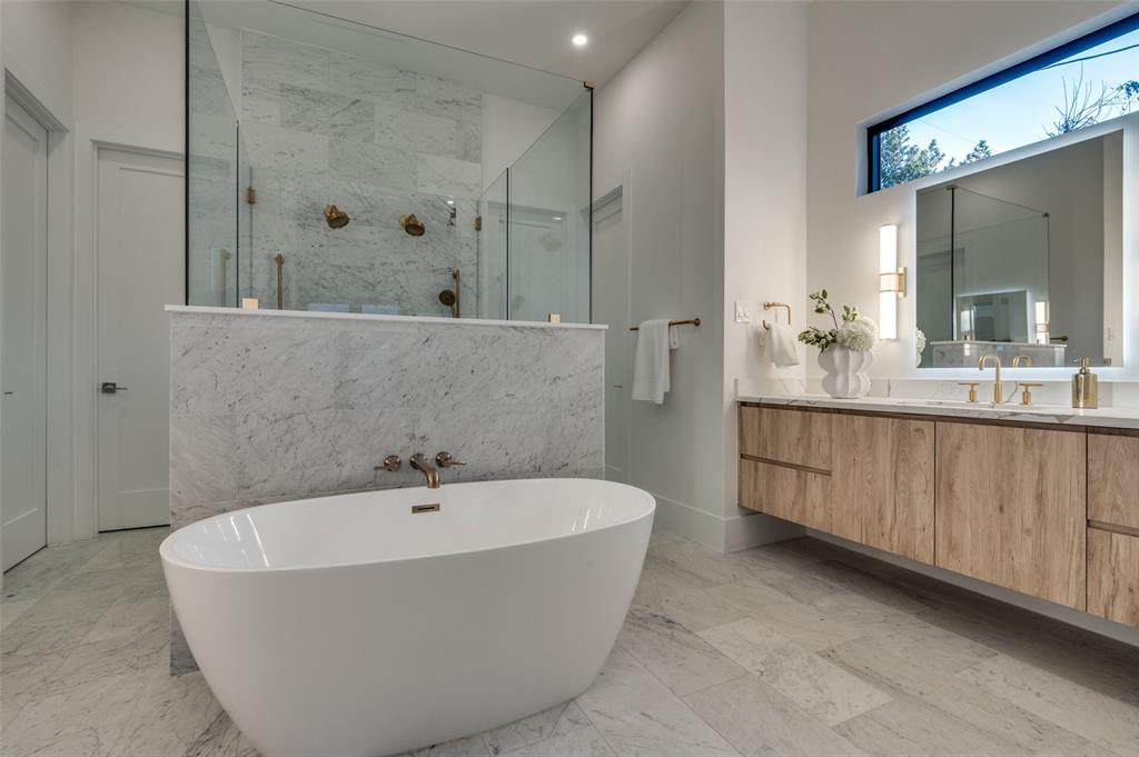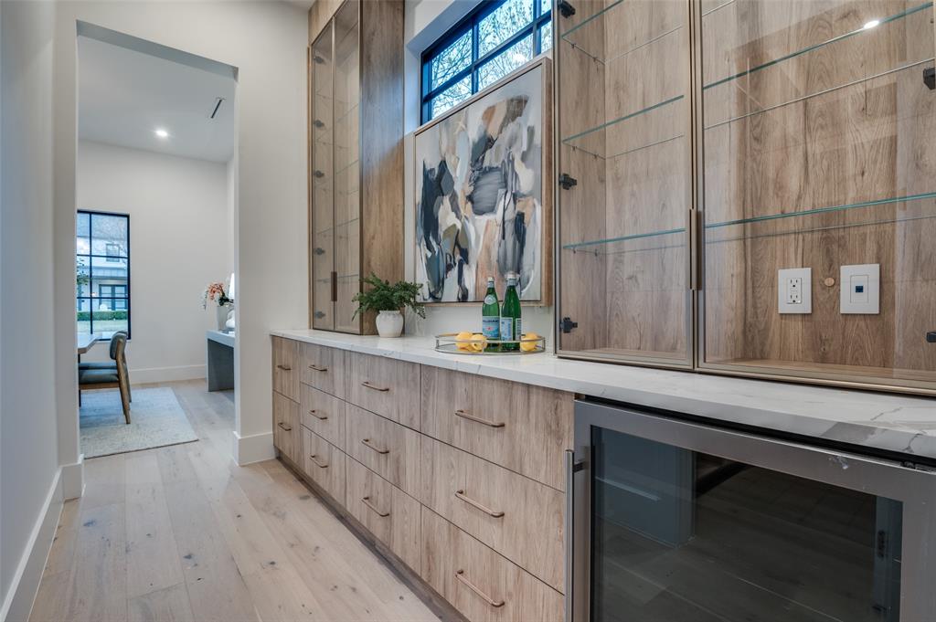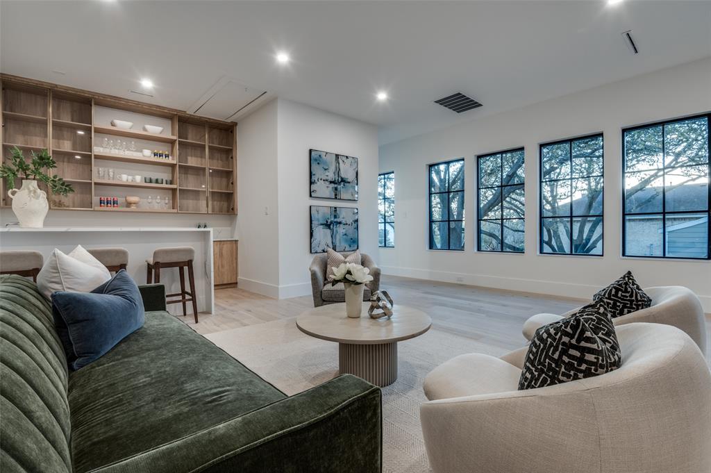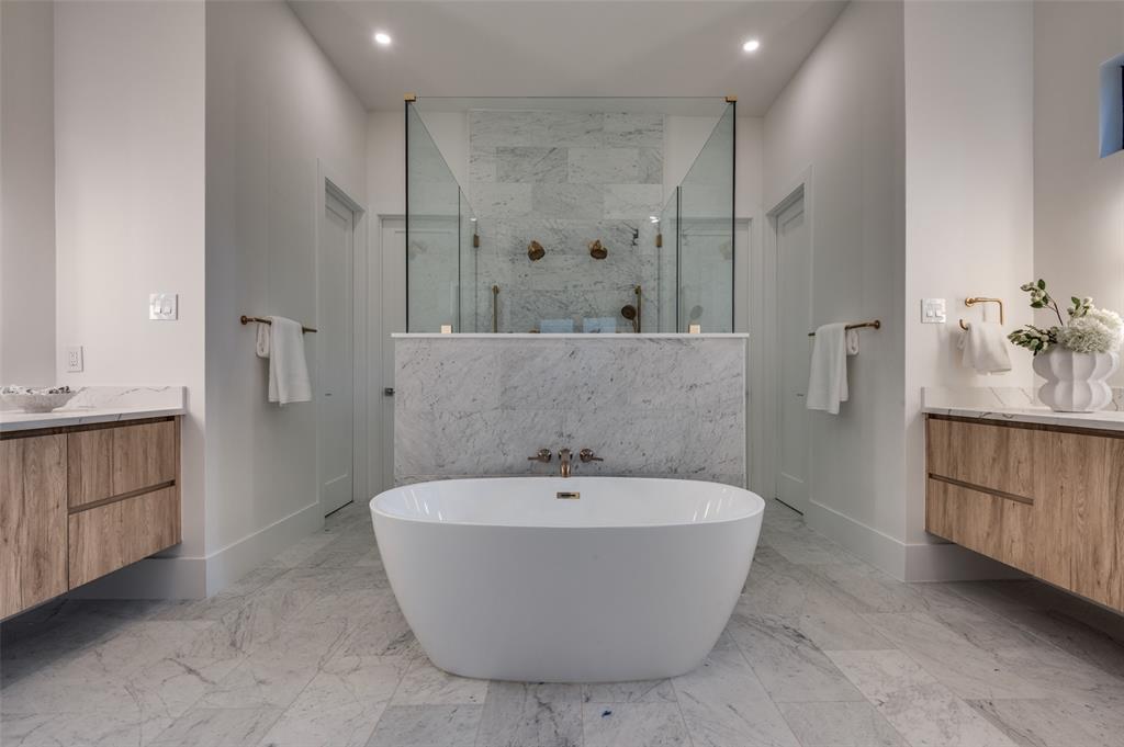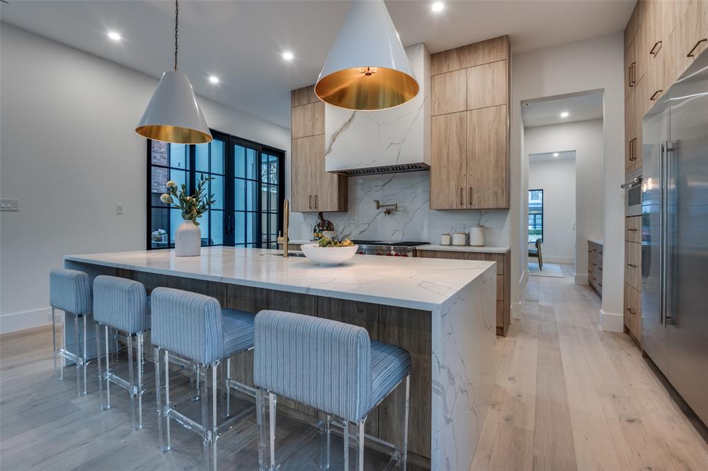 Built by Jain Homes, this 4-bedroom, 4-bathroom, 2-powder bath new construction, rear-load home in coveted Briarwood spans 4,866 SF on an interior lot surrounded by large, mature trees. The open floor plan, designed for entertaining, centers around the stunning and spacious chef's kitchen which seamlessly connects to the family room and overlooks the turfed yard. The home showcases a desired first floor primary suite with vaulted ceilings, backyard views and resort style bathroom with dual vanities, toilets and walk-in closets. Additionally, the first floor features a paneled study and elegant formal dining room with connected butler's pantry. Upstairs, the front two bedrooms contain ensuite baths and walk-in closets designed with custom closets systems, while the third bedroom could easily be a second primary or mother-in-law suite with its oversized walk-in closet and generous bathroom containing both a soaking tub and shower. The second floor also offers a generous game room complete with a wet bar and flex space perfect for a gym or second home office. This prime location in the heart of Briarwood near Bluffview Park is closely situated near Dallas' finest shopping and dining establishments.