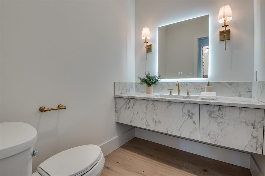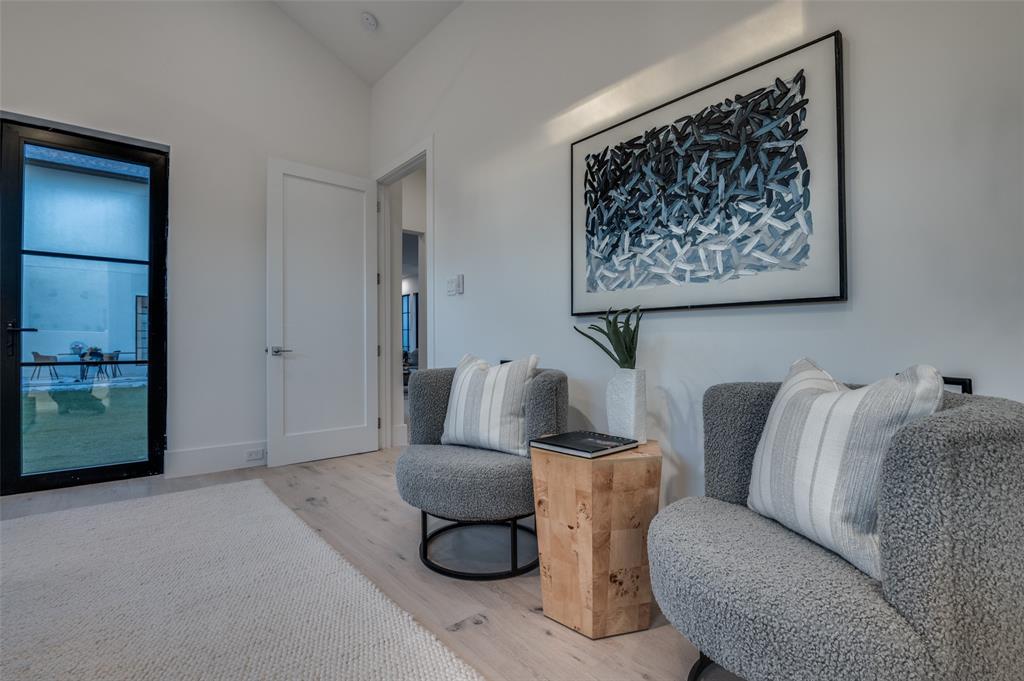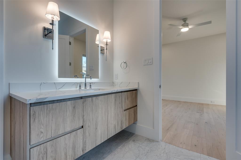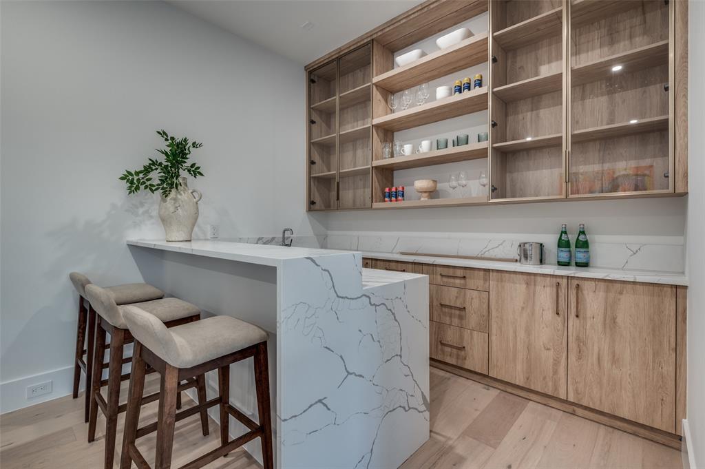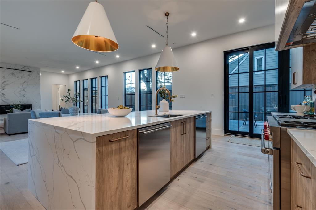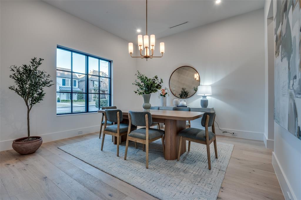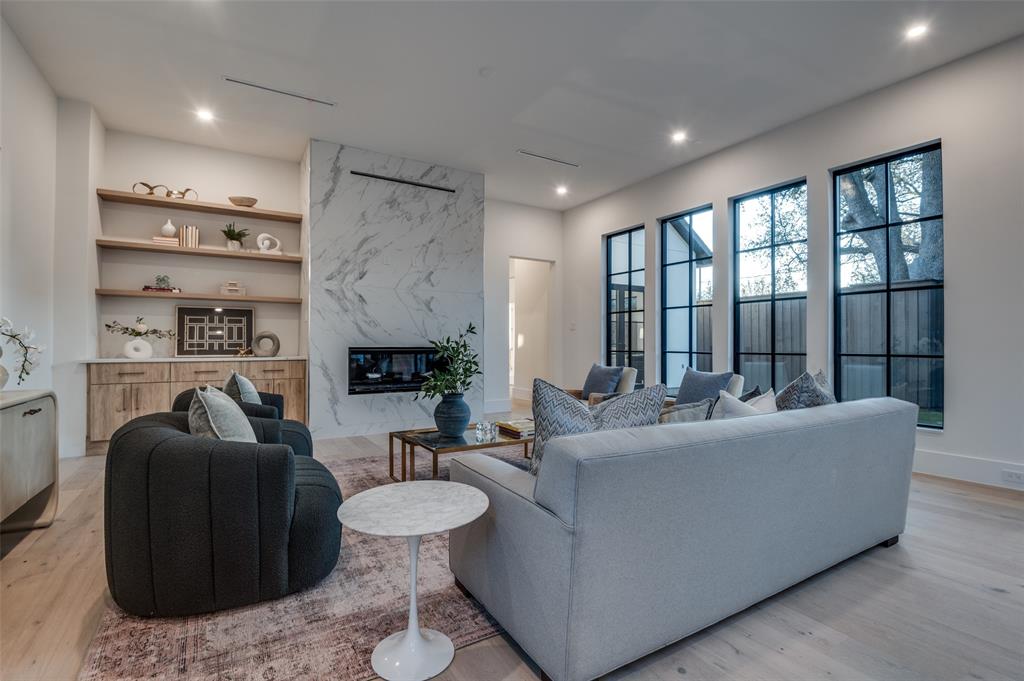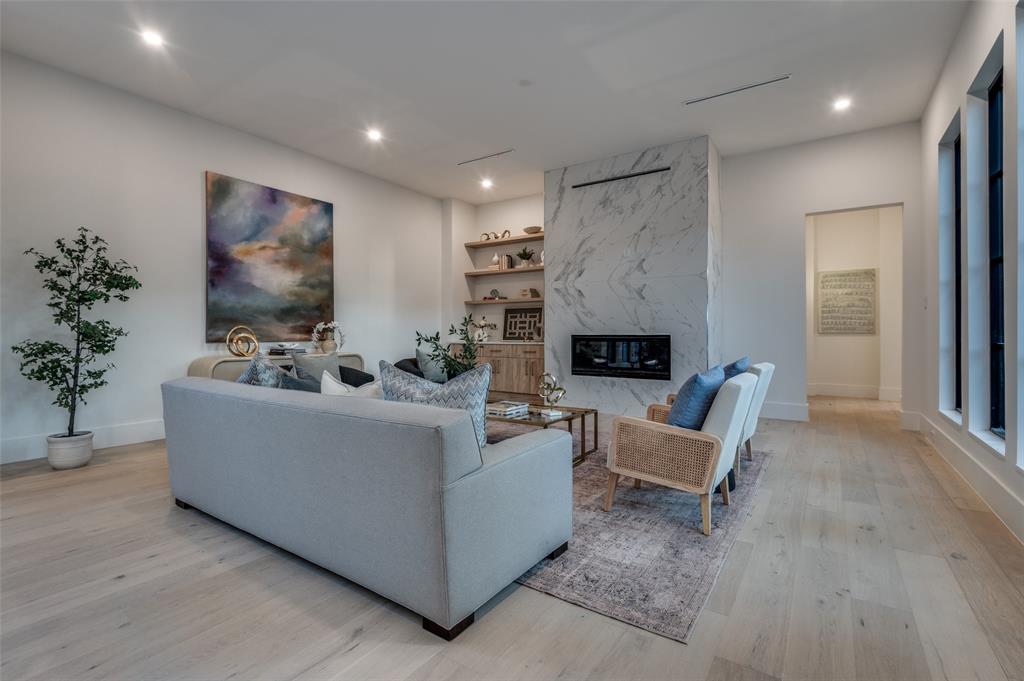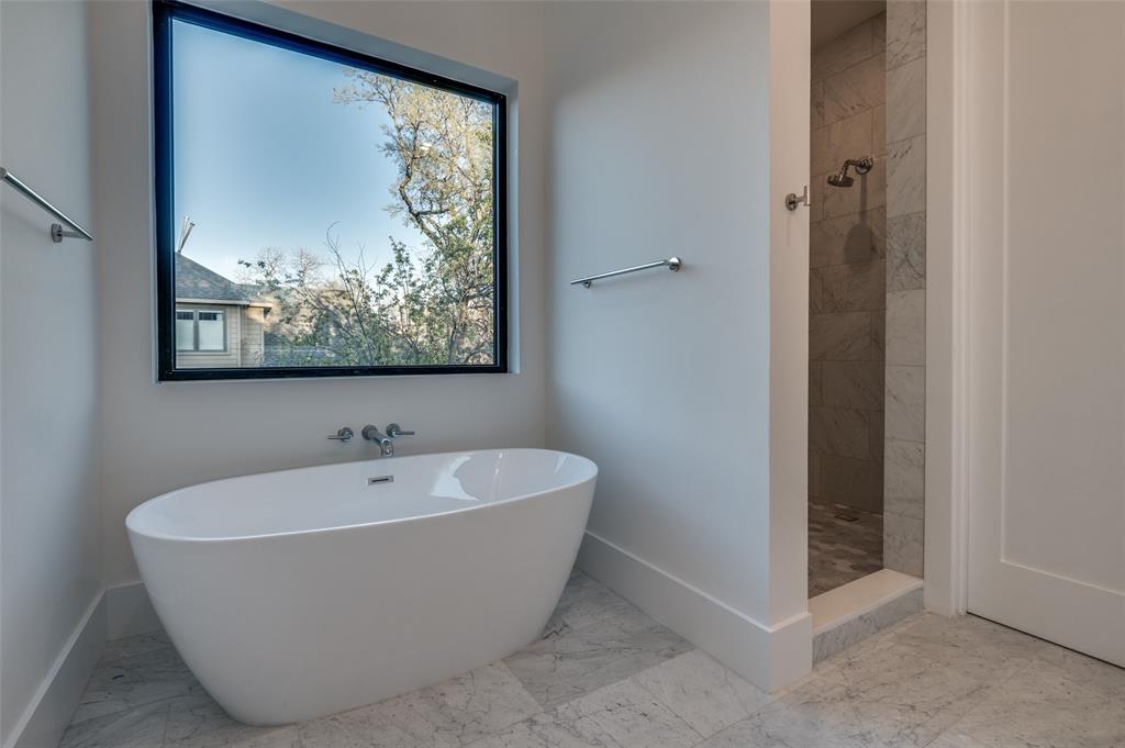 Built by Jain Homes, this 4-bedroom, 4-bathroom, 2-powder bath new construction, rear-load home in coveted Briarwood spans 4,866 SF on an interior lot surrounded by large, mature trees. The open floor plan, designed for entertaining, centers around the stunning and spacious chef's kitchen which seamlessly connects to the family room and overlooks the turfed yard. The home showcases a desired first floor primary suite with vaulted ceilings, backyard views and resort style bathroom with dual vanities, toilets and walk-in closets. Additionally, the first floor features a paneled study and elegant formal dining room with connected butler's pantry. Upstairs, the front two bedrooms contain ensuite baths and walk-in closets designed with custom closets systems, while the third bedroom could easily be a second primary or mother-in-law suite with its oversized walk-in closet and generous bathroom containing both a soaking tub and shower. The second floor also offers a generous game room complete with a wet bar and flex space perfect for a gym or second home office. This prime location in the heart of Briarwood near Bluffview Park is closely situated near Dallas' finest shopping and dining establishments.