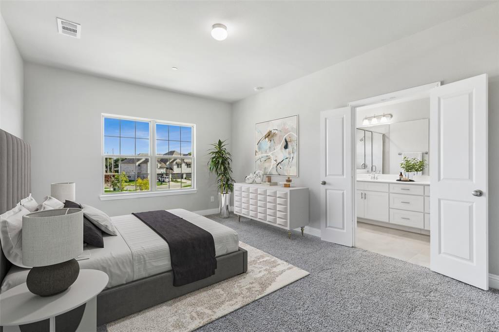 Sheldon II plan - Get rates as low as 2.99% (7.41% APR) on select homes until September 30! Villas of Middleton in Plano, TX offers centrally located town homes near UT Dallas, the DART station, and Legacy West. With private backyards and a future amenity center and pool, this community blends comfort with convenience. Visit our model home and discover why Villas of Middleton is the ideal place to call yours. Megatel Homes Sheldon II plan is beautiful high open ceiling plan with a full wrought iron railing staircase that is open to entrance. This striking entry will impress your guest when they visit. The open concept family room and dining are also very inviting. The kitchen is large with tons of cabinets with a great bar for gathering. The second floor has a large primary bedroom with a dream of a Walk-in Closet!! This North facing END UNIT home will not last long on the market. The END UNITS are on high demand and offer tons of natural light. Hurry and make your appointment today!