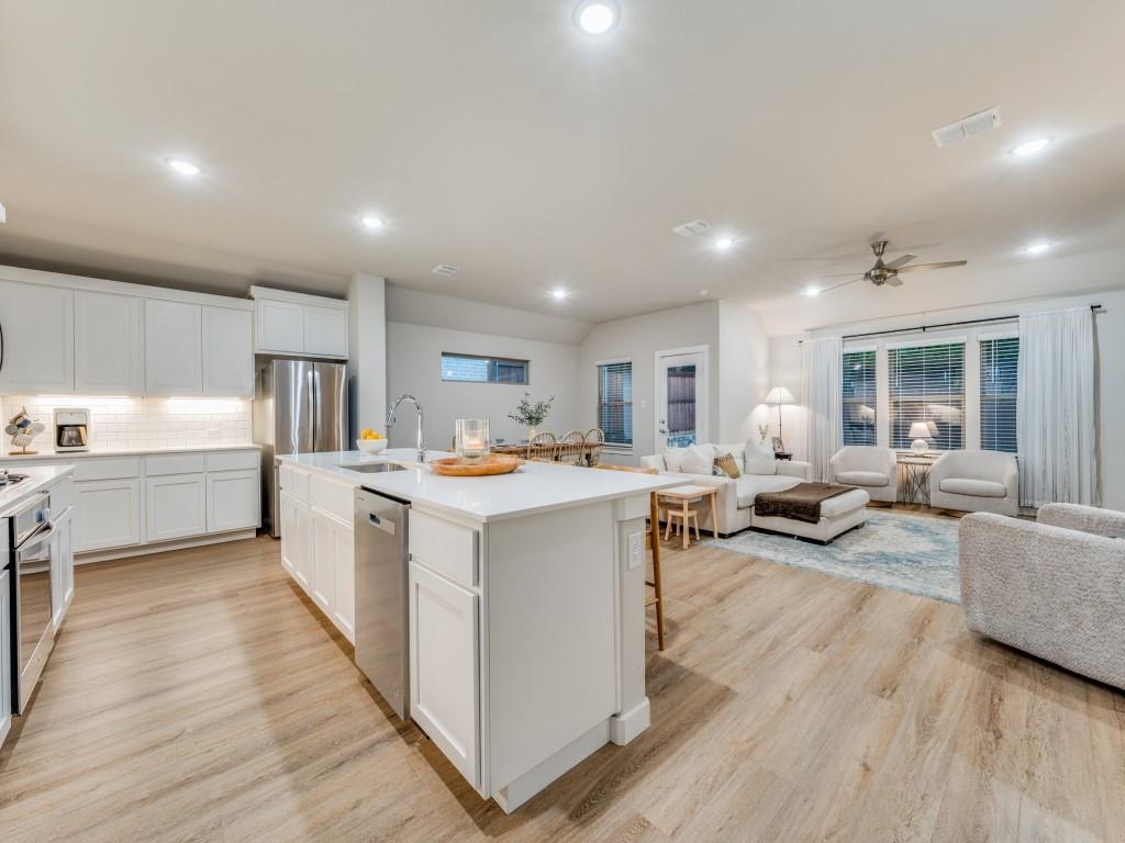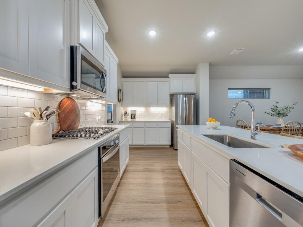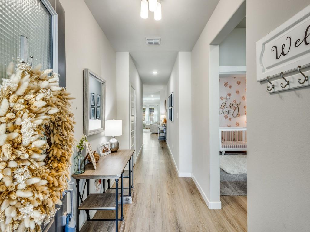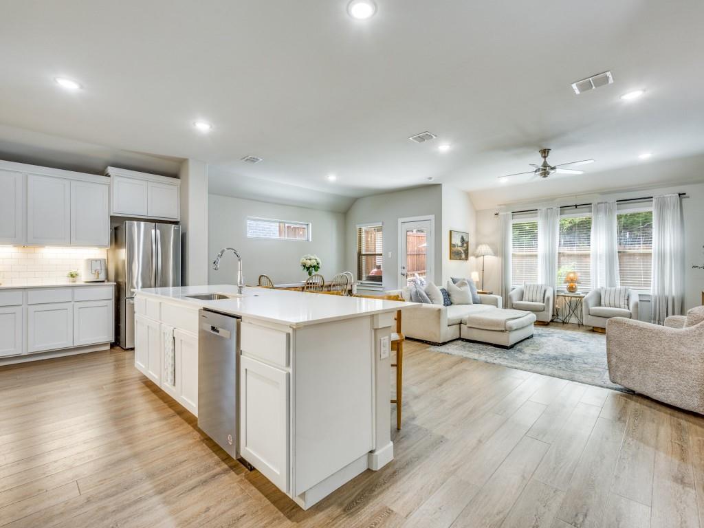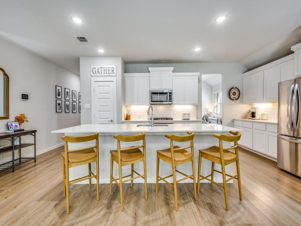 ~WANT A PRIVATE BACKYARD? GOT IT!! PRICE ADJUSTMENT~SELLER SAYS BRING ALL REASONALBE OFFER!! Premium Tree Line Lot $20K UPGRADE! WHY WAIT FOR NEW CONSTRUCTION WHEN YOU CAN HAVE IT ALL NOW!!! NO NEIGHBORS BEHIND YOU!! Discover this exquisitely designed Trophy Signature Home, set in the rapidly growing town of Melissa. This stunning single-story residence boasts an attractive brick and stone façade. Inside, the open kitchen seamlessly integrates with the great room, which is highlighted by a centerpiece fireplace and elegant vinyl-plank flooring. The gourmet kitchen features pristine white cabinetry, a stylish subway tile backsplash, quartz countertops, and stainless steel appliances, including a gas cooktop. The open-concept design, complemented by an adaptable office space, offers versatile living arrangements. The living room flows naturally into the chef's kitchen, equipped with top-tier appliances, quartz countertops, a central island, and a walk-in pantry. No detail has been overlooked, ensuring both sophistication and practicality. The primary suite serves as a private sanctuary, offering a spacious retreat complete with a luxurious bathroom that includes double vanities and a walk-in closet. Secondary bedrooms are generously proportioned, providing ample space for comfort. The inviting backyard, backing onto a private treed field, offers a peaceful haven to relax and unwind. Washer, dryer, and refrigerator are included. All wall paper is removable.