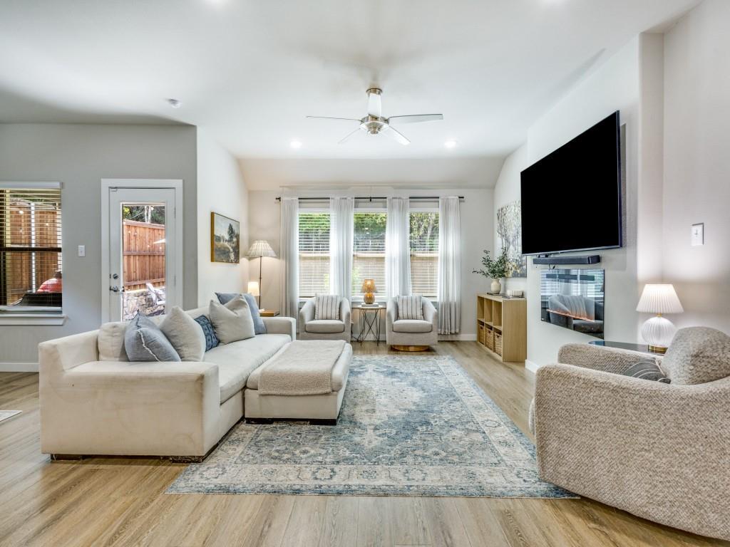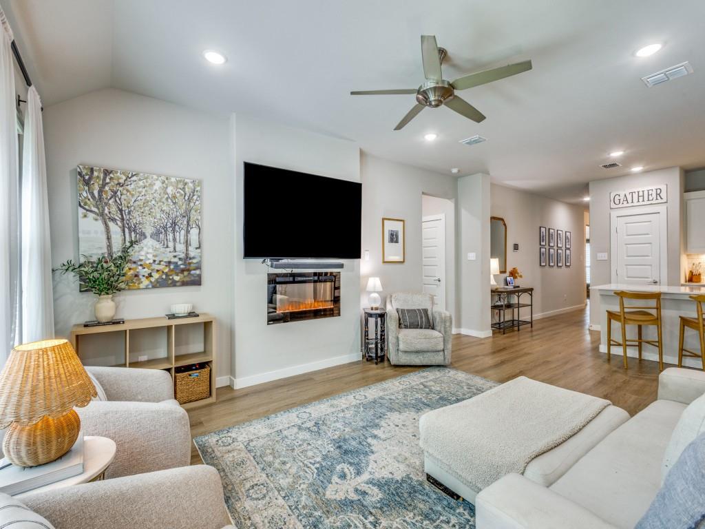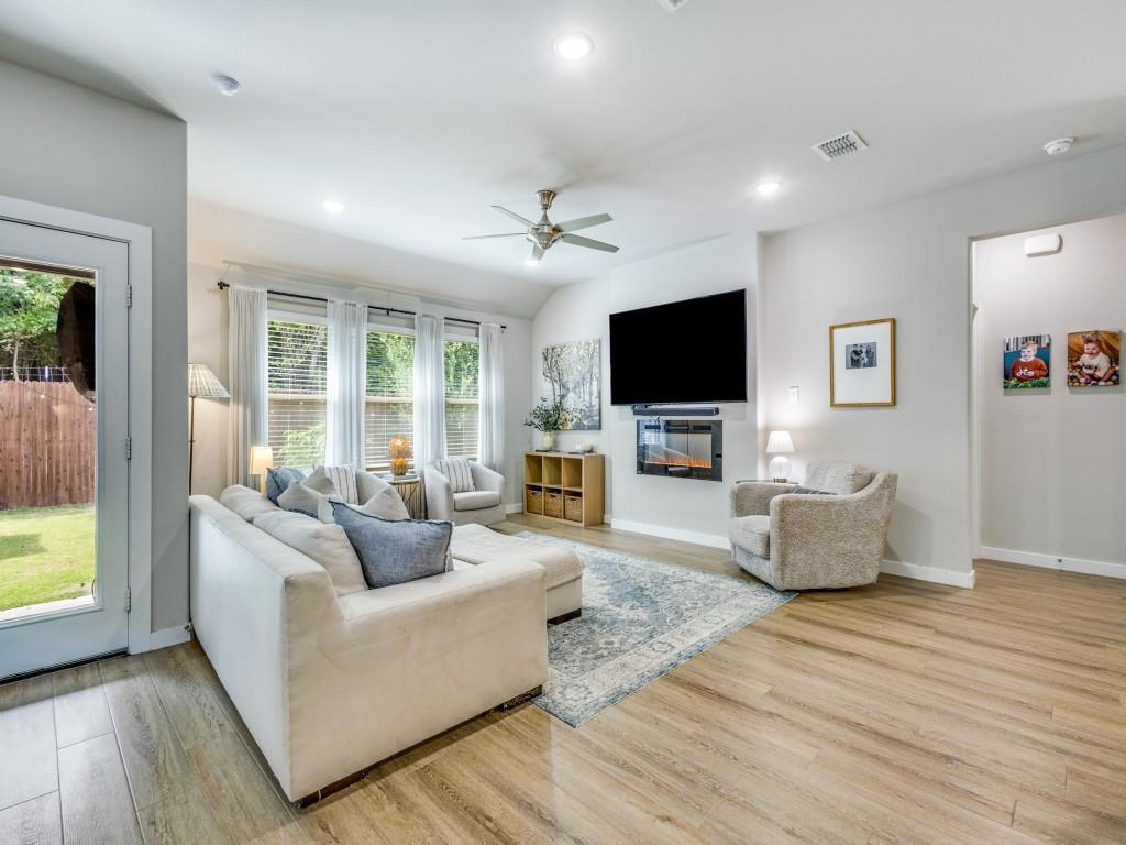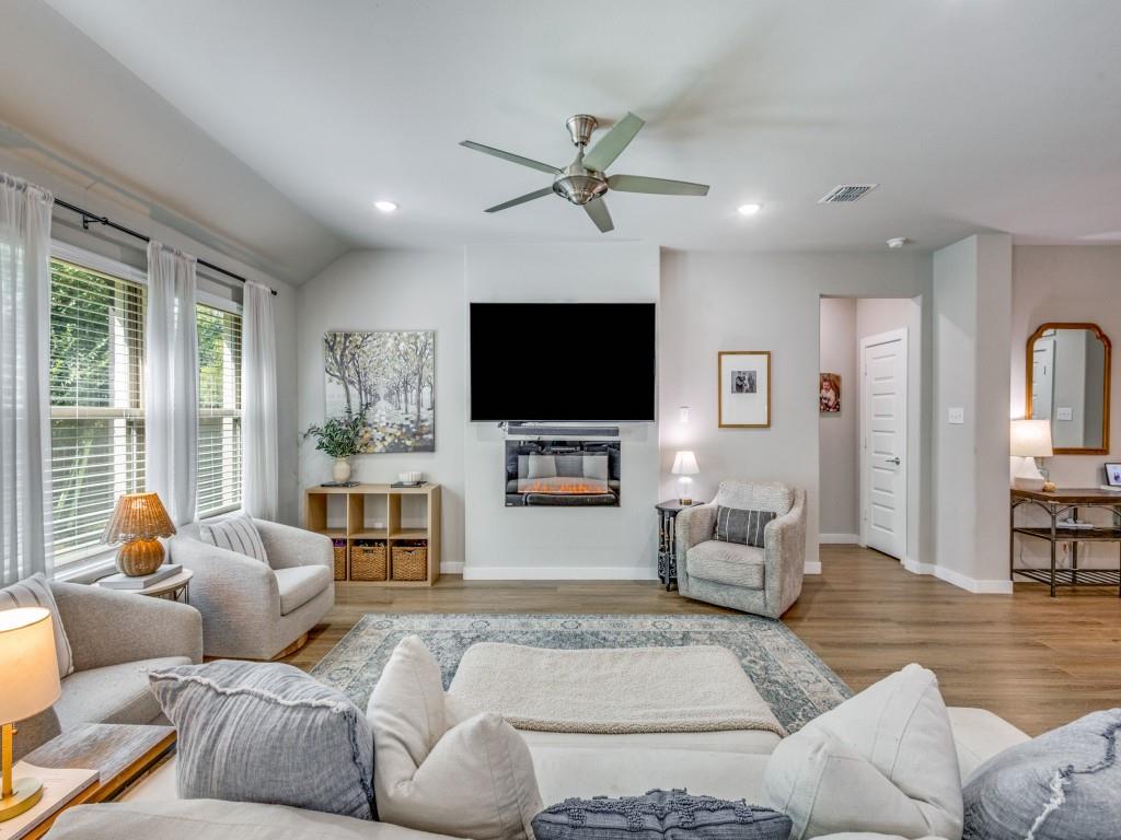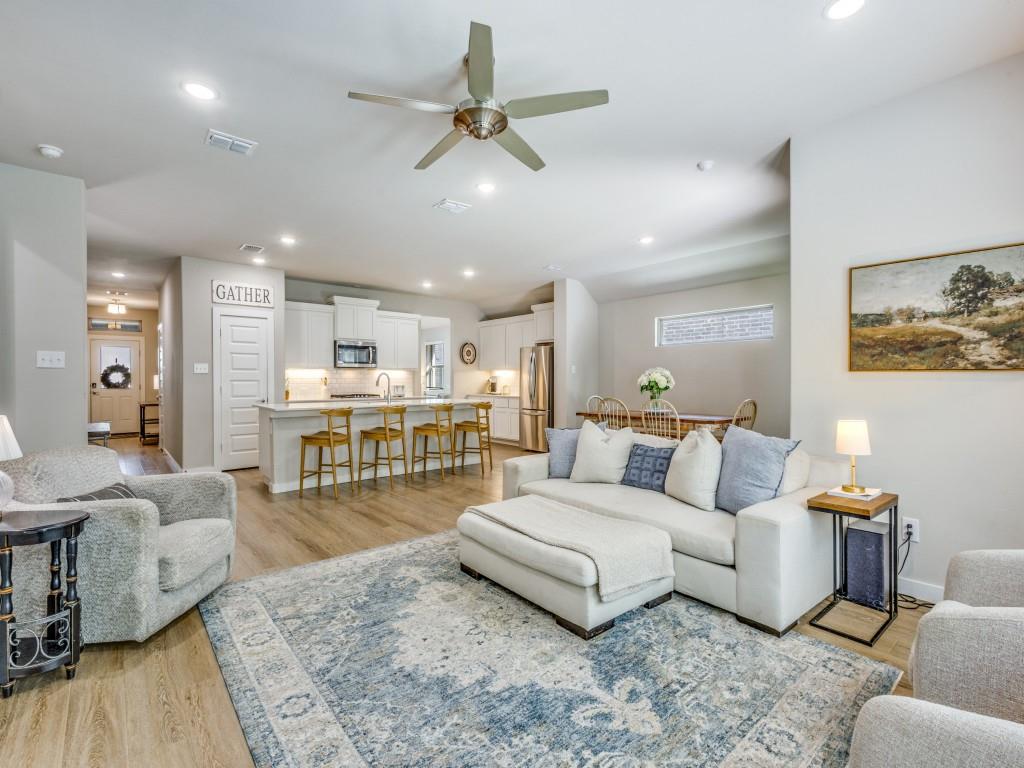 ~WANT A PRIVATE BACKYARD? GOT IT!! PRICE ADJUSTMENT~SELLER SAYS BRING ALL REASONALBE OFFER!! Premium Tree Line Lot $20K UPGRADE! WHY WAIT FOR NEW CONSTRUCTION WHEN YOU CAN HAVE IT ALL NOW!!! NO NEIGHBORS BEHIND YOU!! Discover this exquisitely designed Trophy Signature Home, set in the rapidly growing town of Melissa. This stunning single-story residence boasts an attractive brick and stone façade. Inside, the open kitchen seamlessly integrates with the great room, which is highlighted by a centerpiece fireplace and elegant vinyl-plank flooring. The gourmet kitchen features pristine white cabinetry, a stylish subway tile backsplash, quartz countertops, and stainless steel appliances, including a gas cooktop. The open-concept design, complemented by an adaptable office space, offers versatile living arrangements. The living room flows naturally into the chef's kitchen, equipped with top-tier appliances, quartz countertops, a central island, and a walk-in pantry. No detail has been overlooked, ensuring both sophistication and practicality. The primary suite serves as a private sanctuary, offering a spacious retreat complete with a luxurious bathroom that includes double vanities and a walk-in closet. Secondary bedrooms are generously proportioned, providing ample space for comfort. The inviting backyard, backing onto a private treed field, offers a peaceful haven to relax and unwind. Washer, dryer, and refrigerator are included. All wall paper is removable.
