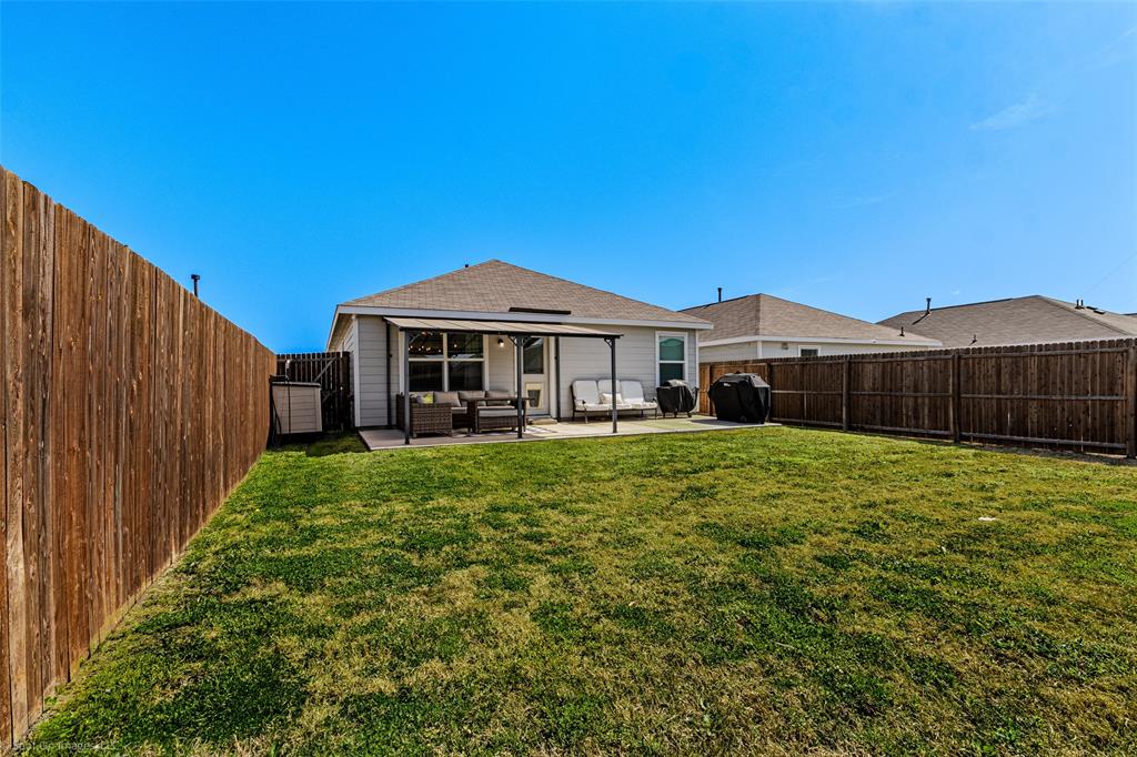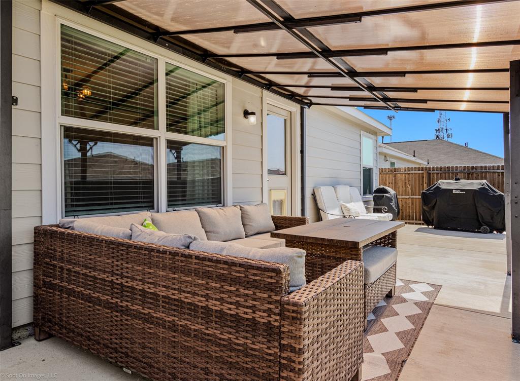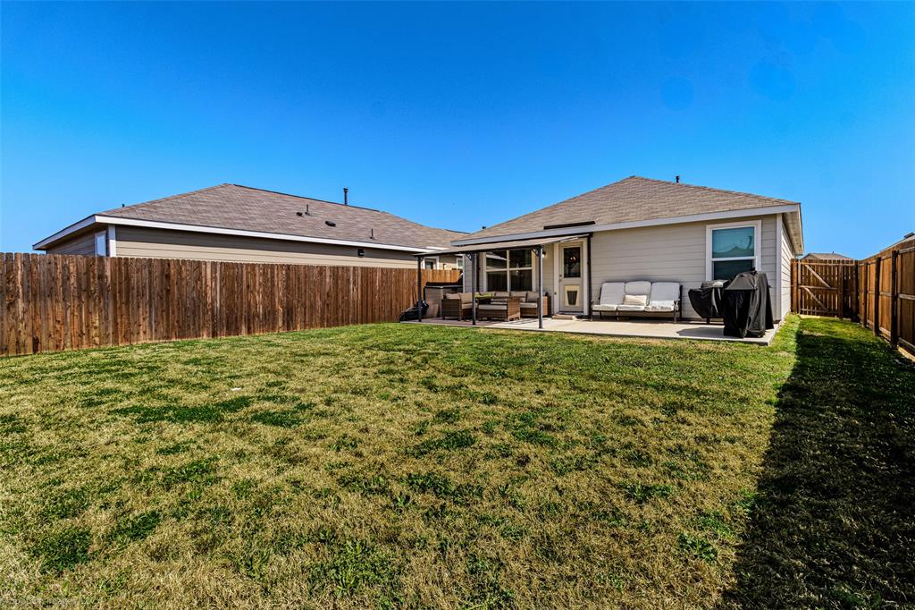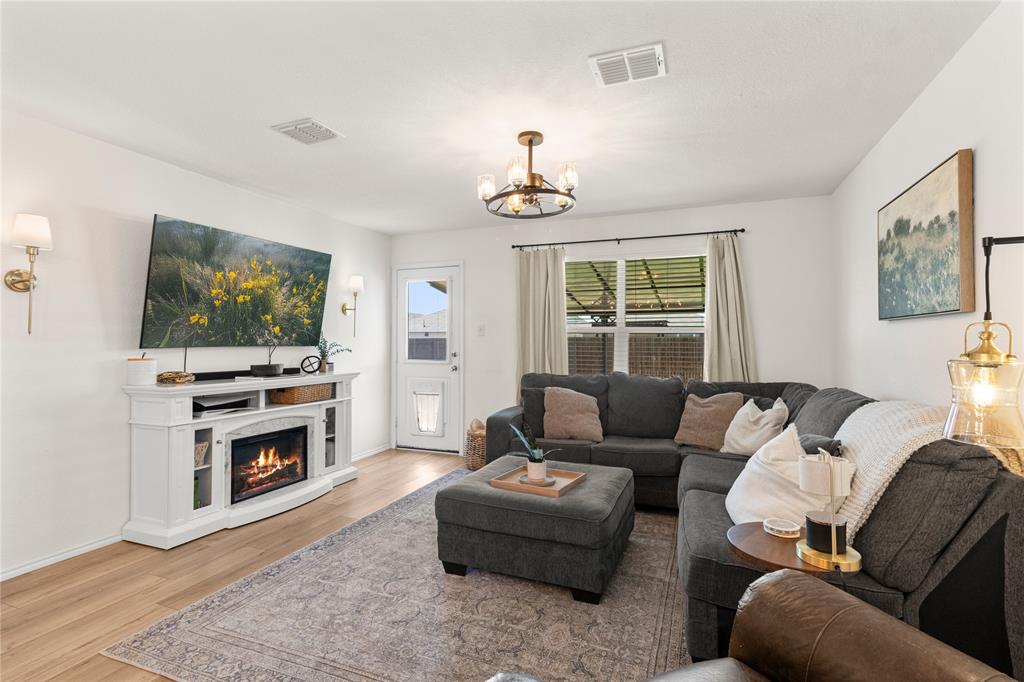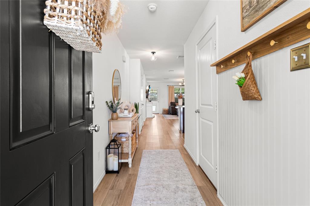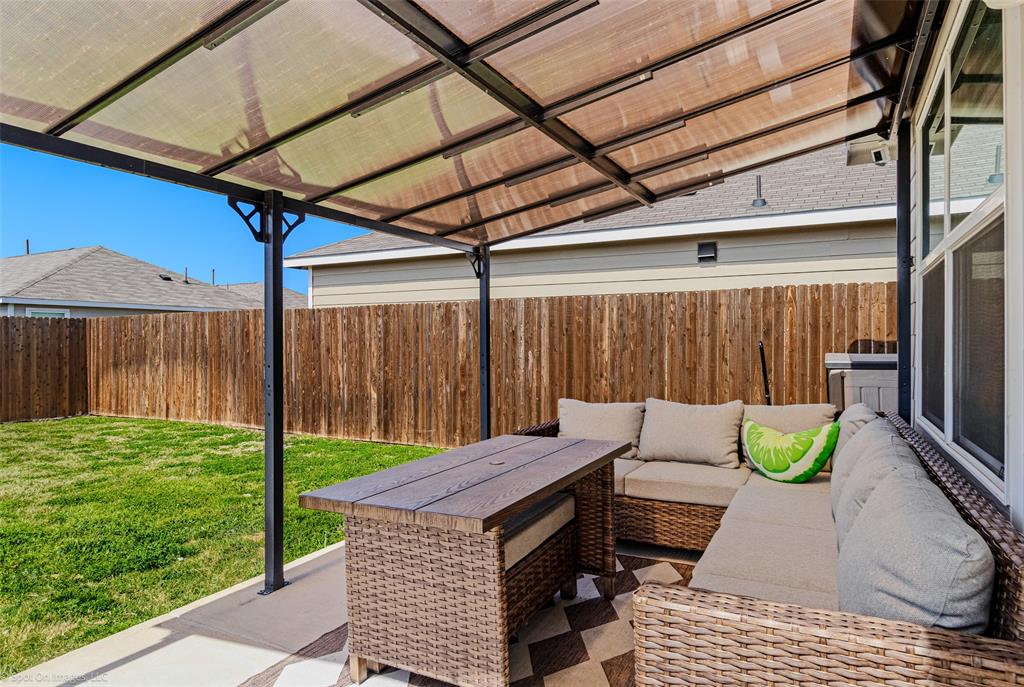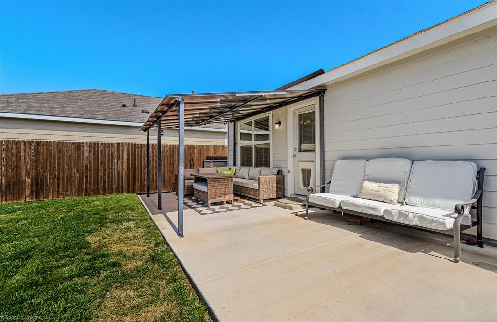 Nestled on a peaceful cul-de-sac adjacent to a greenbelt, this beautifully enhanced 3-bedroom, 2-bath home in Forney offers a perfect blend of style, comfort, and functionality. Thoughtfully designed to cater to modern living, this residence boasts an array of impressive features that truly set it apart. Step inside to discover a harmonious flow of beautiful updates that enhance every corner of this home. The luxury vinyl plank flooring spans the living spaces, offering durability and style. Quartz countertops elevate the kitchen's aesthetic, paired with high end light fixtures that illuminate the space with elegance. The living area showcases a decorative electric fireplace with a custom mantel, creating a warm and inviting atmosphere perfect for relaxation or entertaining. The master suite features an enlarged closet that provides ample storage and a tastefully renovated tiled shower, offering a spa like experience at home. A versatile bedroom conveniently doubles as a home office, complete with built-in bookshelves and desk, making it ideal for remote work or study. Outdoor living is equally inviting with an extended back patio topped with a pergola, perfect for enjoying morning coffee or dinner in a serene setting. The property's exterior, located on a cul-de-sac, ensures both privacy and a sense of connection with nature, thanks to its proximity to a peaceful greenbelt. The garage floor has been coated with epoxy coating for lasting durability.