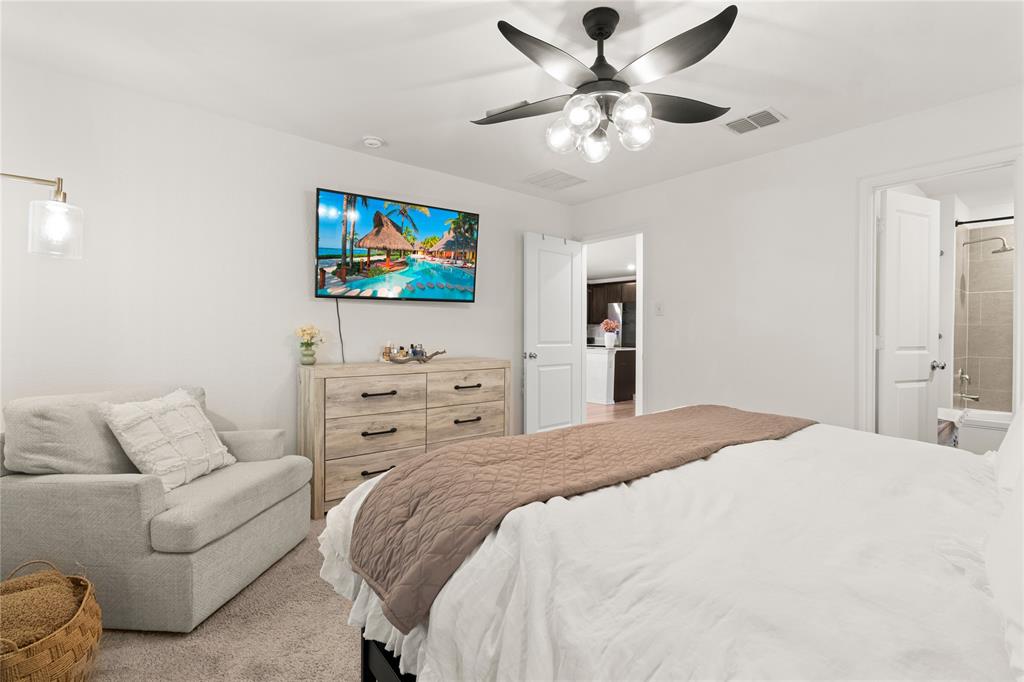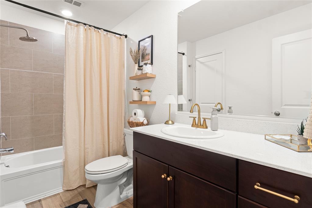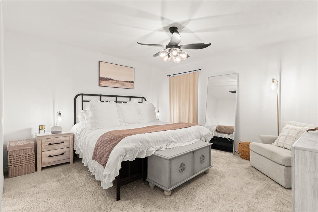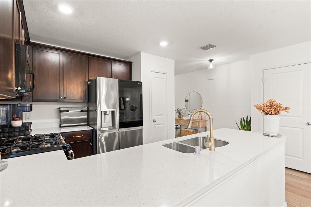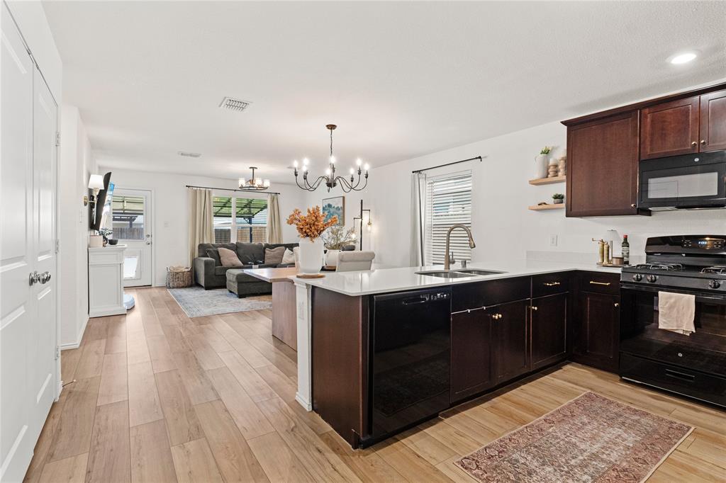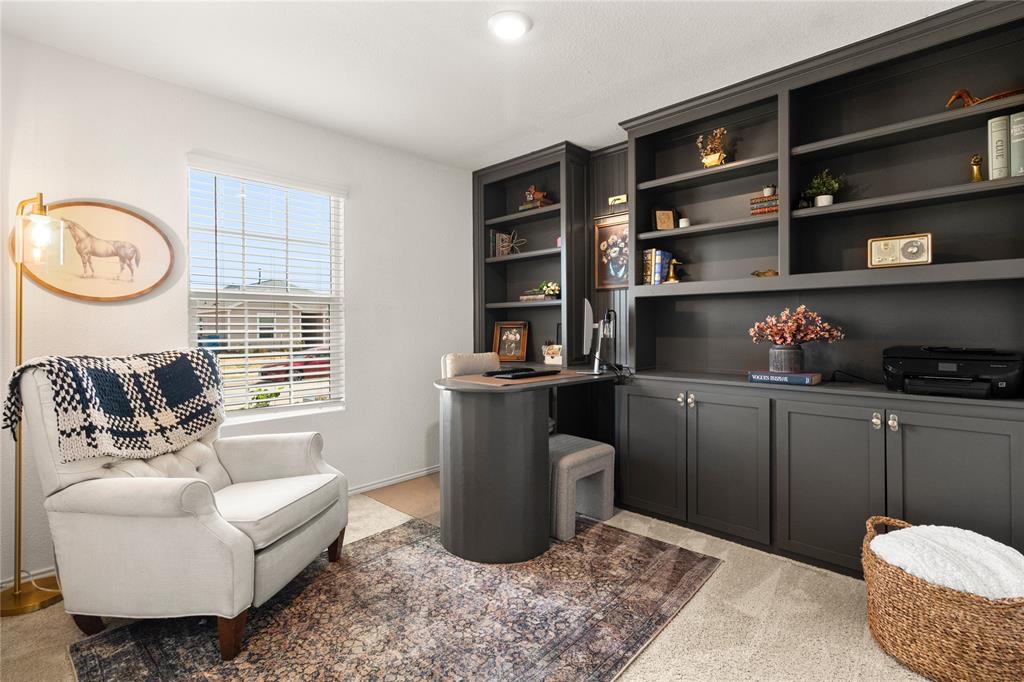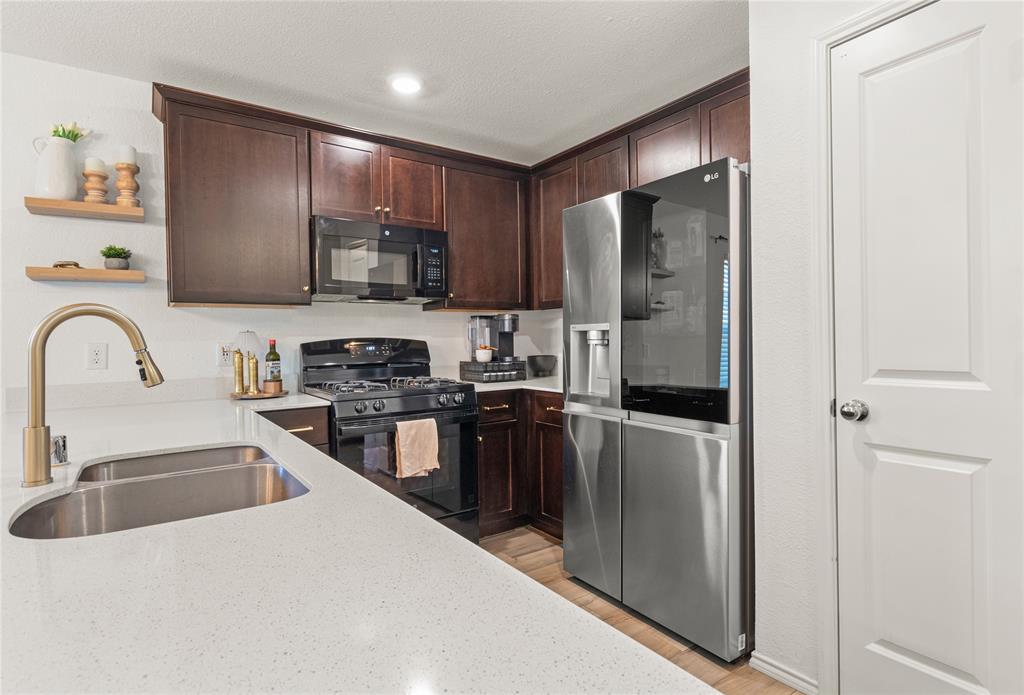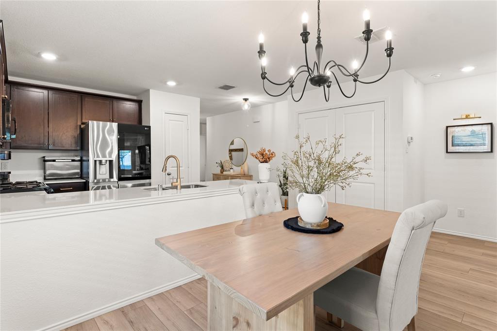 Nestled on a peaceful cul-de-sac adjacent to a greenbelt, this beautifully enhanced 3-bedroom, 2-bath home in Forney offers a perfect blend of style, comfort, and functionality. Thoughtfully designed to cater to modern living, this residence boasts an array of impressive features that truly set it apart. Step inside to discover a harmonious flow of beautiful updates that enhance every corner of this home. The luxury vinyl plank flooring spans the living spaces, offering durability and style. Quartz countertops elevate the kitchen's aesthetic, paired with high end light fixtures that illuminate the space with elegance. The living area showcases a decorative electric fireplace with a custom mantel, creating a warm and inviting atmosphere perfect for relaxation or entertaining. The master suite features an enlarged closet that provides ample storage and a tastefully renovated tiled shower, offering a spa like experience at home. A versatile bedroom conveniently doubles as a home office, complete with built-in bookshelves and desk, making it ideal for remote work or study. Outdoor living is equally inviting with an extended back patio topped with a pergola, perfect for enjoying morning coffee or dinner in a serene setting. The property's exterior, located on a cul-de-sac, ensures both privacy and a sense of connection with nature, thanks to its proximity to a peaceful greenbelt. The garage floor has been coated with epoxy coating for lasting durability.