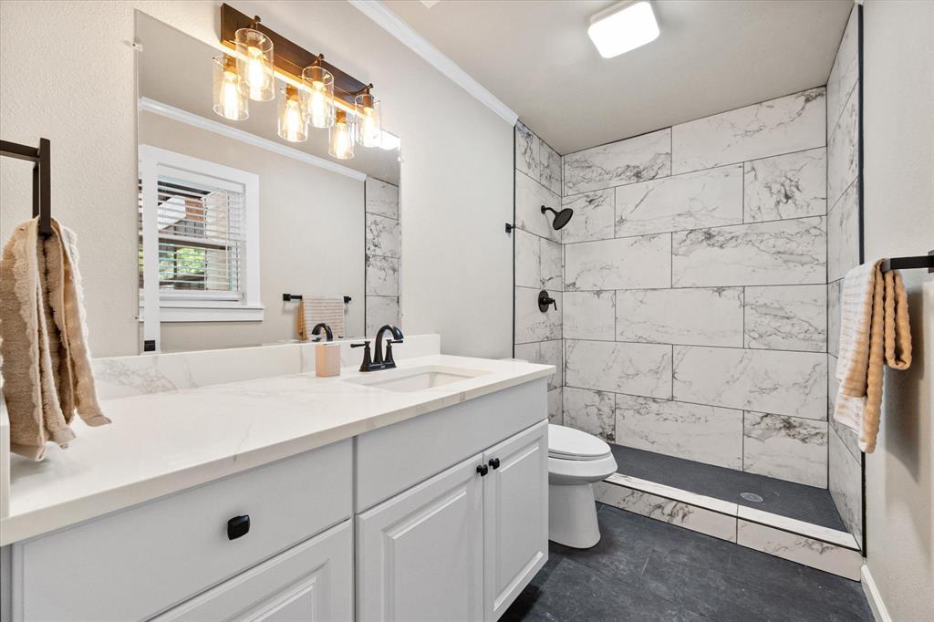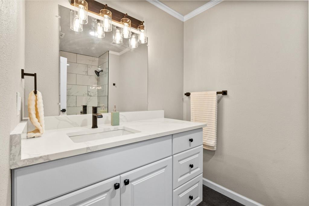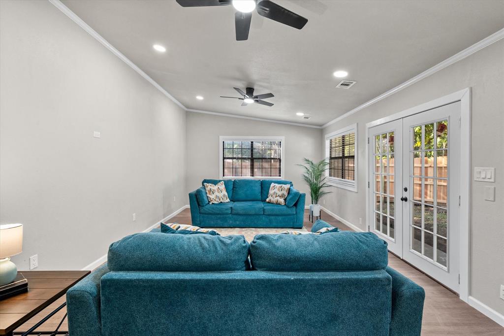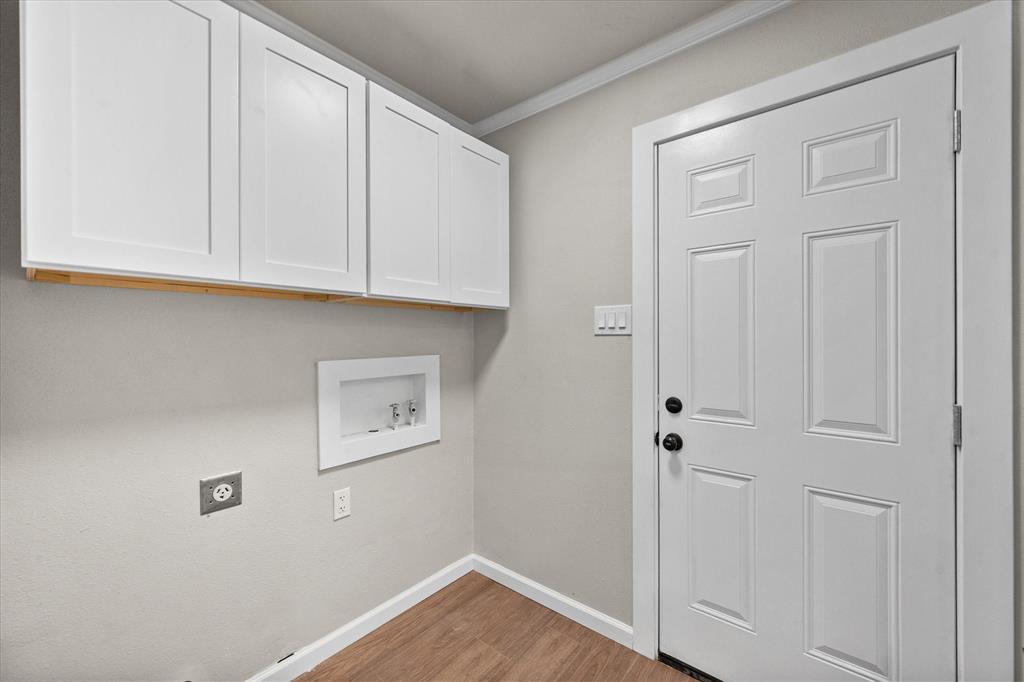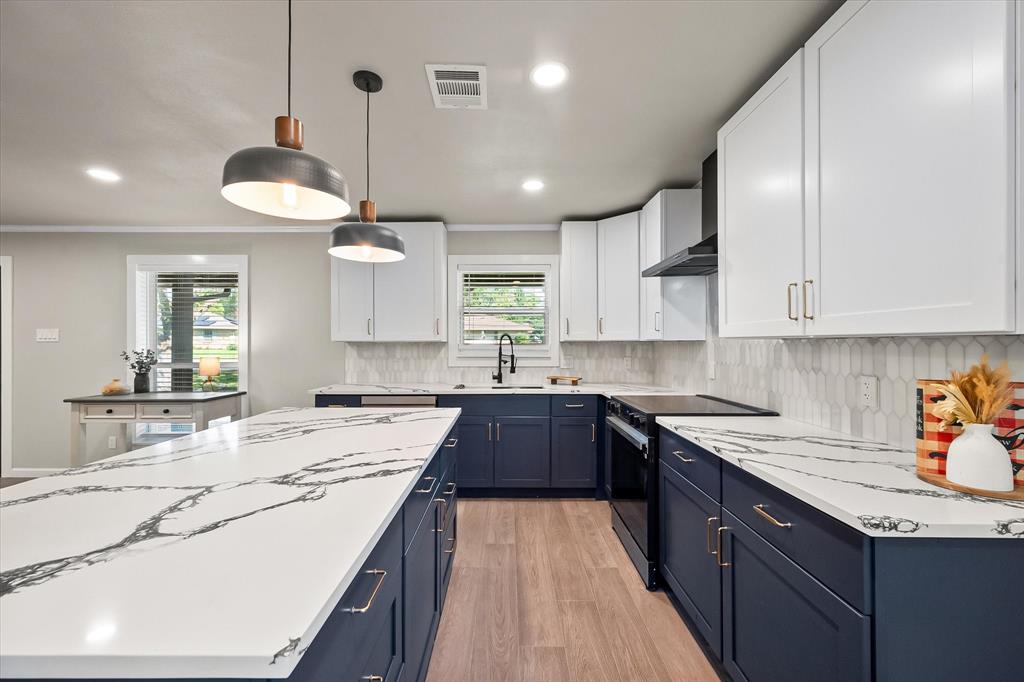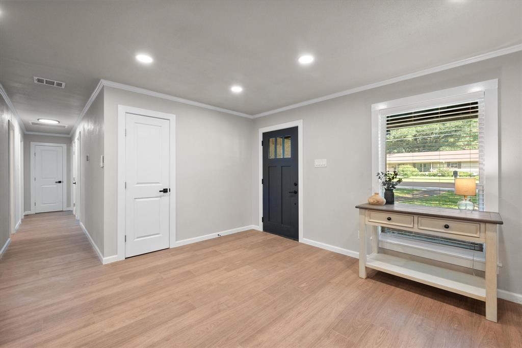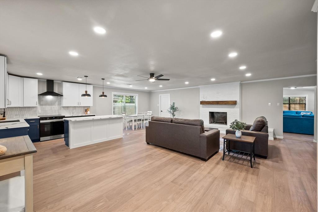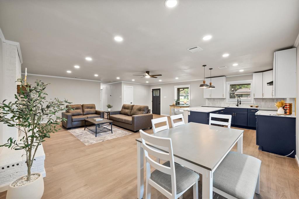 The layout is open and inviting, with updated finishes and plenty of natural light throughout. The kitchen connects to a standard laundry room, which includes access to a walk-in pantry for added storage and convenience.