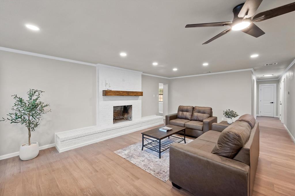 This updated home sits on a roomy corner lot in a quiet, established neighborhood and feels fresh, cozy, and move-in ready. Inside, you'll find two comfortable living areas—one with a wood-burning fireplace that’s perfect for relaxing, and another that works great as a den, home office, formal dining area, or whatever fits your needs.