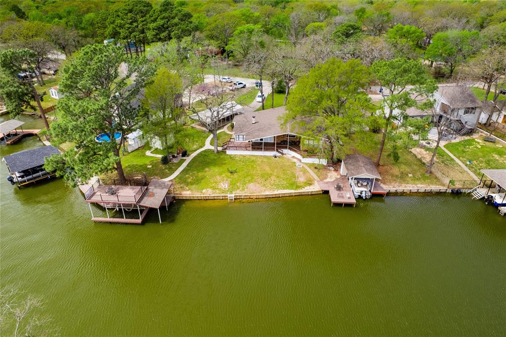 PRICED TO SELL! Sip your morning coffee from the large open lakeside deck of this 5-bedroom, 2-bath lake home. With over 189 feet of water frontage, two boat houses, and breathtaking open water views, this property is a lake lover’s dream. Located on a protected channel offering more protection while being just moments from the action. The spacious .32-acre lot provides ample room for outdoor entertaining, and the 2-car garage with epoxy floors can even be converted into additional sleeping or living space. There is an additional dock to fish or to simply relax. Short-term rental friendly, this home offers endless possibilities whether as a full time residence, vacation retreat, or income-producing property. Conveniently located near shopping, dining, and just one hour from Dallas! Don't miss this incredible opportunity! Many recent upgrades including a new roof in 2023, seawall work done in 2024 and recent repairs to boathouse and dock.