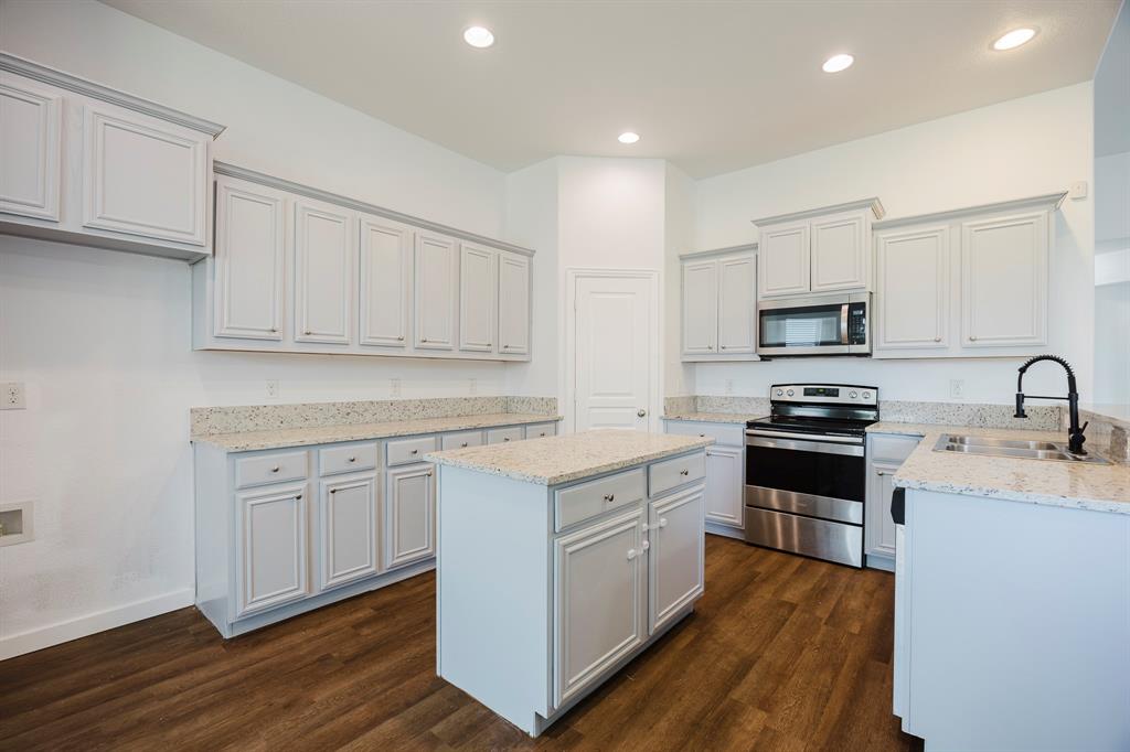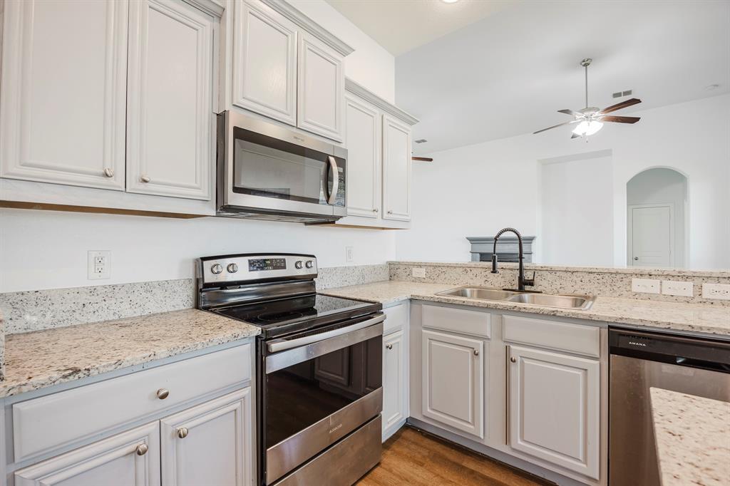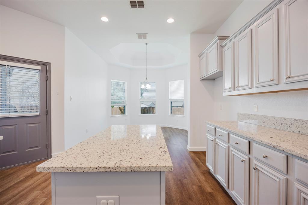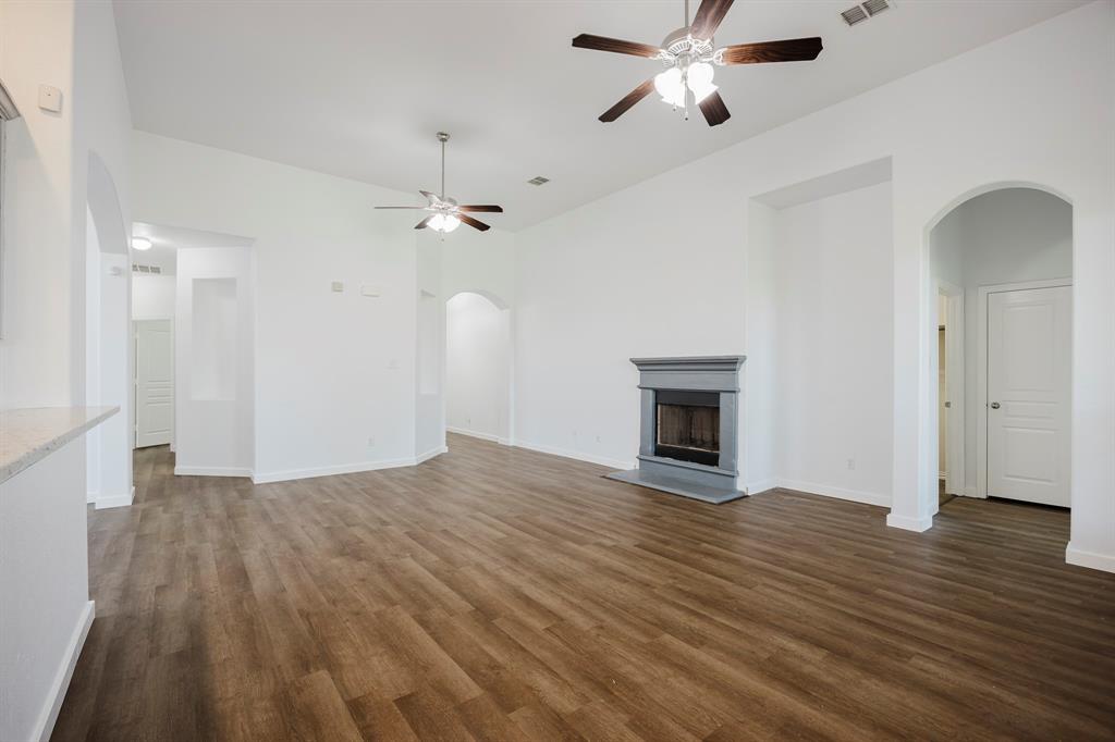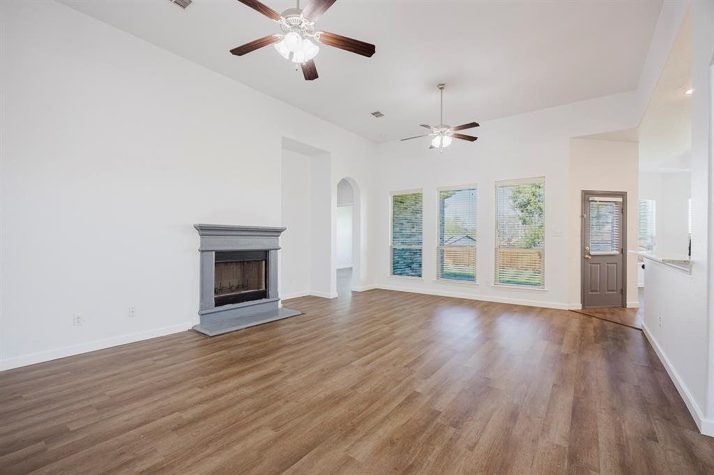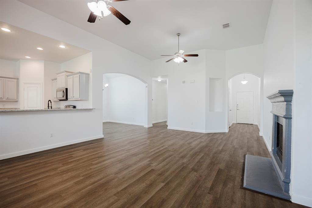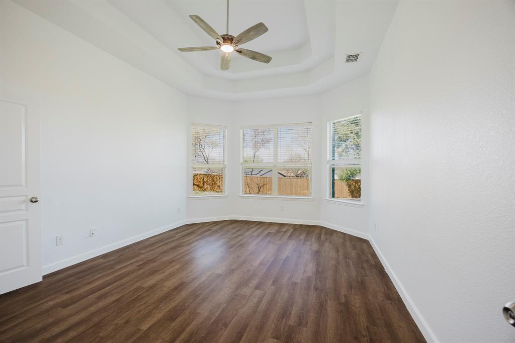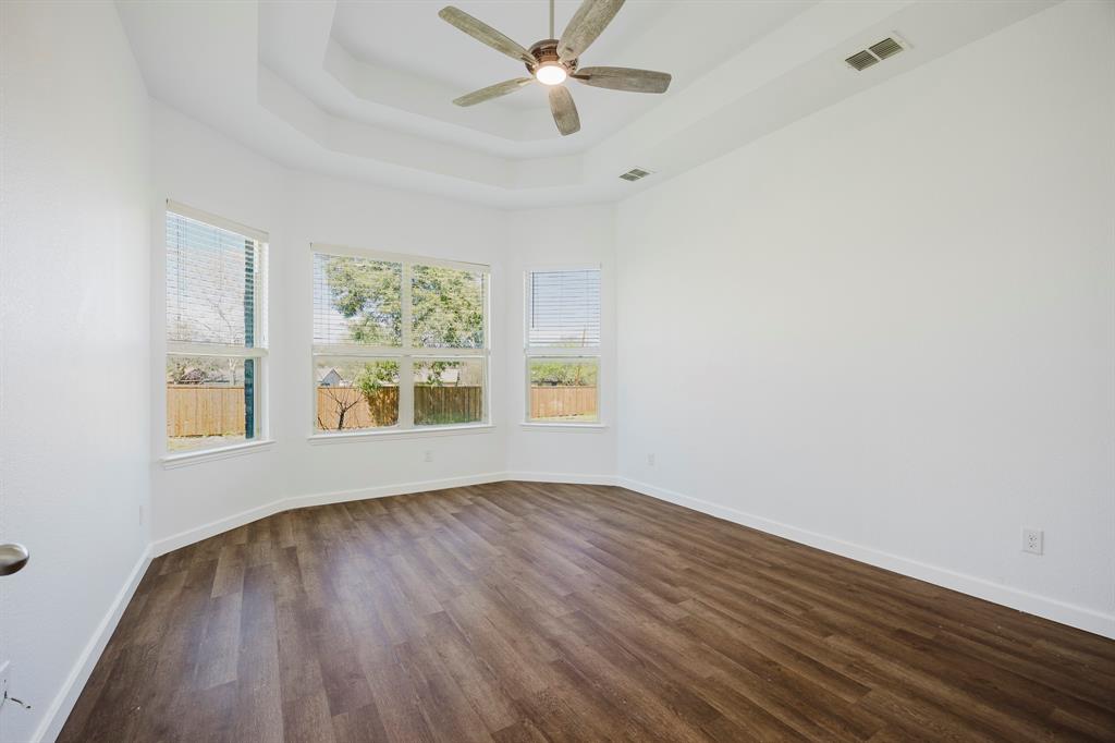 This beautifully updated home offers great curb appeal and an inviting open floor plan and a brand new roof. The spacious living room, centered around a cozy fireplace, seamlessly flows into the kitchen and dining area. The kitchen boasts ample counter space, a large island, and stainless steel appliances. The bright breakfast room overlooks the expansive, fenced backyard. The dining room, located off the living room, offers flexibility as an office or additional living space. The primary suite features tray ceilings, a generous walk-in closet, and an en-suite bath with dual sinks, a soaking tub, and a separate shower. Three additional bedrooms each have excellent closet space. The hall bathroom is accented with marble countertops. Recent upgrades include fresh neutral paint and stylish flooring throughout. Enjoy outdoor entertaining on the covered patio in the large backyard. The fence is two years old with an RV gate.