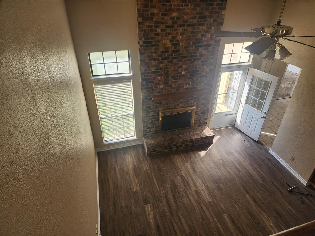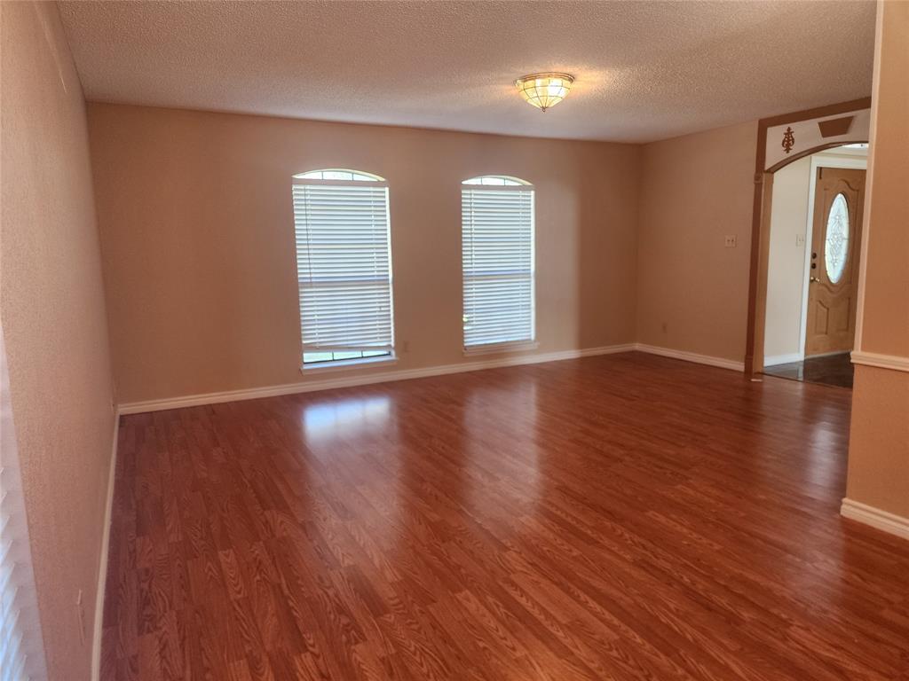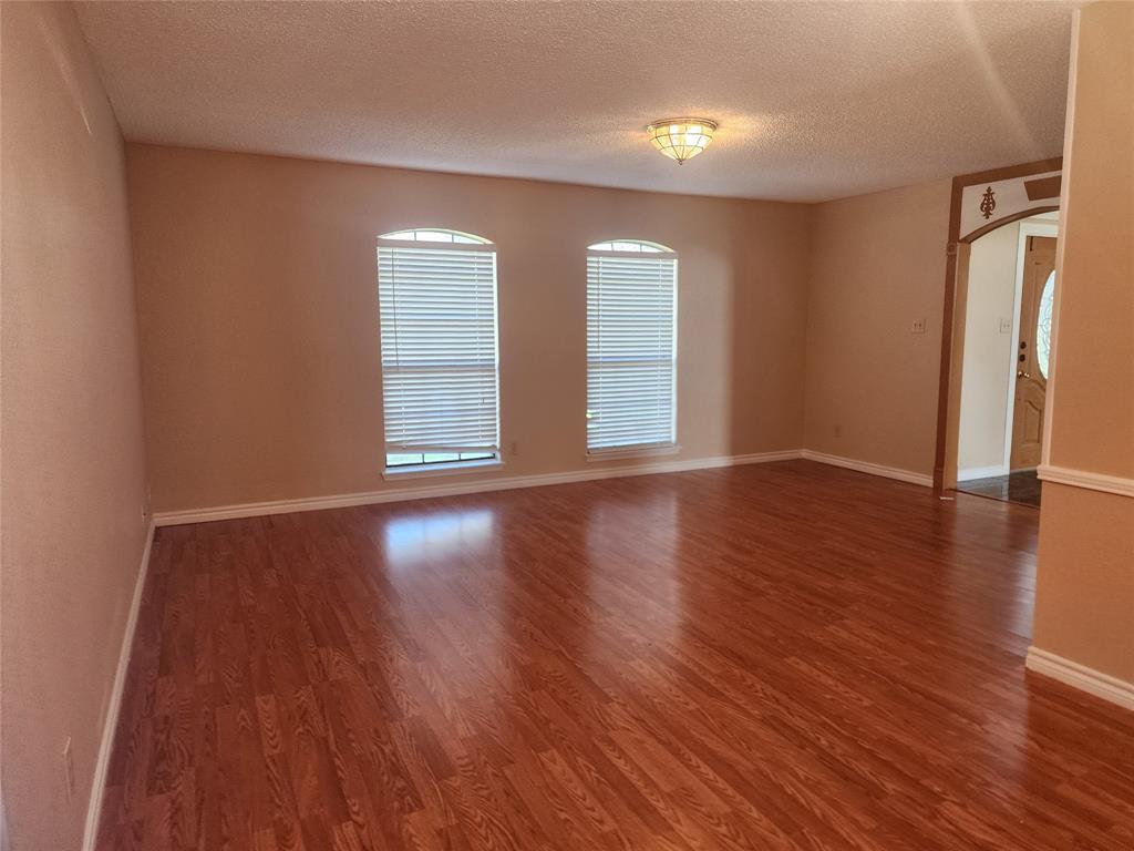 Imagine a spacious two-story home that combines both privacy and open living spaces. As you walk in through the front door, you're greeted by a wide foyer that leads into a large living room. The living room is bright and airy with large windows that let in plenty of natural light. It has a cozy yet luxurious feel, enhanced by a stylish wet bar tucked into one corner—perfect for entertaining guests or enjoying a quiet drink at the end of the day.