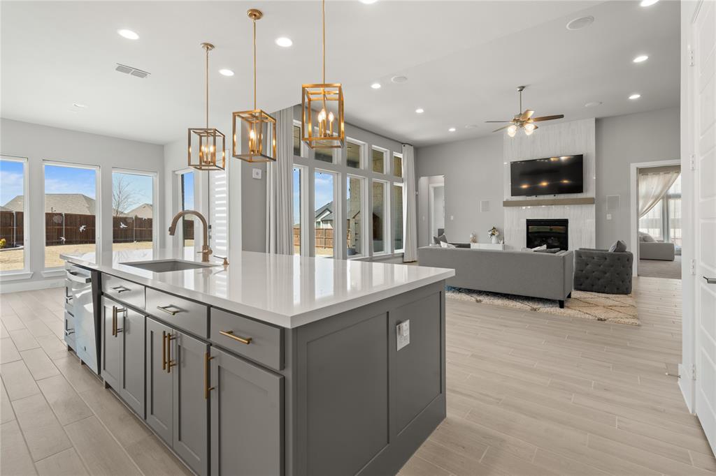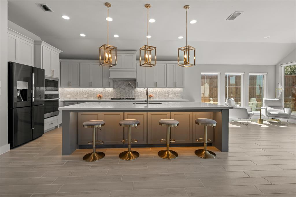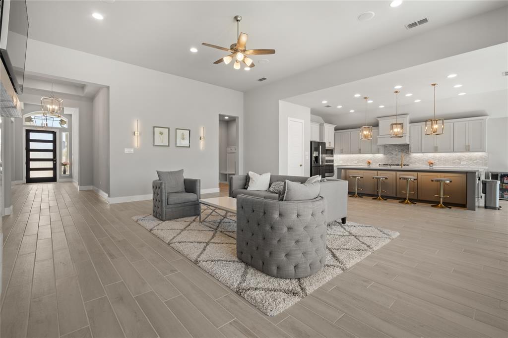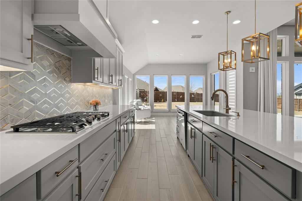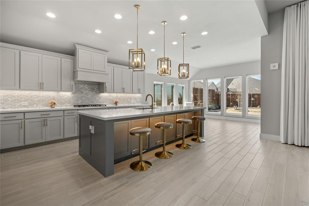 Built in 2022, this stunning 4-bedroom, 3.5-bathroom single-story home is tucked away in the Watercress community on a quiet cul-de-sac with only four homes on the street. The lot was handpicked by the current owners for its privacy—no front neighbors and a large backyard with no direct view into the family room. The open-concept layout features an upgraded, oversized kitchen island and a spacious family room with a 7.2 surround sound system and ceiling wall speakers. An extra-large game media room includes a dedicated electrical circuit, offering the perfect space for entertainment or a home theater setup. Enjoy outdoor living with a covered patio and extended slab, professional exterior uplights, and soffit outlets ready for holiday lighting. The home is also wired for security cameras and internet throughout, with additional lighting installed in nearly every room. Other highlights includ a walk-in pantry, mud room & utility room, wired internet connections throughout, extra exterior outlets ground & soffits, and wired security system. Located in sought-after Northwest ISD and benefiting from Haslet’s low tax rate, this home blends thoughtful design with high-end functionality. Shows like a model—truly a must-see!