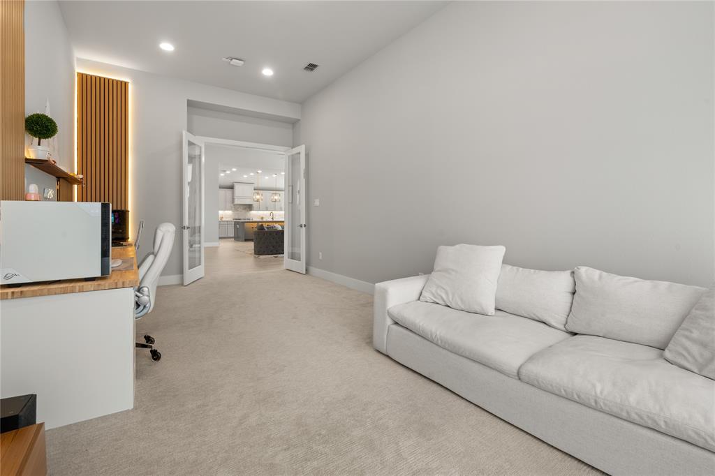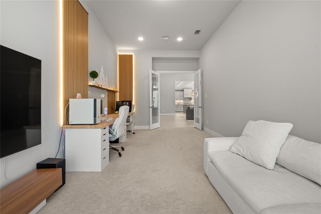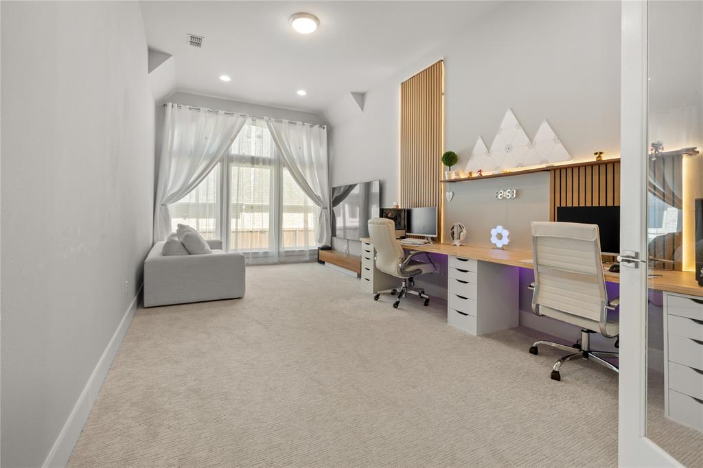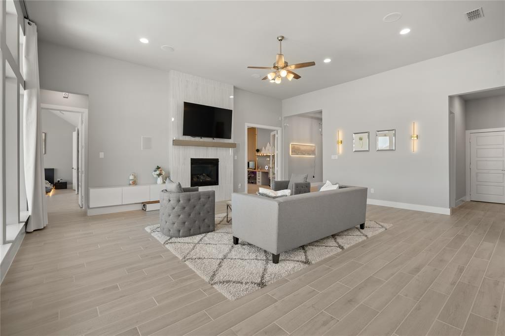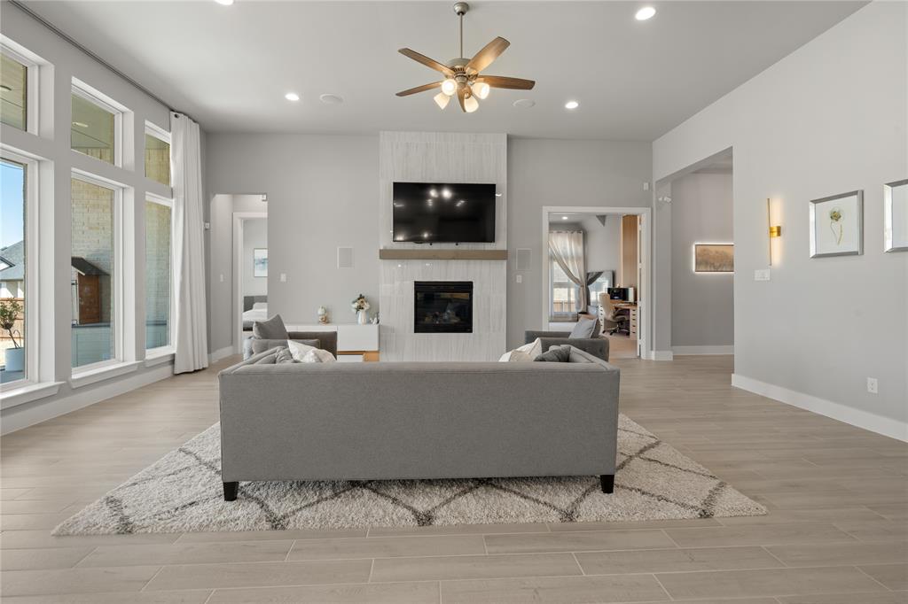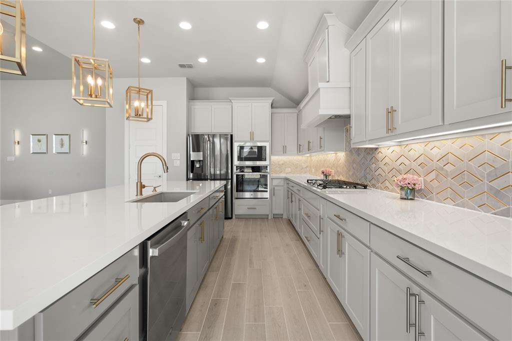 Built in 2022, this stunning 4-bedroom, 3.5-bathroom single-story home is tucked away in the Watercress community on a quiet cul-de-sac with only four homes on the street. The lot was handpicked by the current owners for its privacy—no front neighbors and a large backyard with no direct view into the family room. The open-concept layout features an upgraded, oversized kitchen island and a spacious family room with a 7.2 surround sound system and ceiling wall speakers. An extra-large game media room includes a dedicated electrical circuit, offering the perfect space for entertainment or a home theater setup. Enjoy outdoor living with a covered patio and extended slab, professional exterior uplights, and soffit outlets ready for holiday lighting. The home is also wired for security cameras and internet throughout, with additional lighting installed in nearly every room. Other highlights includ a walk-in pantry, mud room & utility room, wired internet connections throughout, extra exterior outlets ground & soffits, and wired security system. Located in sought-after Northwest ISD and benefiting from Haslet’s low tax rate, this home blends thoughtful design with high-end functionality. Shows like a model—truly a must-see!