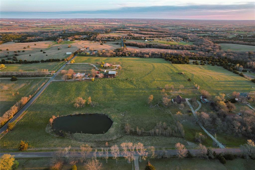 The terrain features rolling hills with open views across the surrounding landscape. A half-acre pond is located on the property, providing both a water source and an additional land feature for use. The combination of open areas and gentle slopes creates flexibility for a range of layouts, whether for subdividing, home sites, or agricultural improvements.