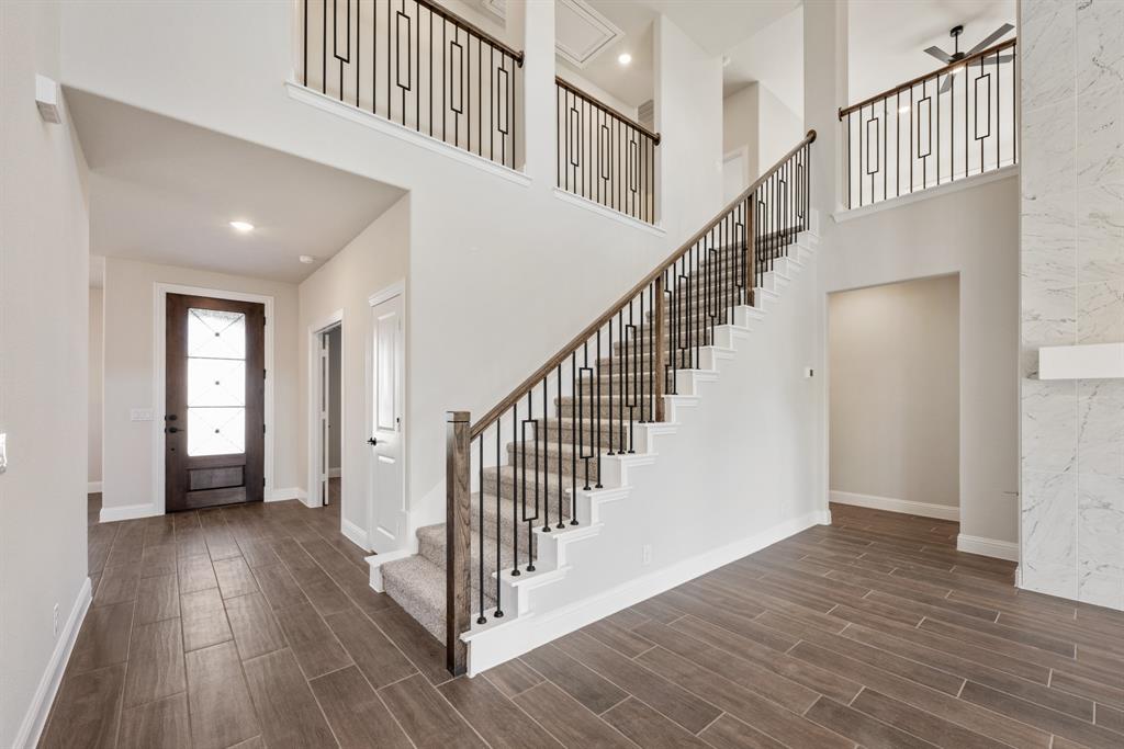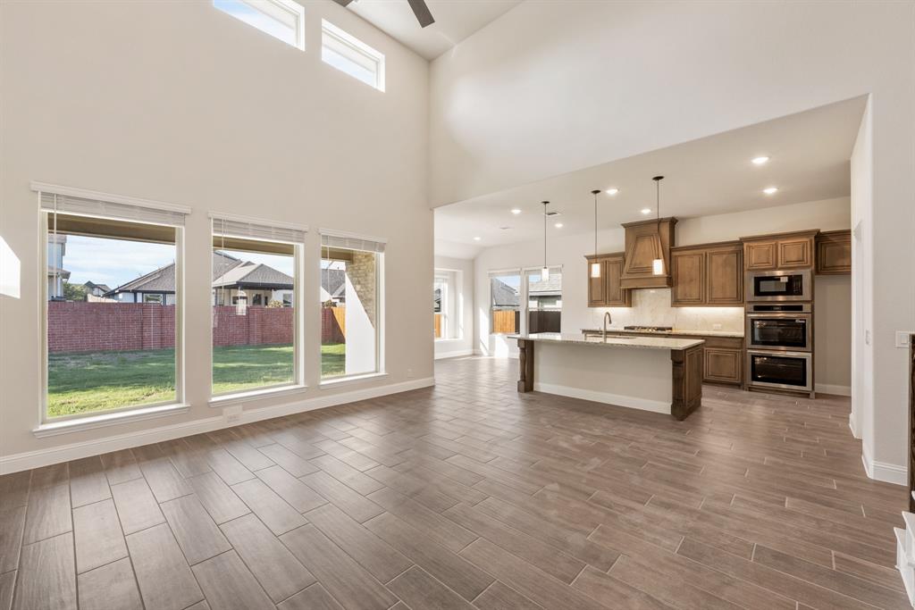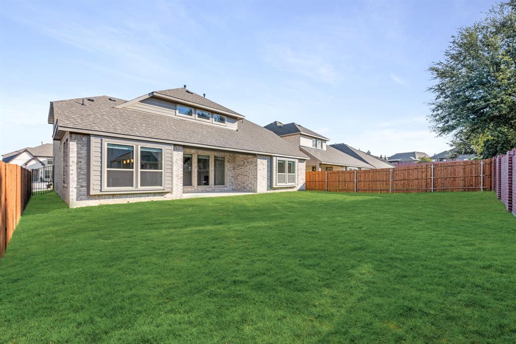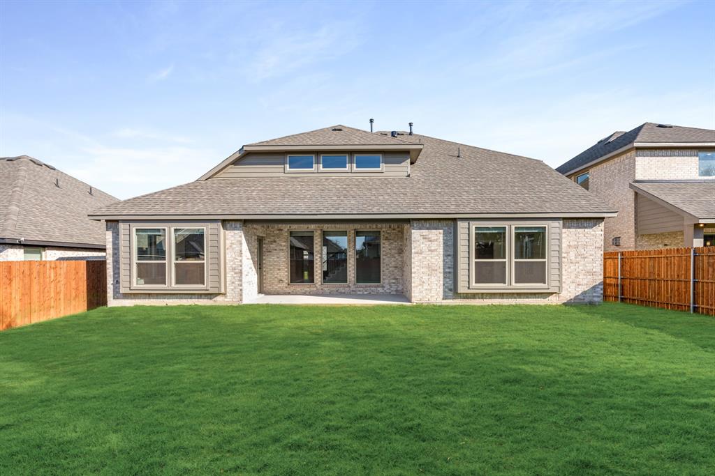 NEW! NEVER LIVED IN. READY September 2025. Situated on an interior lot, this stunning two-story home offers an exceptional blend of style and functionality. Step inside to discover wood-look tile flooring that flows through the main living areas, enhancing the open layout. The main level features a private Study with elegant dual doors, a Formal Dining room with a convenient Butler’s Pantry, and a Signature Series kitchen boasting upgraded appliances, quartz countertops, custom champagne cabinets, an expansive island, and a gas cooktop with pot and pan drawers beneath a wood vent hood. The spacious Family Room impresses with vaulted ceilings and a striking Stone-to-Ceiling Fireplace, while 2-inch faux wood blinds and window treatments add a touch of warmth and privacy throughout. Upstairs, a versatile Game Room joins the Media Room for endless entertainment possibilities. The luxurious primary suite offers a serene retreat with a relaxing garden tub, a glass-enclosed shower, an L-shaped dual vanity, and a spacious walk-in closet. Additional highlights include a mud room for added convenience and an inviting 8-foot front door that enhances the home's brick and stone exterior. Located in The Parks of Aledo, residents can enjoy fantastic amenities such as a fitness center, trails, playground, and more—an exceptional lifestyle awaits!
