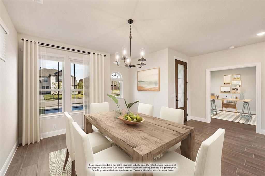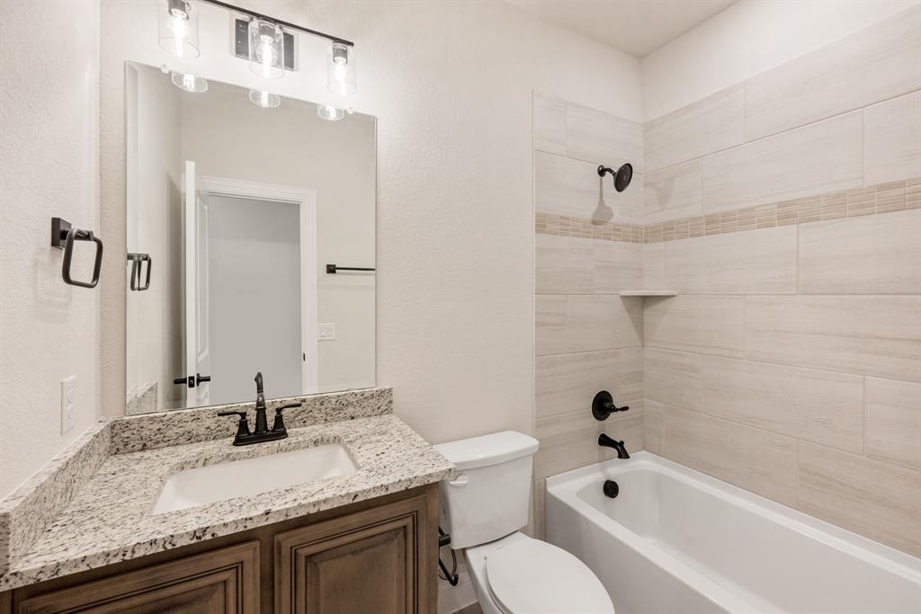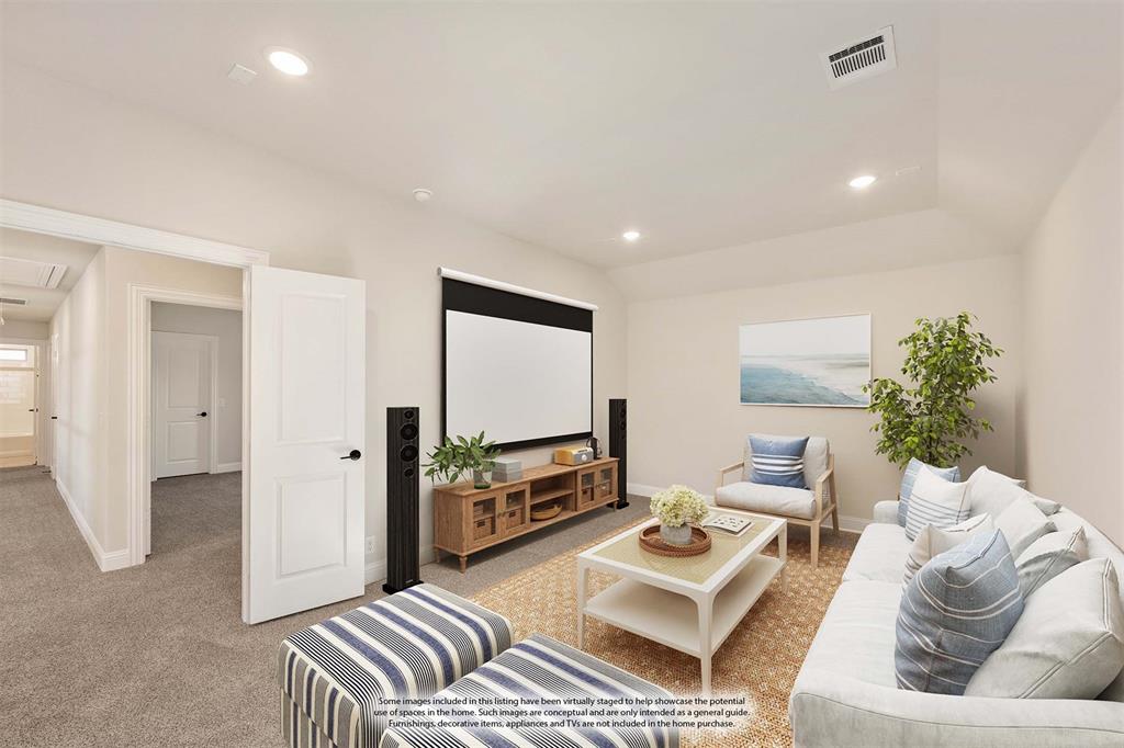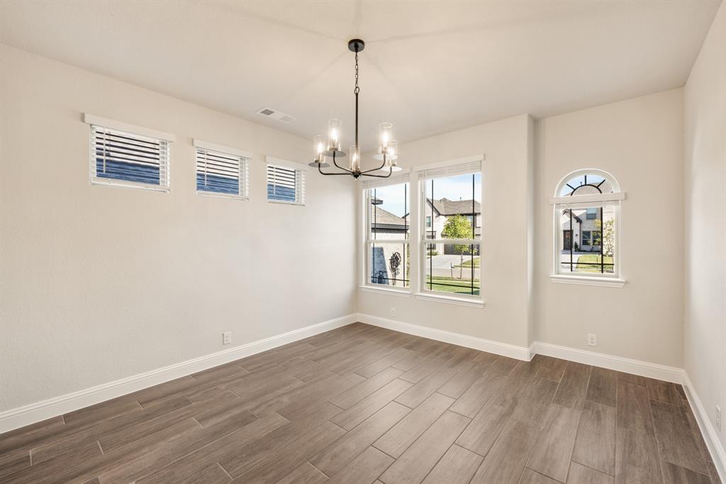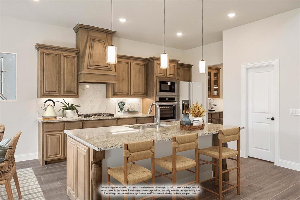 NEW! NEVER LIVED IN. READY September 2025. Situated on an interior lot, this stunning two-story home offers an exceptional blend of style and functionality. Step inside to discover wood-look tile flooring that flows through the main living areas, enhancing the open layout. The main level features a private Study with elegant dual doors, a Formal Dining room with a convenient Butler’s Pantry, and a Signature Series kitchen boasting upgraded appliances, quartz countertops, custom champagne cabinets, an expansive island, and a gas cooktop with pot and pan drawers beneath a wood vent hood. The spacious Family Room impresses with vaulted ceilings and a striking Stone-to-Ceiling Fireplace, while 2-inch faux wood blinds and window treatments add a touch of warmth and privacy throughout. Upstairs, a versatile Game Room joins the Media Room for endless entertainment possibilities. The luxurious primary suite offers a serene retreat with a relaxing garden tub, a glass-enclosed shower, an L-shaped dual vanity, and a spacious walk-in closet. Additional highlights include a mud room for added convenience and an inviting 8-foot front door that enhances the home's brick and stone exterior. Located in The Parks of Aledo, residents can enjoy fantastic amenities such as a fitness center, trails, playground, and more—an exceptional lifestyle awaits!