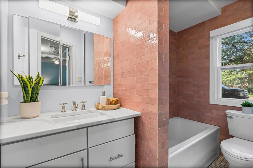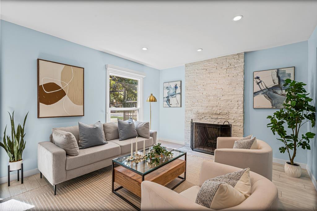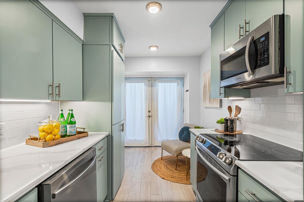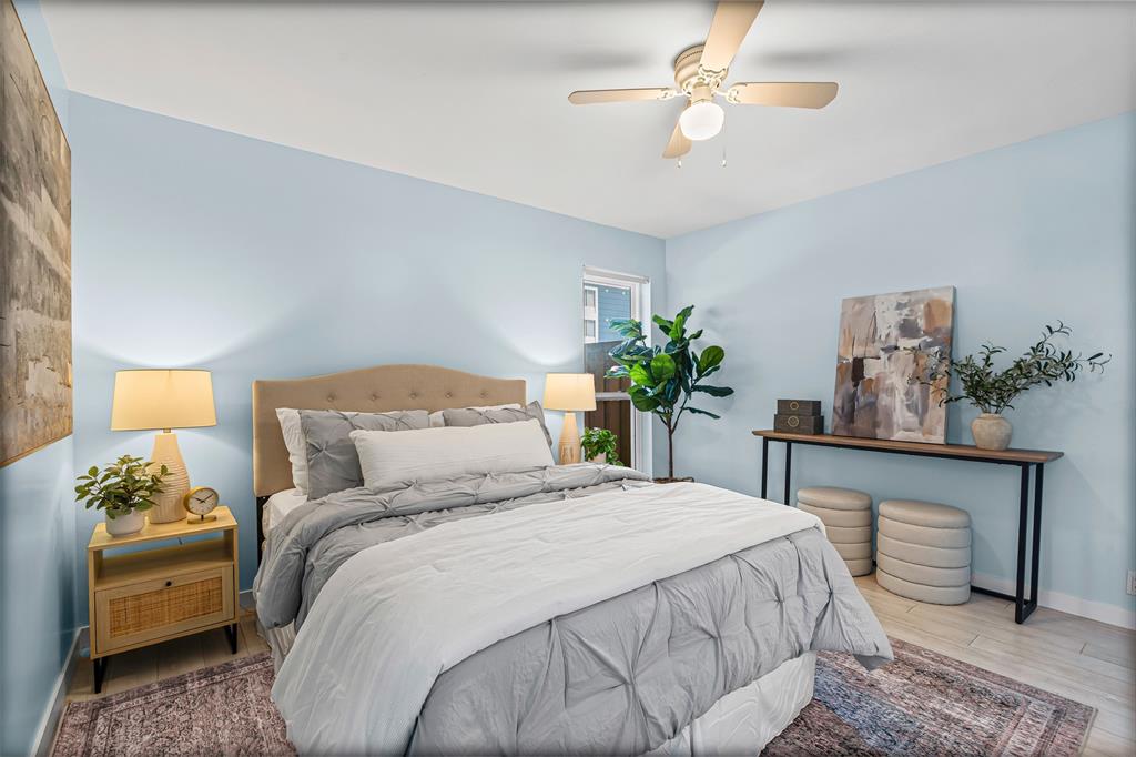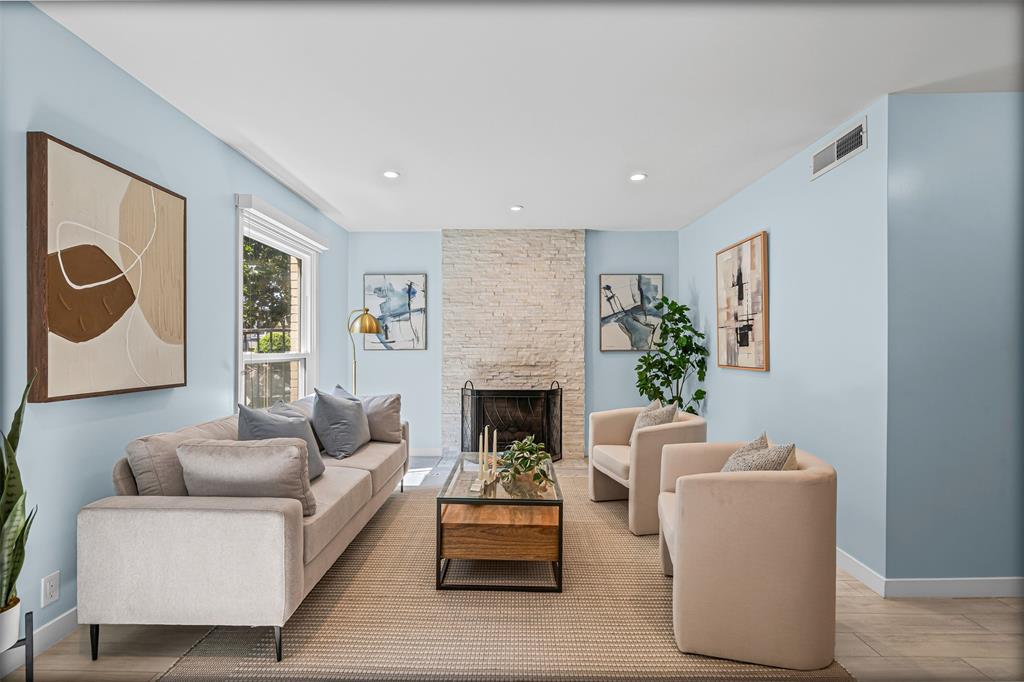The redesigned fireplace with stacked stone sets the tone for the high-end finishes throughout. You’ll love the custom kitchen with Silestone quartz countertops, stainless steel Samsung appliances, custom cabinetry, pull-out pantry shelves, and a built-in trash drawer. Closets by Design maximize storage in every space.