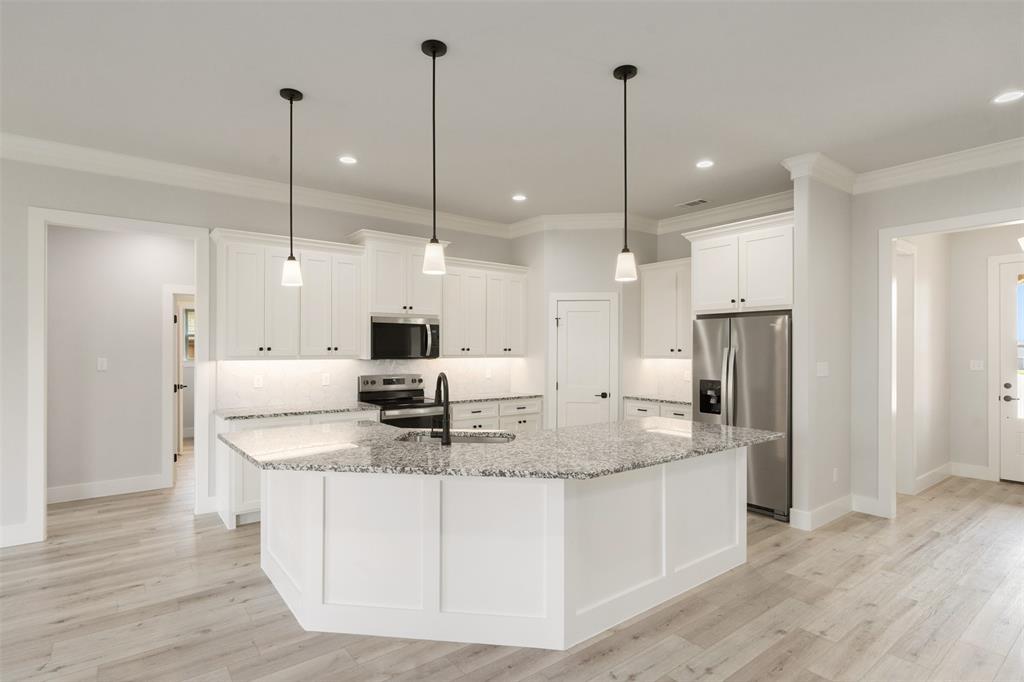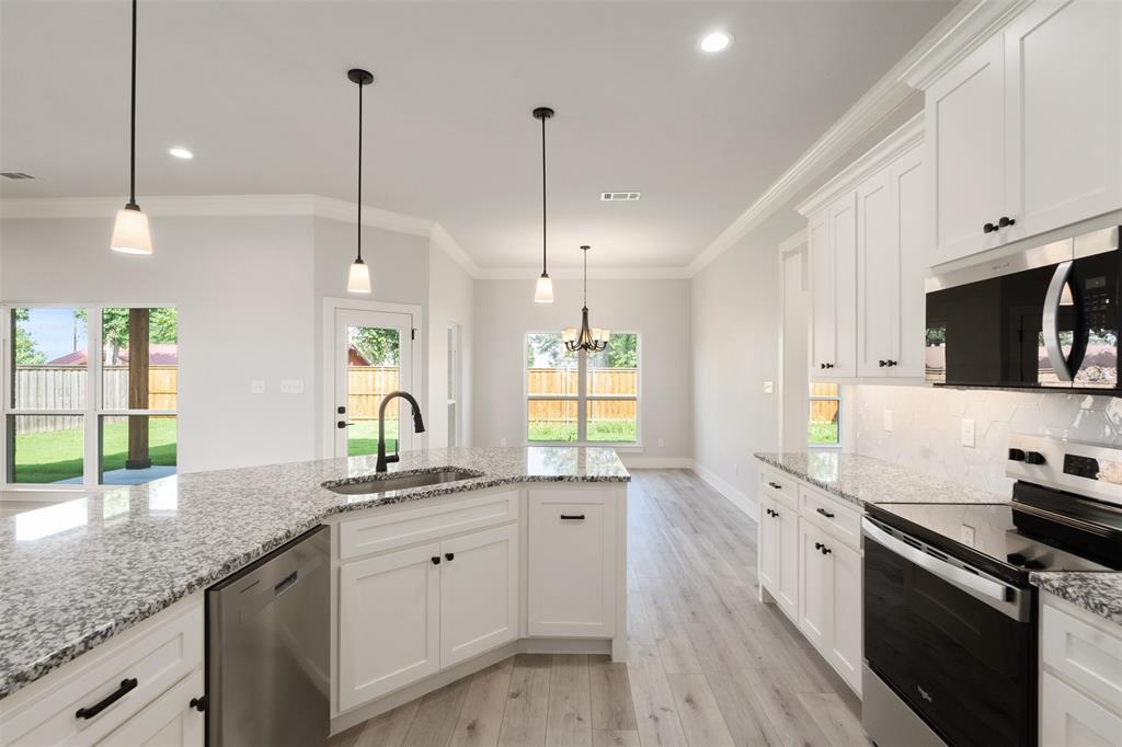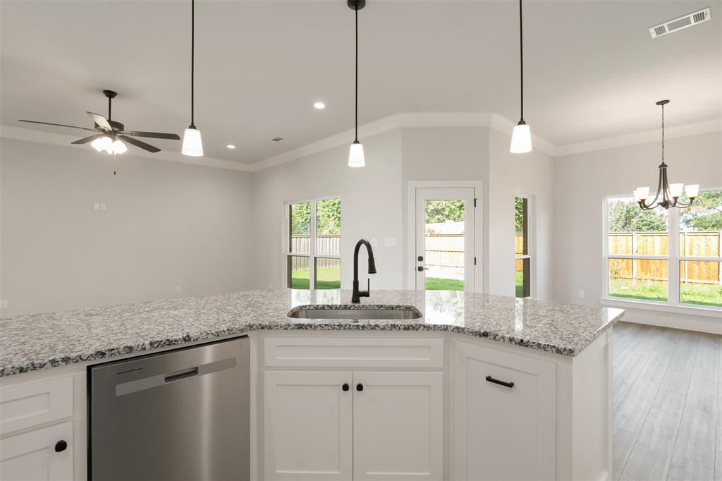 Quality Construction From Start To Finish! Gorgeous new construction home in the heart of Mabank! This 4-2-2 provides a very spacious & versatile floor plan with a flex room that could serve as an office or fourth bedroom. Very open concept in living, kitchen, & dining areas. Beautiful finish outs featuring tray ceilings, recessed lighting, crown molding, rounded corners, granite countertops, tile back splash, & laminate wood floors. Great split bedroom arrangement with nice master suite that offers counter height vanity with dual sinks, lighted makeup vanity, large fully tiled shower, separate tub, & generous walk-in closet. Wonderful storage space through out the home. Great covered patio with ceiling fan. Exterior features include fully sprinkled & sodded yard, flood lights, gutters, & wood privacy fenced backyard. Stone Meadow subdivision is a prime location with close proximity to schools, shopping, dining, Cedar Creek Lake, & Hwy 175 for easy commute to DFW & Tyler!