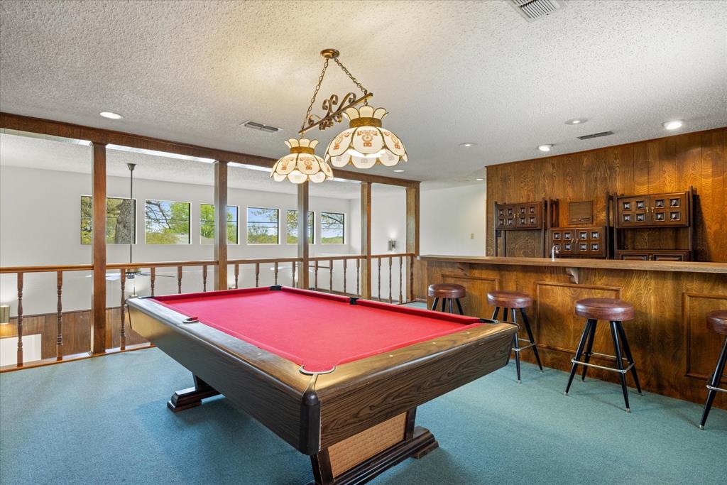 Nestled under the shade of large oak trees, this home offers comfort, space, and charm in the highly sought-after DeCordova Bend Estates. The spacious family room features built-in shelves, a wood-burning fireplace with a blower, abundant natural light, and a wet bar, perfect for entertaining. With four full bathrooms and four bedrooms, one of which can serve as an office, this home provides flexibility for any lifestyle. The game room includes a wet bar and a lovely upstairs balcony overlooking the mature oak trees, creating a peaceful retreat. The kitchen is well-equipped, featuring a brand-new oven, microwave, and dishwasher installed in 2020. Dual HVAC systems ensure year-round comfort, and a central vacuum system adds convenience. A Living Air- air filters for life long filters and quality air flow. Storage is plentiful throughout the house. The oversized three-car garage includes a workbench and ample shelving for organization. Located in a premier gated community, this home offers access to fantastic amenities, including golf, lake activities, a community pool, and more. All appliances convey.