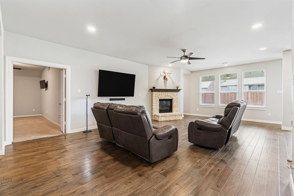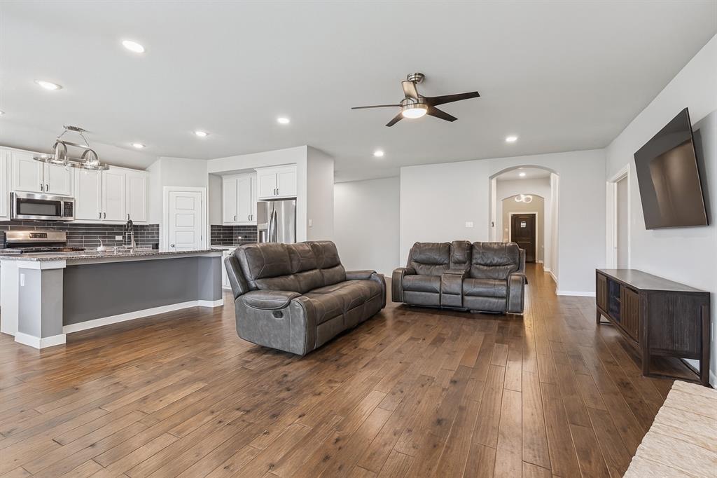 Largest ONE-STORY Highland built home in ArrowBrooke! This home effortlessly combines spacious design, modern finishes, everyday functionality and multi-generational living in mind! Step inside to find a dedicated home office with gorgeous new LVP flooring—perfect for working remotely in style. The open-concept layout seamlessly connects the living, dining, and kitchen areas, making it a dream for entertaining. The kitchen boasts stainless steel appliances, a gas range, granite countertops, subway tile backsplash, and abundant cabinetry. Gather around the stone fireplace, easily activated with the flip of a switch, for cozy nights in. The secluded primary suite offers a relaxing retreat with dual sinks, a garden tub, separate shower, and an oversized walk-in closet. Three generously sized secondary bedrooms all include ceiling fans—one with a private en-suite bath, ideal for guests or multi-gen living! Step outside to enjoy the covered patio and expansive backyard, offering plenty of space for outdoor fun, relaxation, or future upgrades like a pool or playset. The oversized two-car garage boasts high ceilings, making it easy to park a large vehicle or add overhead storage. Live the lifestyle you deserve in ArrowBrooke—a vibrant community featuring two pools, fishing ponds, scenic trails, and a new pickleball court coming soon! Why settle for less when you can have it all in one luxurious story. This one checks all the boxes—don’t let it slip away!