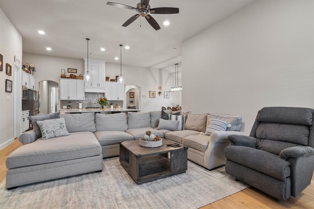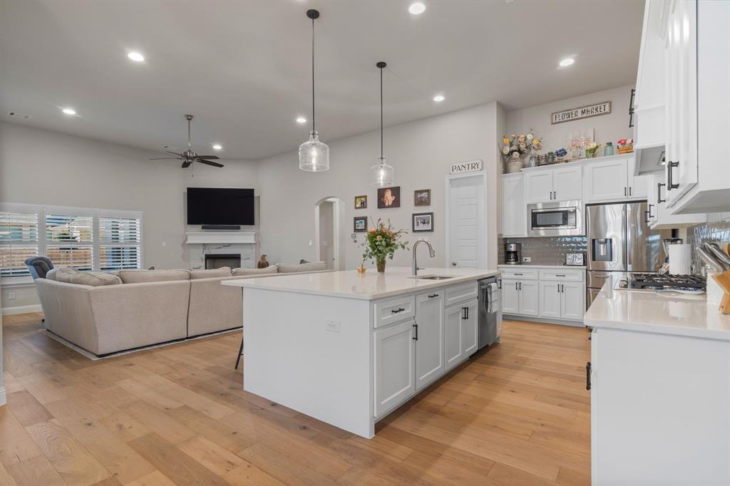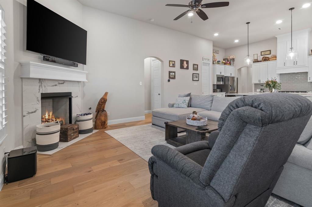 Amazing one story home, four bedroom home in the beautiful Reserves at Trinity. Aledo ISD, Willow Park shops and restaurants within walking distance. Beautiful open floorplan, huge kitchen with large island and stainless steel appliances that opens to family room; 13 ft tall ceilings in open space; office, separate flex room for dining or library. Master suite has sitting area and is separate from three other bedrooms and two full baths on same level. Dedicated office for at-home work or schooling with storage. Gas cooking, solid quartz surface countertops and custom cabinetry make the kitchen a gourmet's dream. Separate utility room and drop station that is plumbed for future sink. This home also features plantation shutters, refrigerator, clothes washer and dryer stay with the home and builders foundation warranty still applies. Luxurious finishes, Delta faucets, tons of natural light, spacious yard make this a must see!