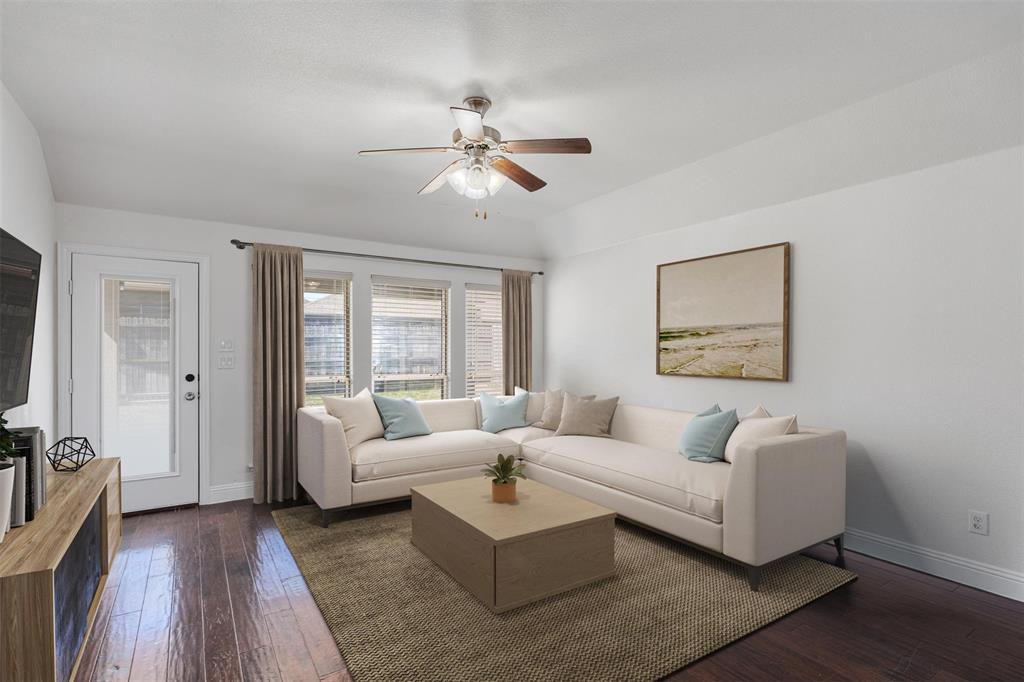Welcome to this beautiful single-story home boasting four bedrooms plus a dedicated office or flex room. If you love privacy, then this home is for you! Enjoy a split floor plan that separates the primary from the other rooms. You’ll love the highly durable wood floors and open living space that connects the kitchen and living room. Calling all chefs and entertainers–The gourmet kitchen is located in the heart of the home and features granite countertops, a 5-burner gas cooktop, an island, plus cabinets galore. This home is move-in ready with a NEW roof, NEW gutters, NEW carpet, fresh paint, plus so much more to discover! When you’re ready to relax, retire to the primary suite with dual sinks, a separate shower, and garden tub. Outside, you’ll find a charming covered patio and a fully fenced yard. Located in the sought-after, master-planned Paloma Creek community, offering 4 pools with clubhouses, 2 fitness centers, hiking and bike trails, plus ball fields, all within a short walk to the park and playground. Also enjoy Easy access to top-rated schools, shopping centers, parks, and recreational facilities. Commuting is a breeze with nearby Highway 380.