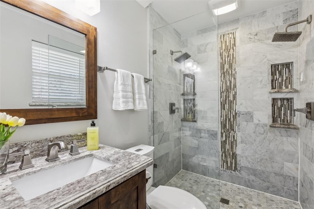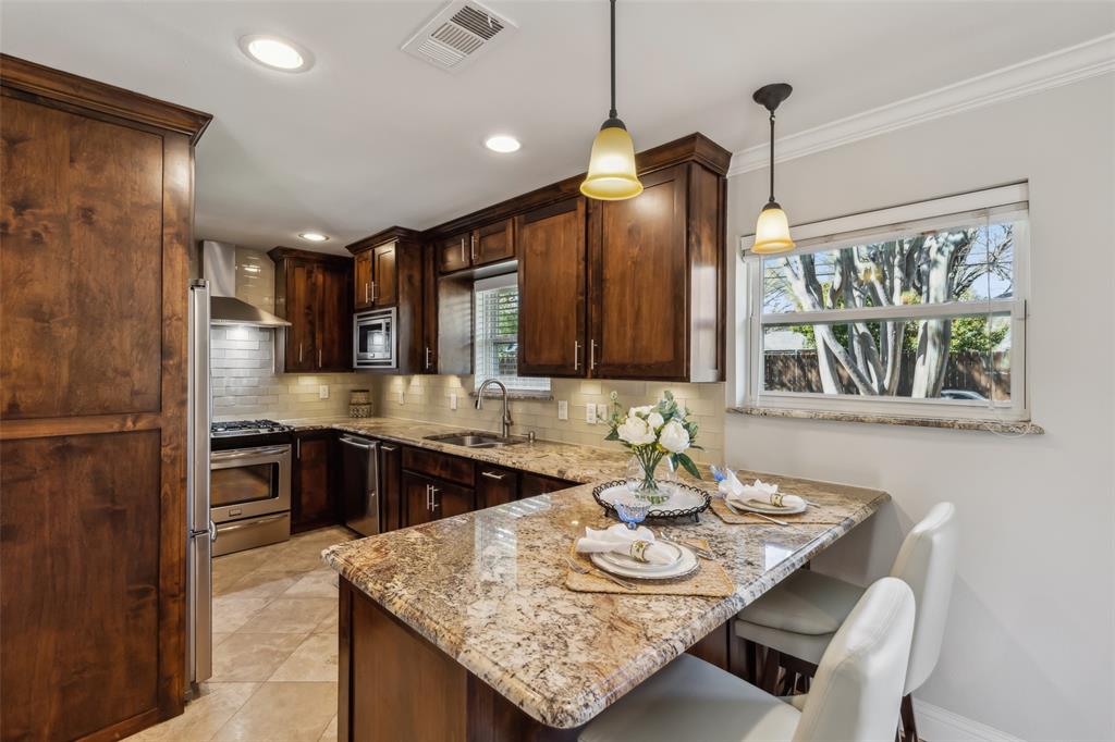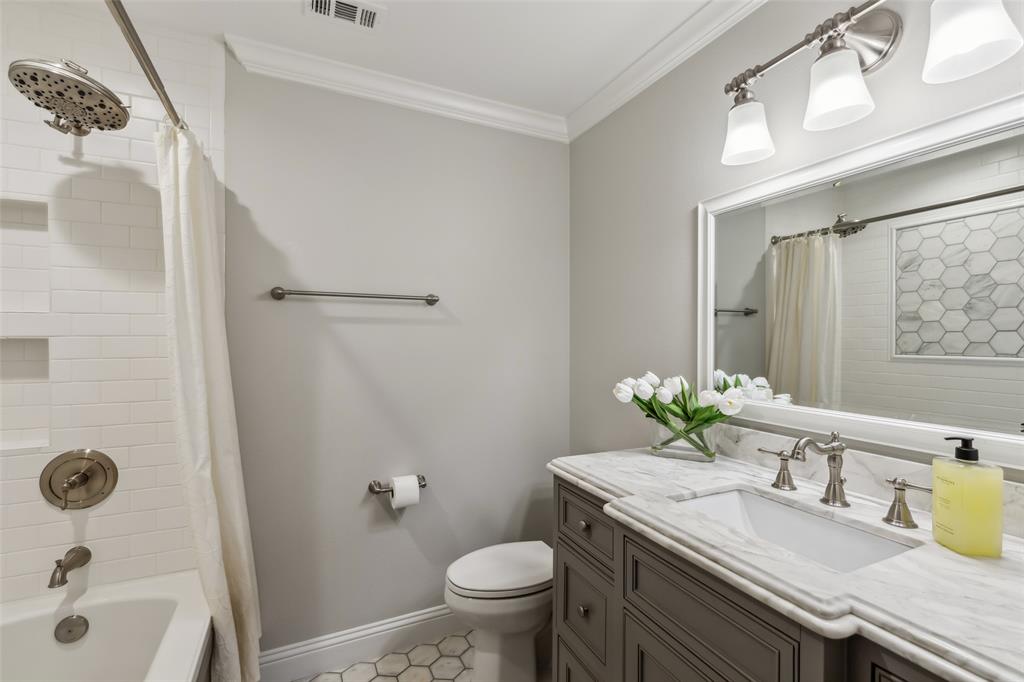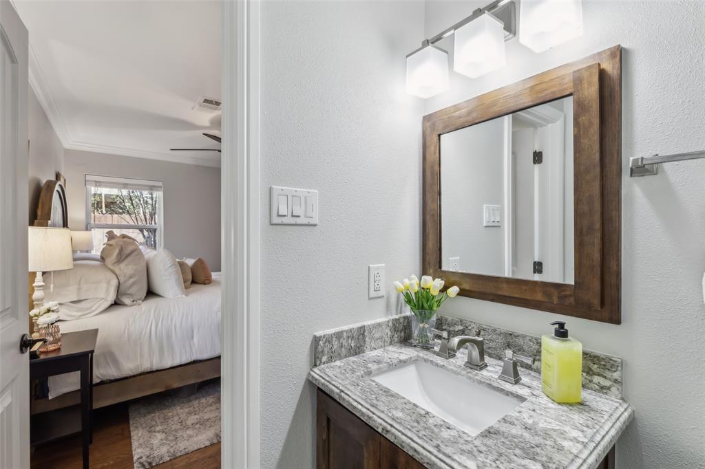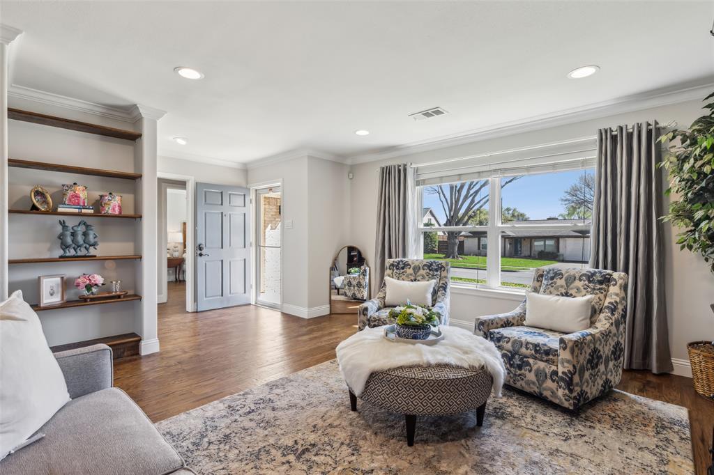 Located in the sought-after Farmington Park Estates community in Farmers Branch, this residence offers the perfect blend of suburban tranquility and urban convenience. This home offers an exceptional location, close to the serene Mallon Park which provides a peaceful backdrop for daily life while also conveniently situated just minutes from the bustling DFW Airport and the vibrant business hub of Las Colinas. The neighborhood is renowned for its family-friendly atmosphere and is a haven for those who value quality education with access to the top-rated Janie Stark Elementary as well as a selection of esteemed private schools in the vicinity. This stunning home boasts a range of high-end updates, including hand-scraped wood flooring, granite countertops, and custom tile throughout. The heart of the home, the kitchen, has been completely transformed with new cabinets, top-of-the-line stainless steel appliances, and gleaming granite counters that include a convenient breakfast bar for casual dining. The master suite provides a serene and private retreat, complete with a spacious sitting area perfect for relaxation and unwinding. The thoughtfully designed custom walk-in closet offers ample storage and organization, ensuring a clutter-free and luxurious experience. The master bathroom features a spacious frameless glass walk-in shower that exudes modern elegance. The other two bathrooms have also been tastefully updated with granite countertops and beautiful tile work ensuring a cohesive and luxurious feel throughout the home. Ascending to the second story, you'll discover two generously sized bedrooms, each offering ample closet space and natural light. Additionally, a versatile flex space awaits your personal touch, envision a tranquil home office, a vibrant playroom, or a cozy reading nook. The possibilities are endless. Attends Stark Elementary, which is highly regarding for its Gifted & Talented and Dual Language programs.