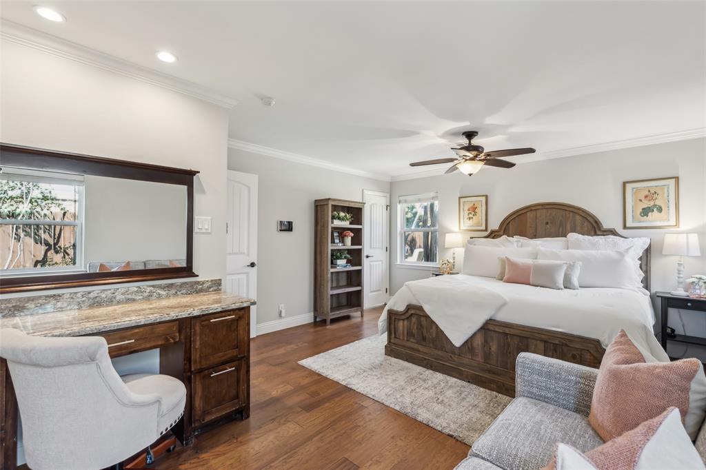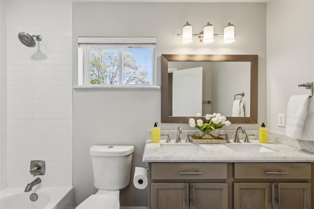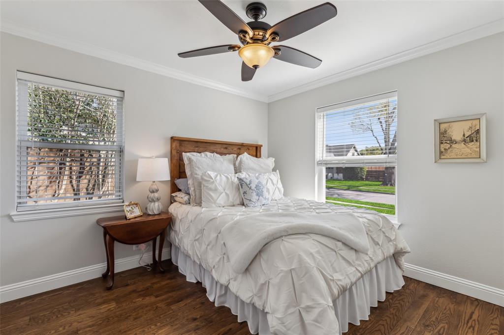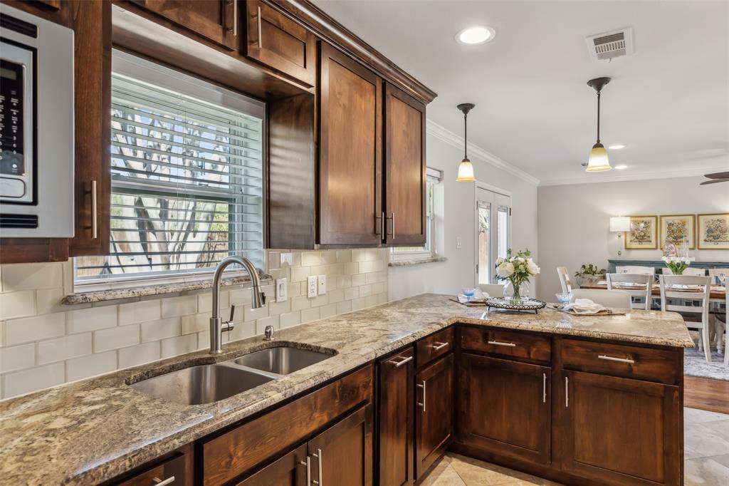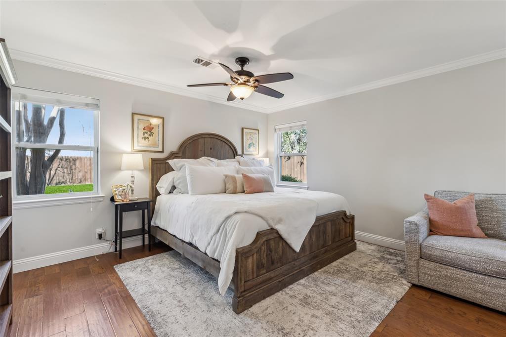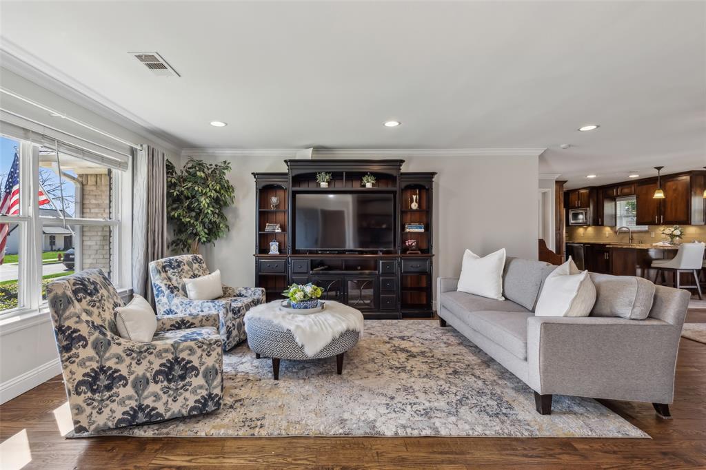 Located in the sought-after Farmington Park Estates community in Farmers Branch, this residence offers the perfect blend of suburban tranquility and urban convenience. This home offers an exceptional location, close to the serene Mallon Park which provides a peaceful backdrop for daily life while also conveniently situated just minutes from the bustling DFW Airport and the vibrant business hub of Las Colinas. The neighborhood is renowned for its family-friendly atmosphere and is a haven for those who value quality education with access to the top-rated Janie Stark Elementary as well as a selection of esteemed private schools in the vicinity. This stunning home boasts a range of high-end updates, including hand-scraped wood flooring, granite countertops, and custom tile throughout. The heart of the home, the kitchen, has been completely transformed with new cabinets, top-of-the-line stainless steel appliances, and gleaming granite counters that include a convenient breakfast bar for casual dining. The master suite provides a serene and private retreat, complete with a spacious sitting area perfect for relaxation and unwinding. The thoughtfully designed custom walk-in closet offers ample storage and organization, ensuring a clutter-free and luxurious experience. The master bathroom features a spacious frameless glass walk-in shower that exudes modern elegance. The other two bathrooms have also been tastefully updated with granite countertops and beautiful tile work ensuring a cohesive and luxurious feel throughout the home. Ascending to the second story, you'll discover two generously sized bedrooms, each offering ample closet space and natural light. Additionally, a versatile flex space awaits your personal touch, envision a tranquil home office, a vibrant playroom, or a cozy reading nook. The possibilities are endless. Attends Stark Elementary, which is highly regarding for its Gifted & Talented and Dual Language programs.