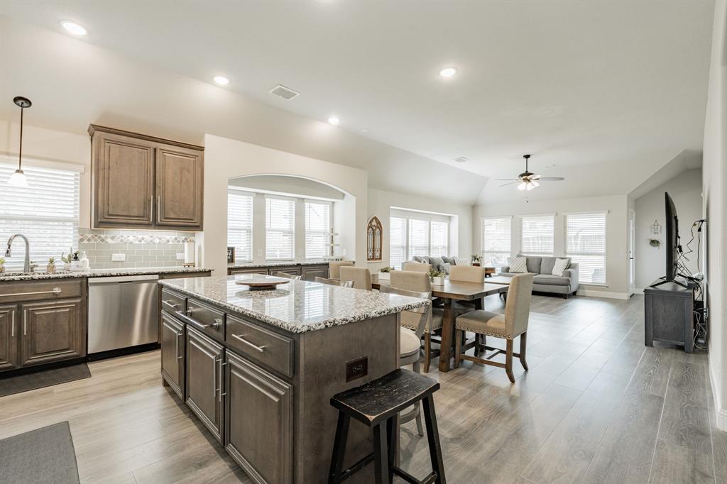 ONE OWNER HOME, SPACIOUS AND MOVE IN READY FOR UNDER $400,000! Royse City's premier Waterscape neighborhood welcomes you to 5058 Huffines Boulevard. Built in 2020, you'll find an expansive 2467 sqft housing 4 beds, 3 full baths & double living areas! Enter into a large front office space that could also be a formal dining. This leads into the open concept kitchen, breakfast & living areas. Notice granite counters, gas cooking, kitchen island seating & stainless steel appliances! More than enough counter & cabinet space with a walk-in pantry! Natural light beams through the living room with an abundance of windows overlooking the backyard. Downstairs primary suite tucked away with room for a seating area! Ensuite bath with double sinks, soaking tub & walk-in shower. Two additional beds also downstairs and share the full 2nd bath. Upstairs opens to a perfect game room space or second living! Fourth bed also up with a full bath. Enjoy the oversized backyard with covered & open patio spaces with upgraded stamped concrete! Flower beds or gardens already prepped also, with a walkway leading to the front gate. Front facing 2 car garage. Waterscape is filled with family friendly amenities such as walking paths, fishing ponds, a pool & playground and so much more! Come enjoy life just outside the city!