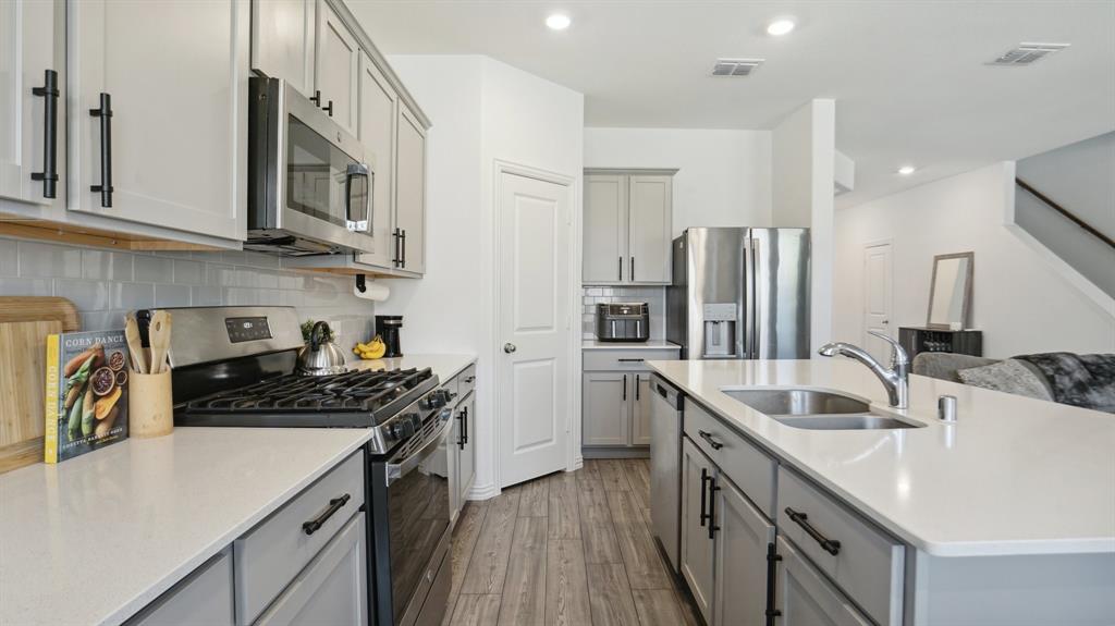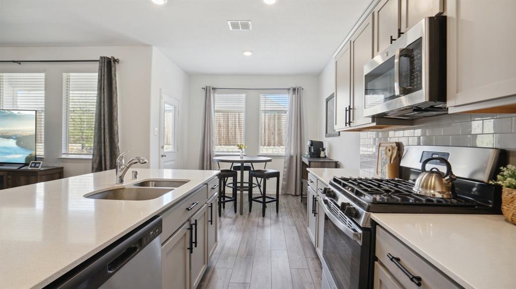 This stunning Lennar home offers the perfect blend of modern design, functionality, and an unbeatable location in a thriving community and just seconds from the elementary. The bright open layout is ideal for both everyday living and entertaining, with a spacious kitchen featuring sleek quartz countertops, a gas range, and ample cabinetry for storage.The split floor plan provides ultimate privacy, with a luxurious primary suite boasting a spa-like ensuite bathroom. Upstairs, a large media, game room, or flex space offers endless possibilities to suit any lifestyle. A three-car garage ensures plenty of room for vehicles and additional storage.Located in a vibrant and growing area, this home is just minutes from shopping, dining, and entertainment, with a new grocery store coming soon. Residents enjoy access to a community pool, scenic trails, and nearby parks. Schools are conveniently close by, and Downtown McKinney is just a short 15-minute drive. Fitness enthusiasts will appreciate the nearby Workout Anytime gym, and quick access to Highway 380 makes commuting a breeze.Don’t miss this incredible opportunity to own a beautifully designed home in an up-and-coming neighborhood. Schedule your private showing today!